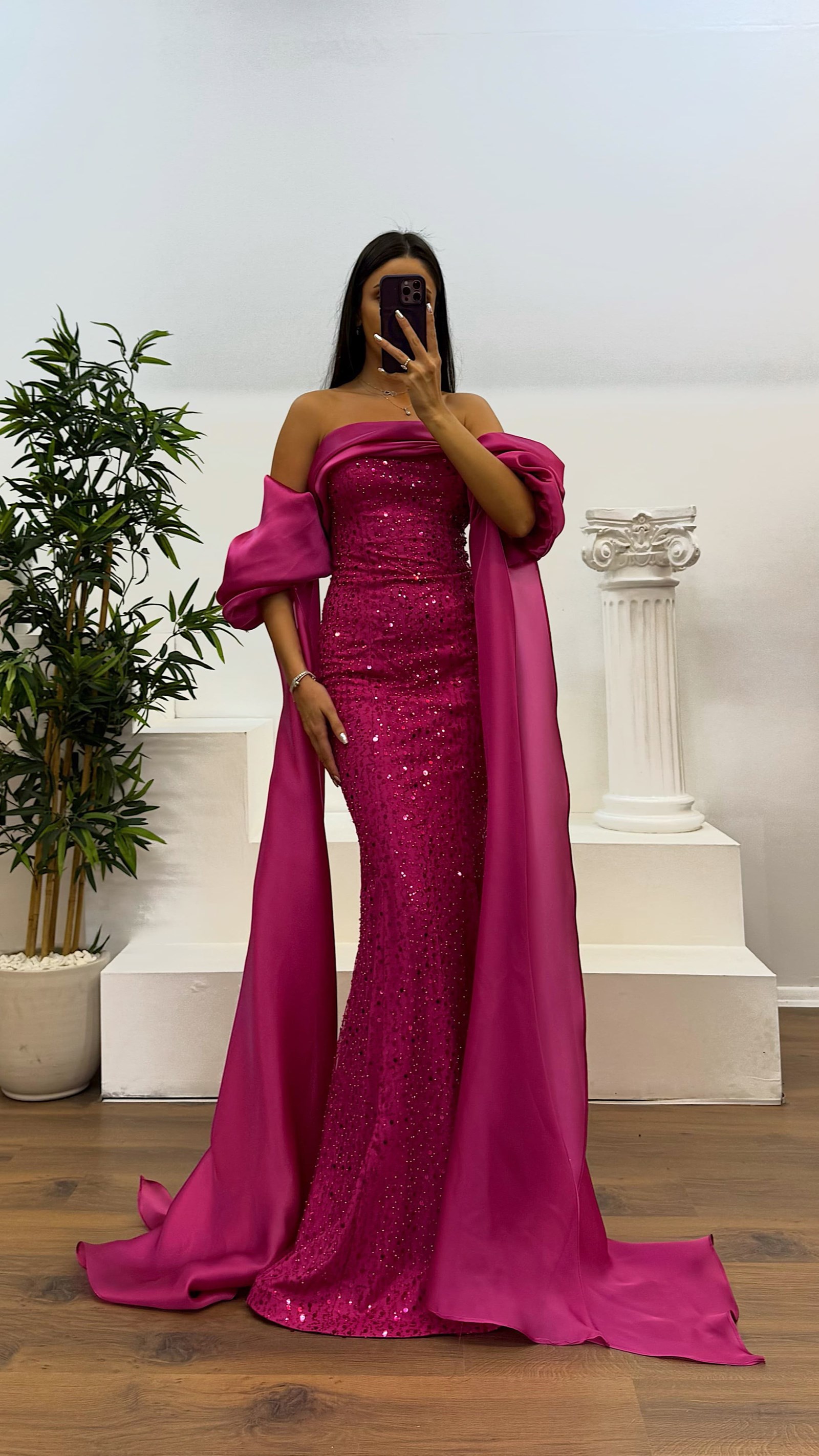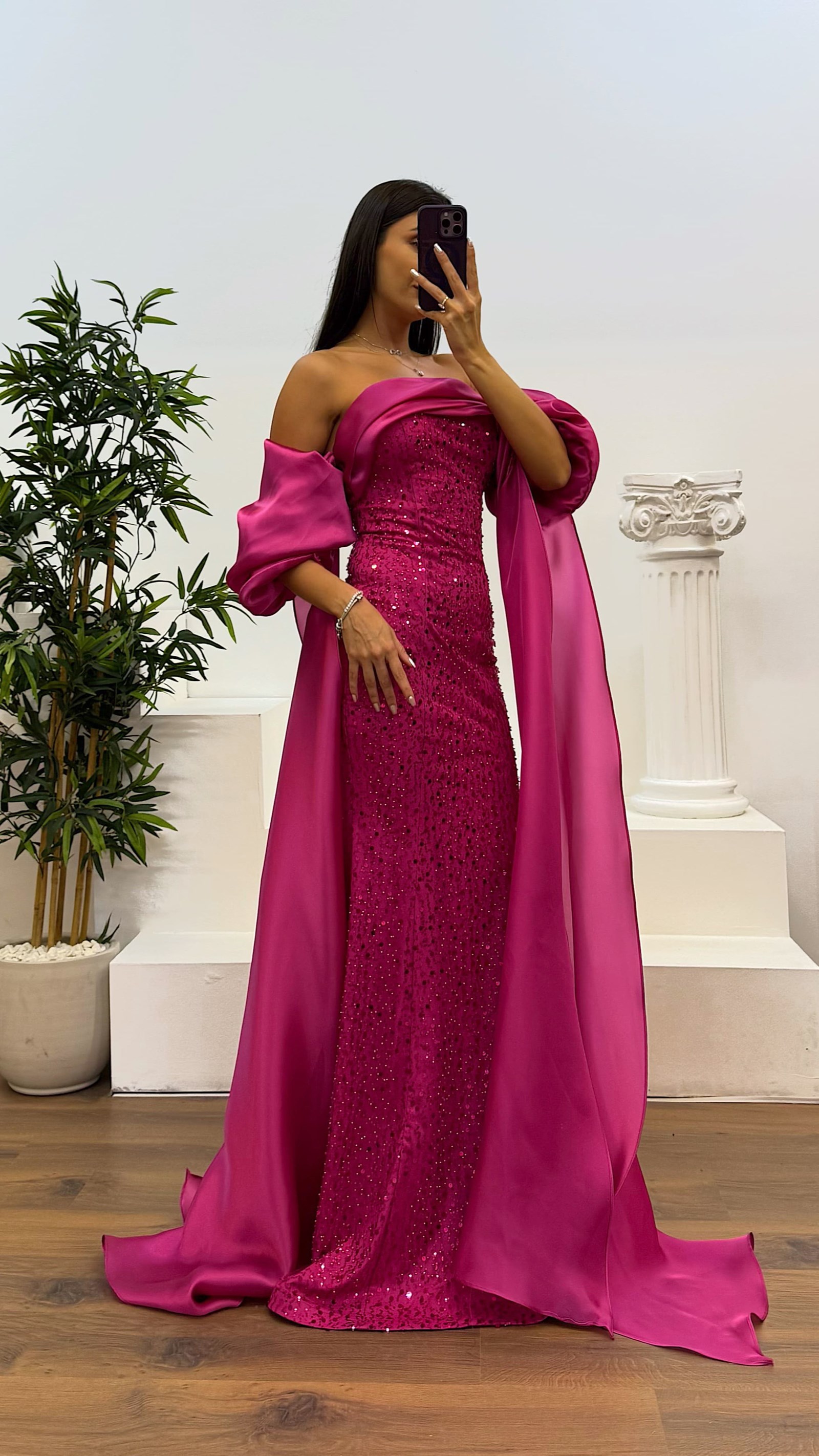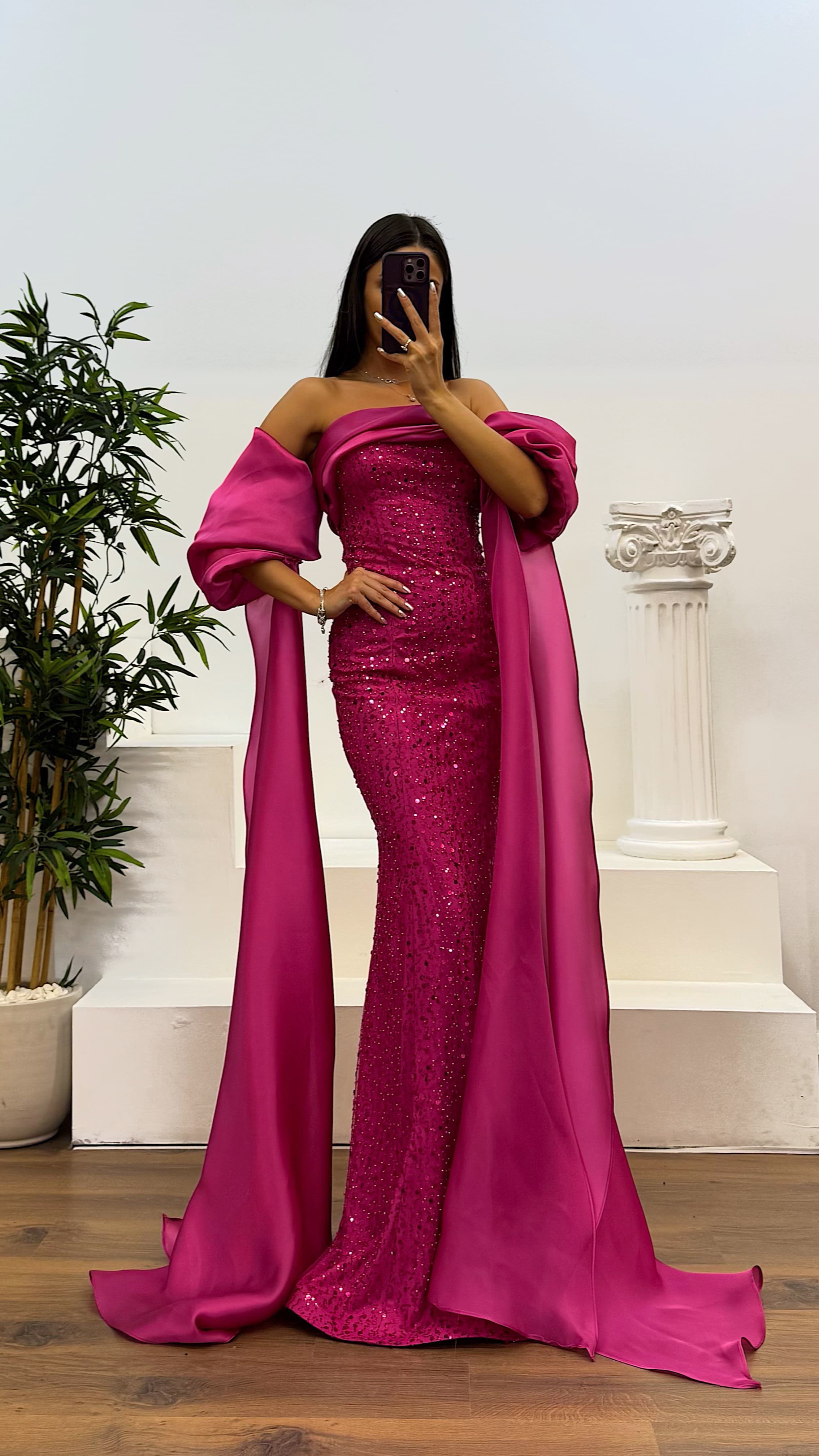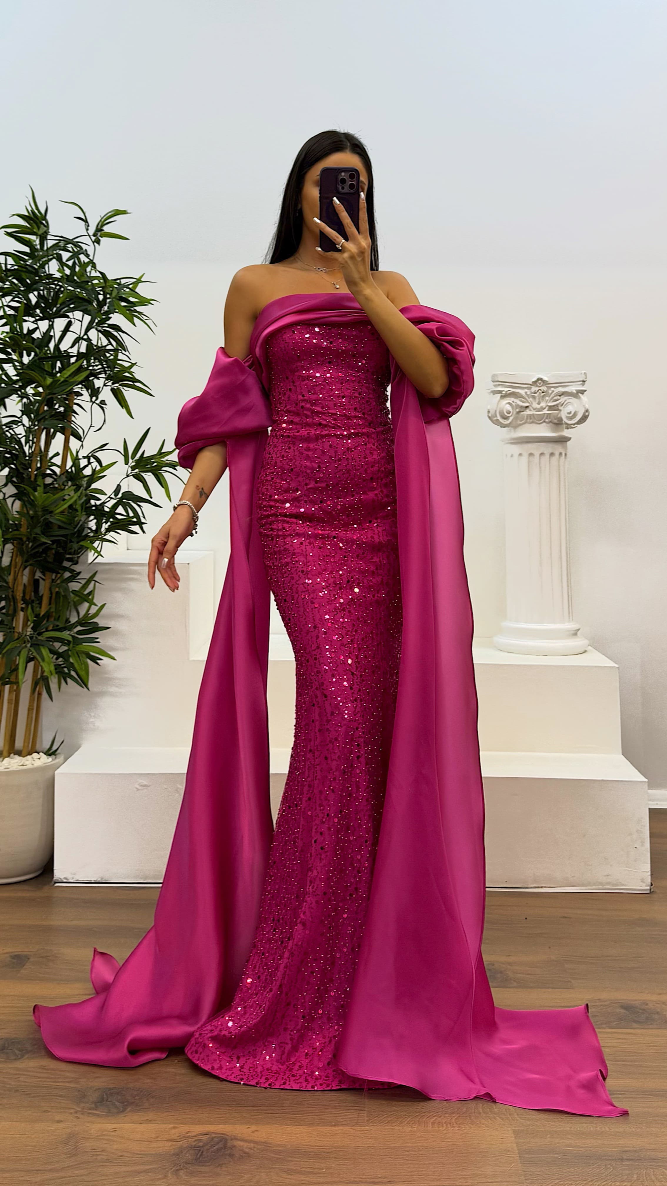 Balon kol işlemeli abiye elbise