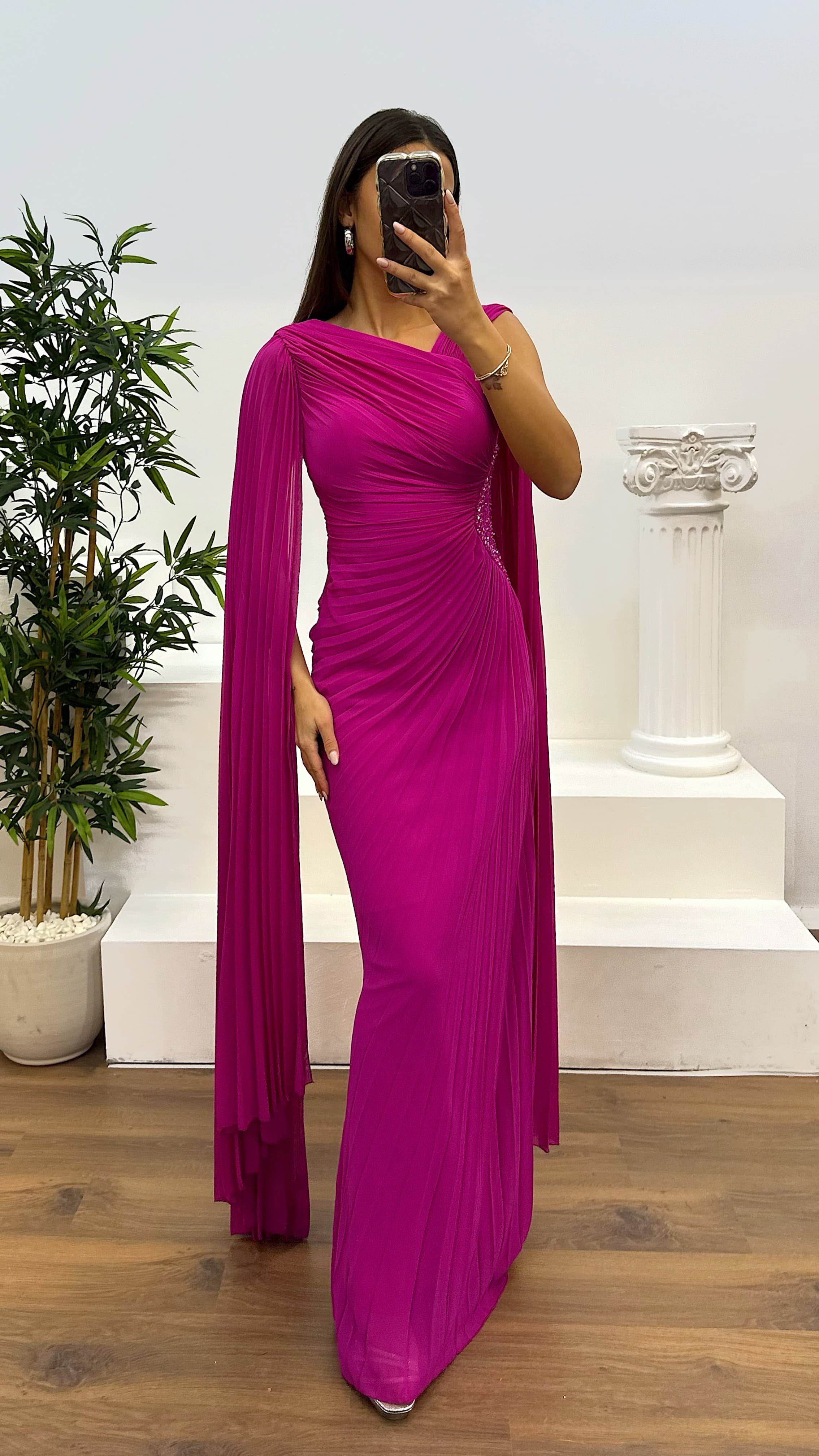 Bel işlemeli piliseli abiye elbise