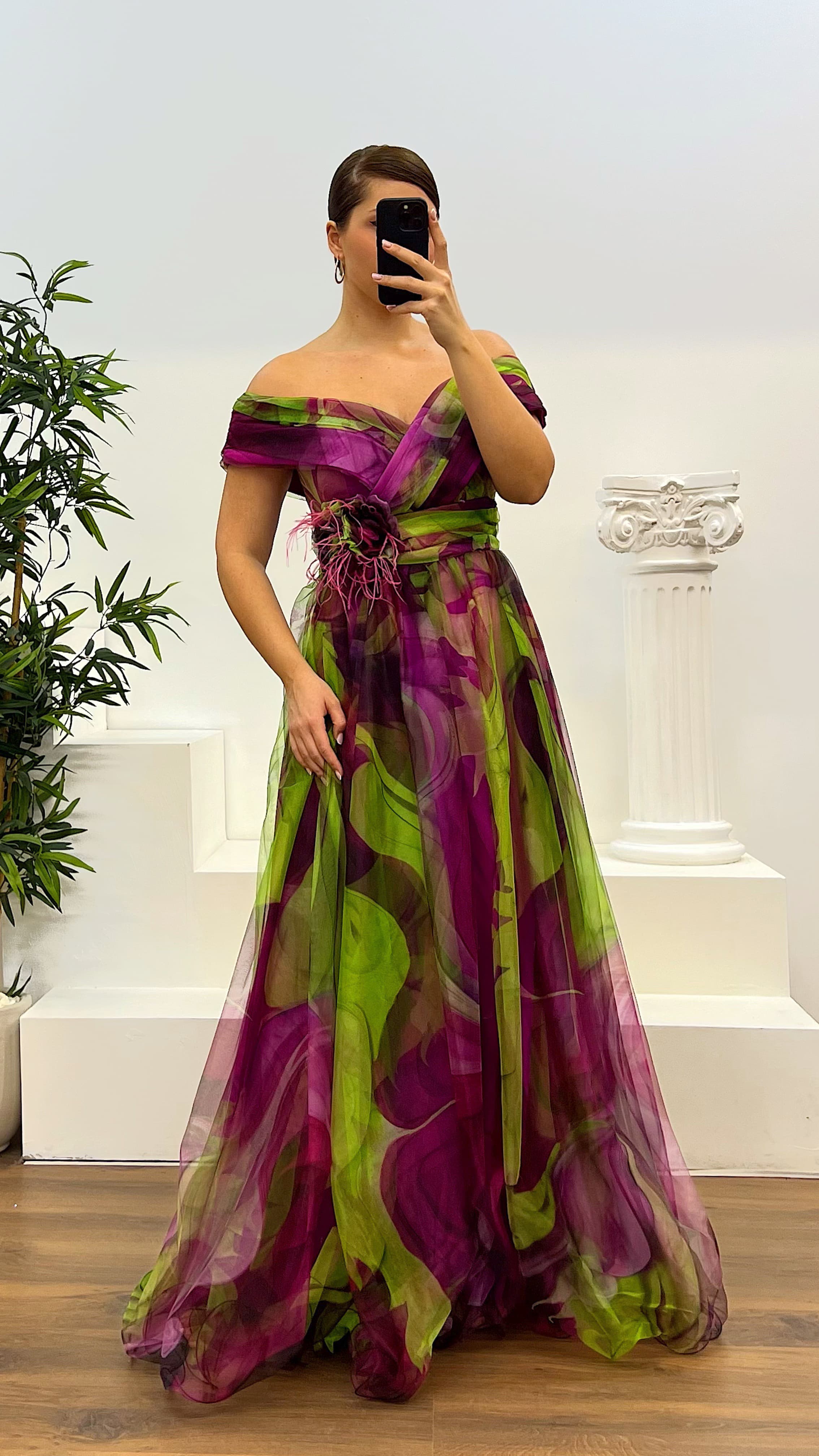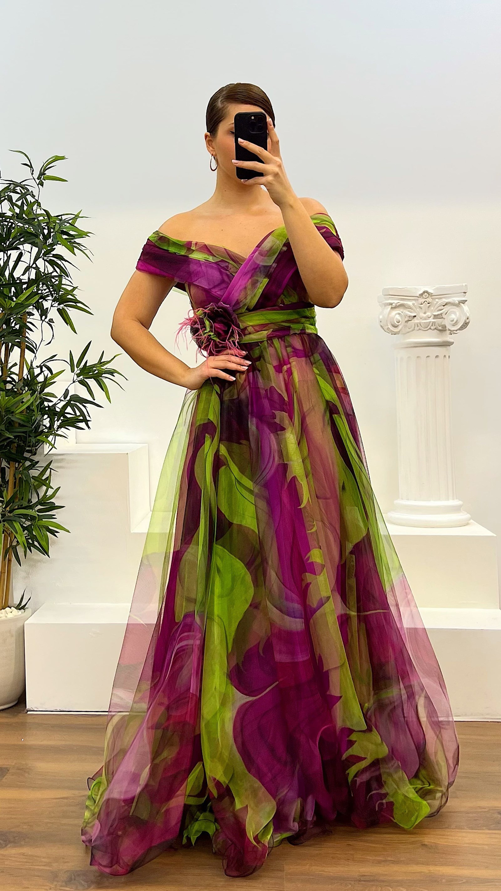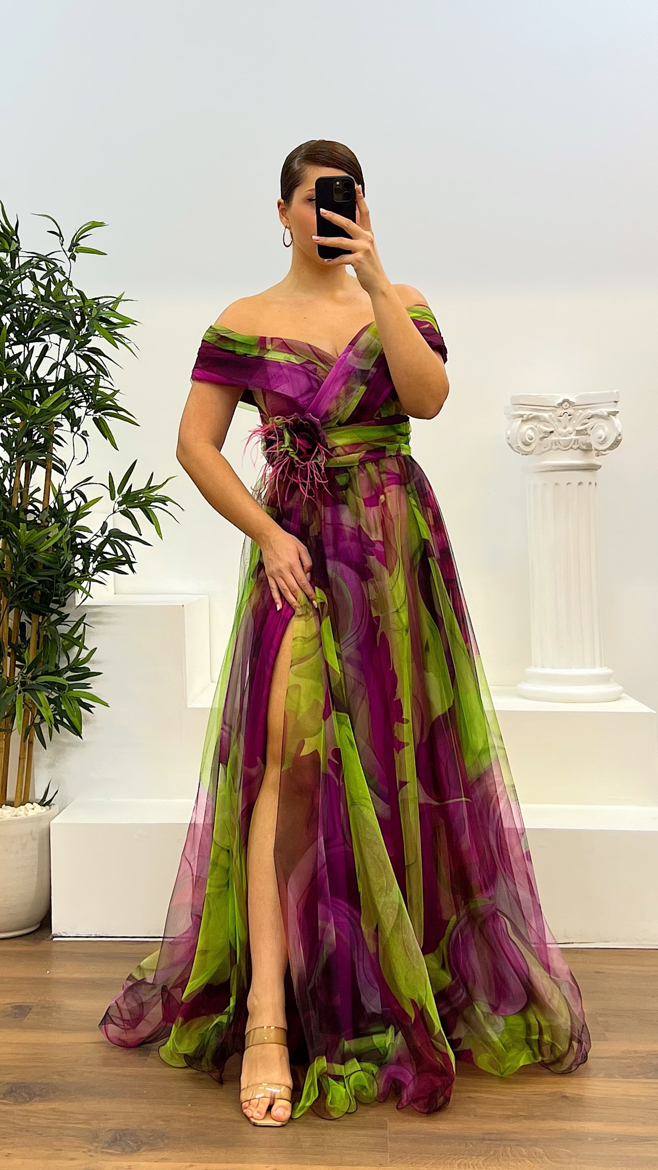 Ürün 44-48 bedene kadar uyumlu, göğüs pedli, astarlı, arka kapama fermuar, yırtmaçlı abiye olarak tasarlanmıştır.