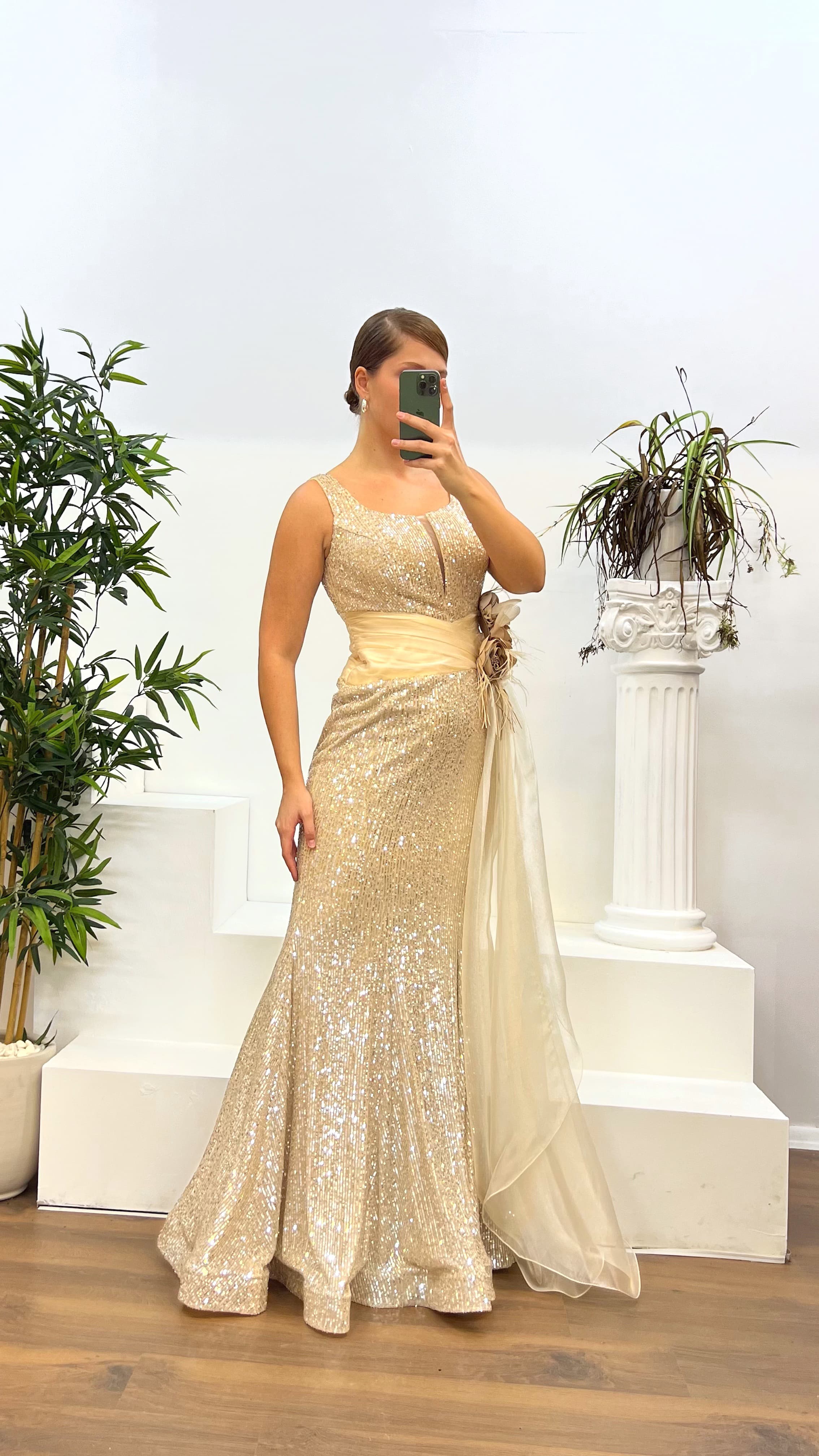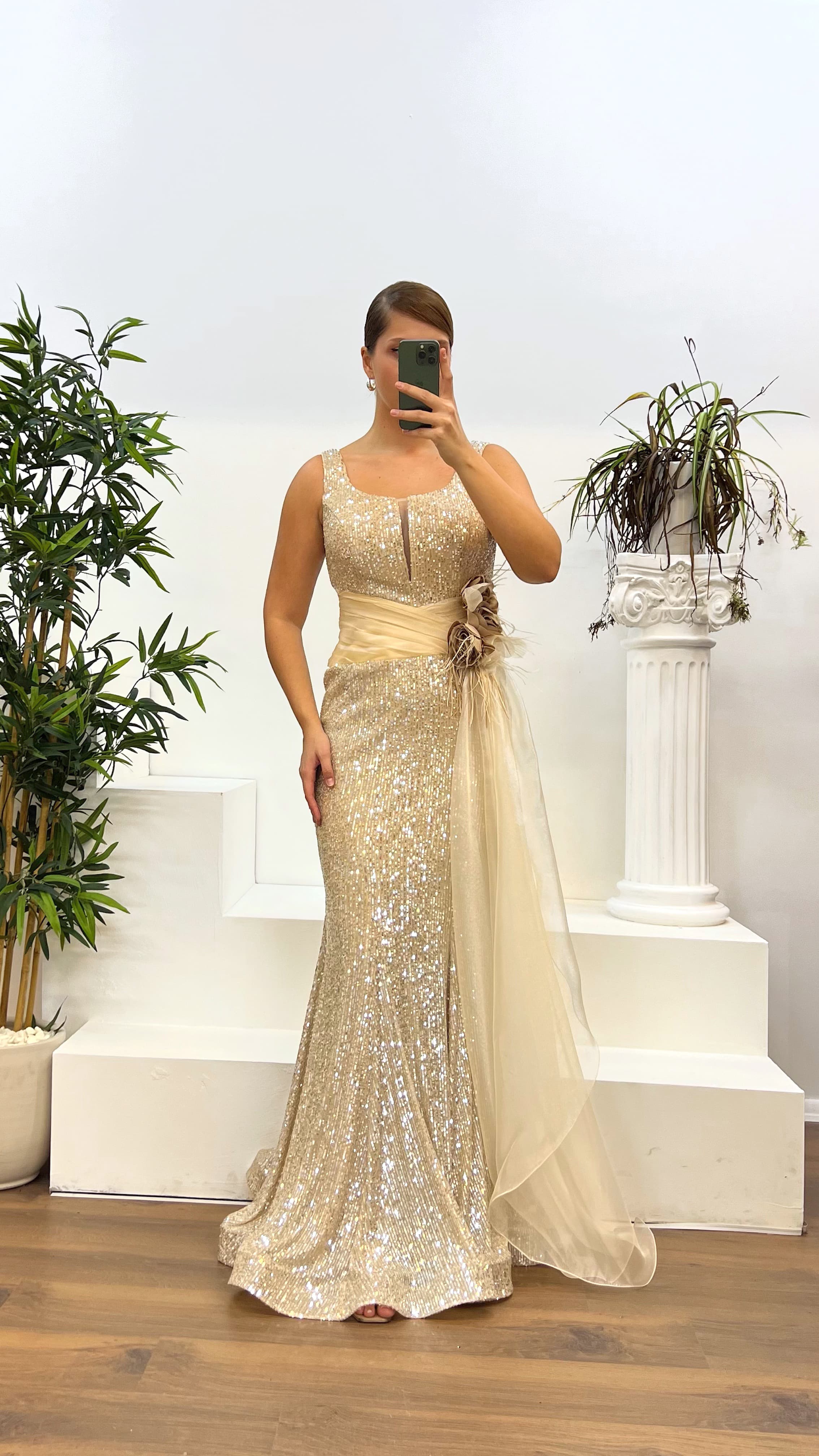 Bel detay pul payet abiye elbise