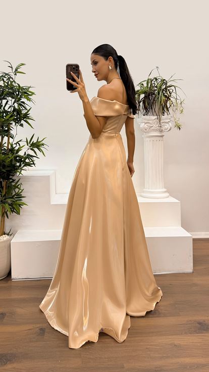 Ürün 36-42 bedene kadar uyumlu, göğüs pedli, astarlı, arka kapama fermuar, cepli, yırtmaçlı, bel detay abiye olarak tasarlanmıştır.
