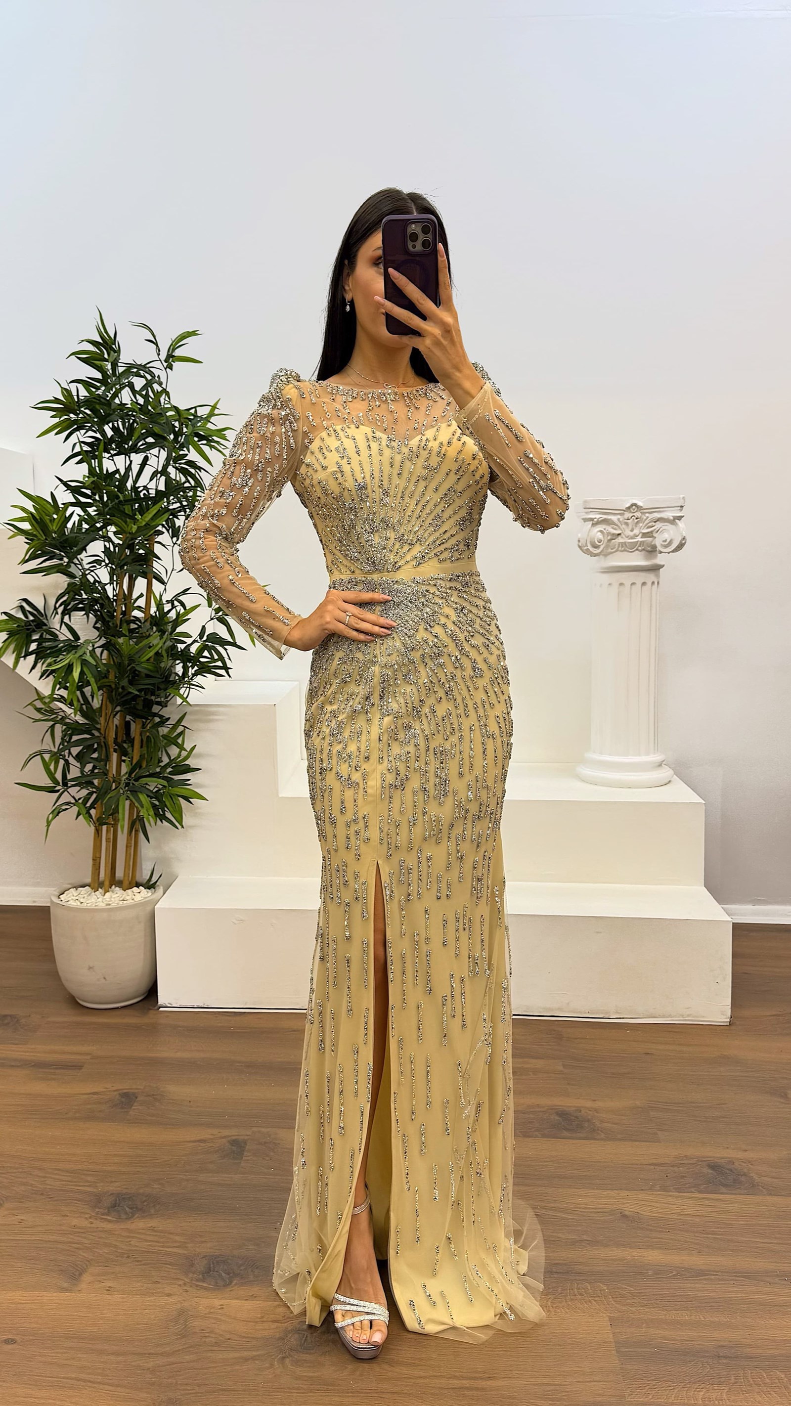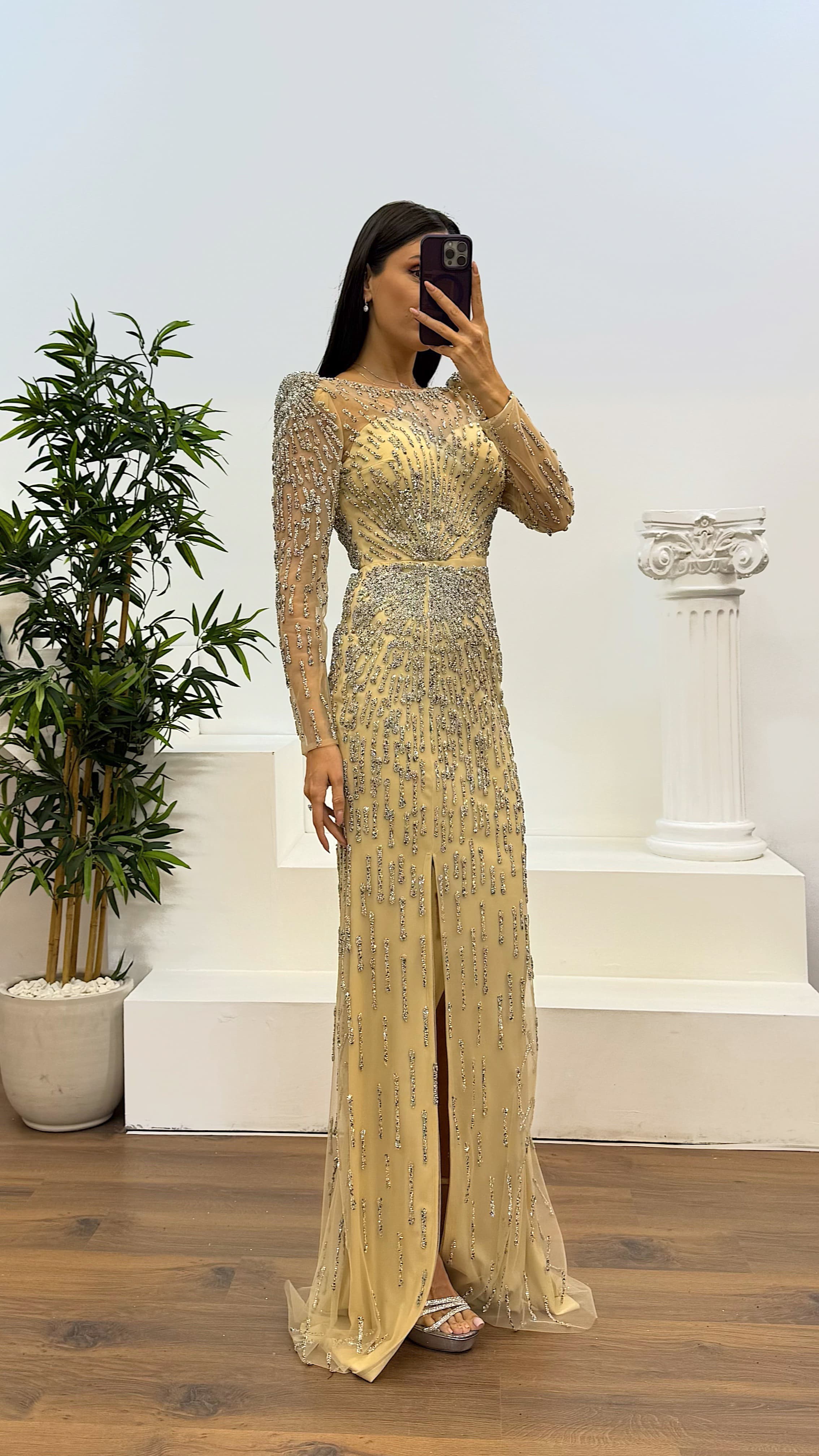 Transparan detay işlemeli abiye elbise