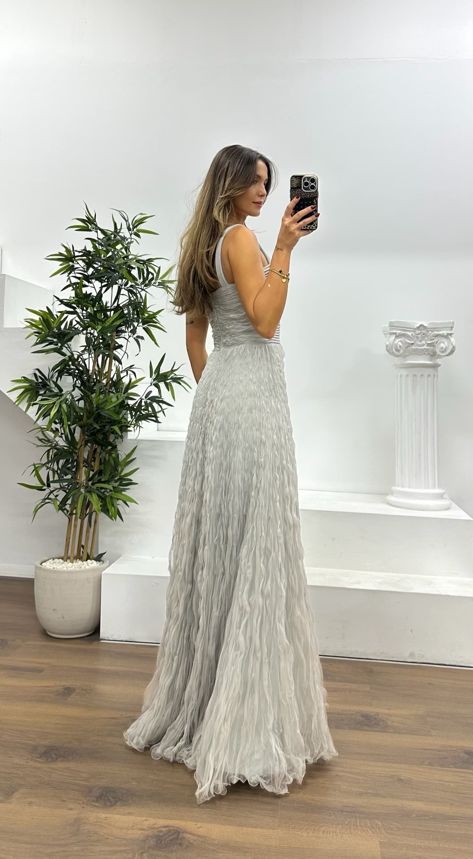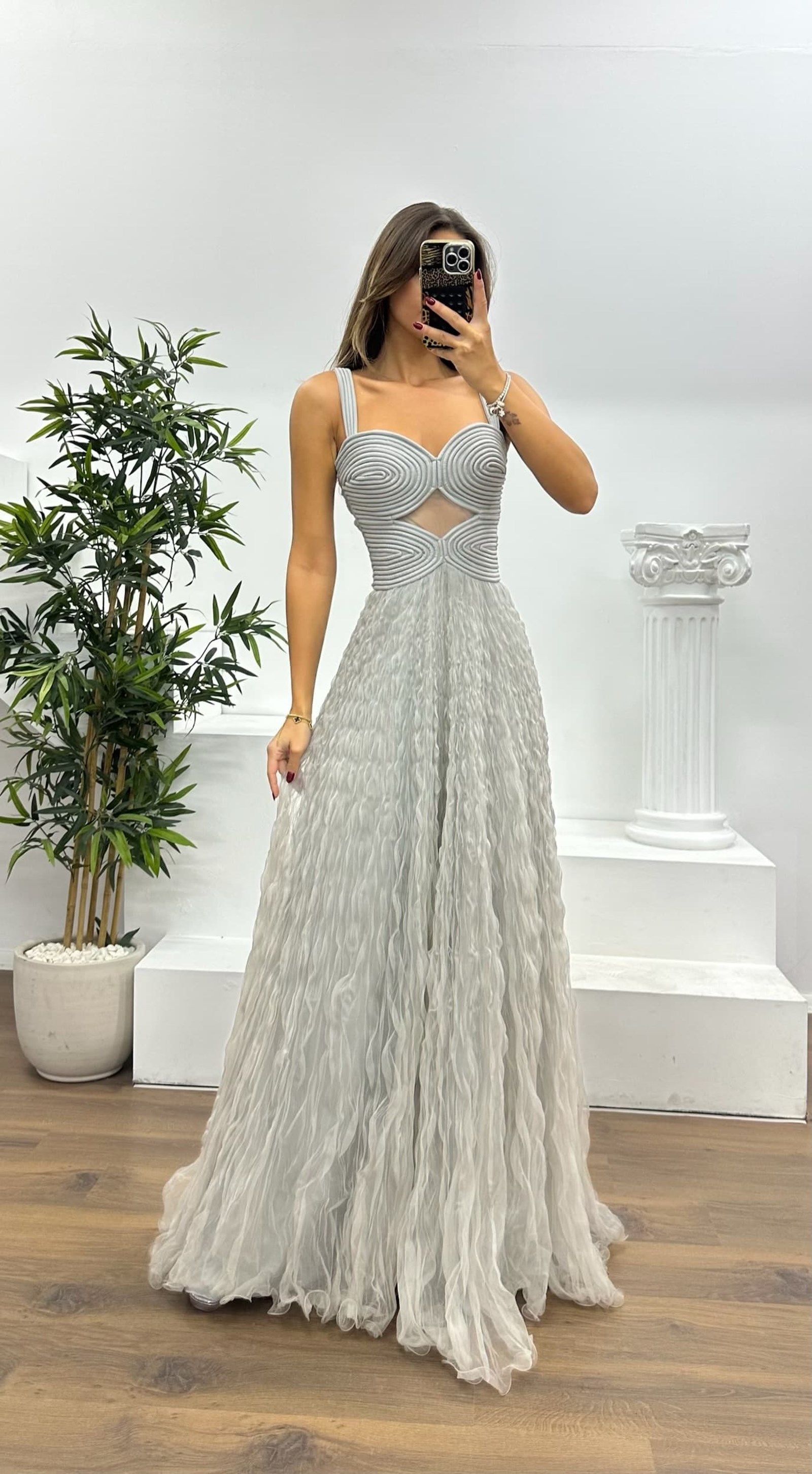 Ürün 36-44 bedene kadar uyumlu, göğüs pedli, astarlı, arka kapama fermuar, göğüs detay abiye olarak tasarlanmıştır.