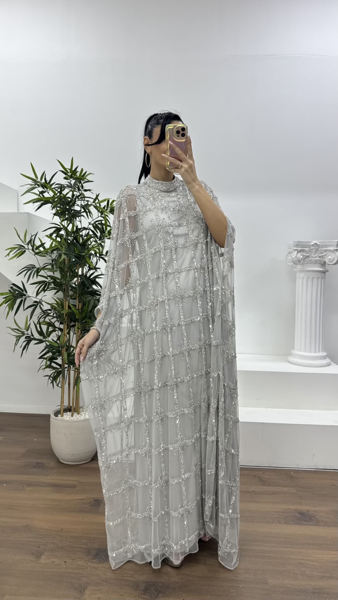 Ürün 36-40 bedene kadar uyumludur. göğüs pedli, astarlı, fermuarlı, yarasa kol detay, motifli abiye olarak tasarlanmıştır.