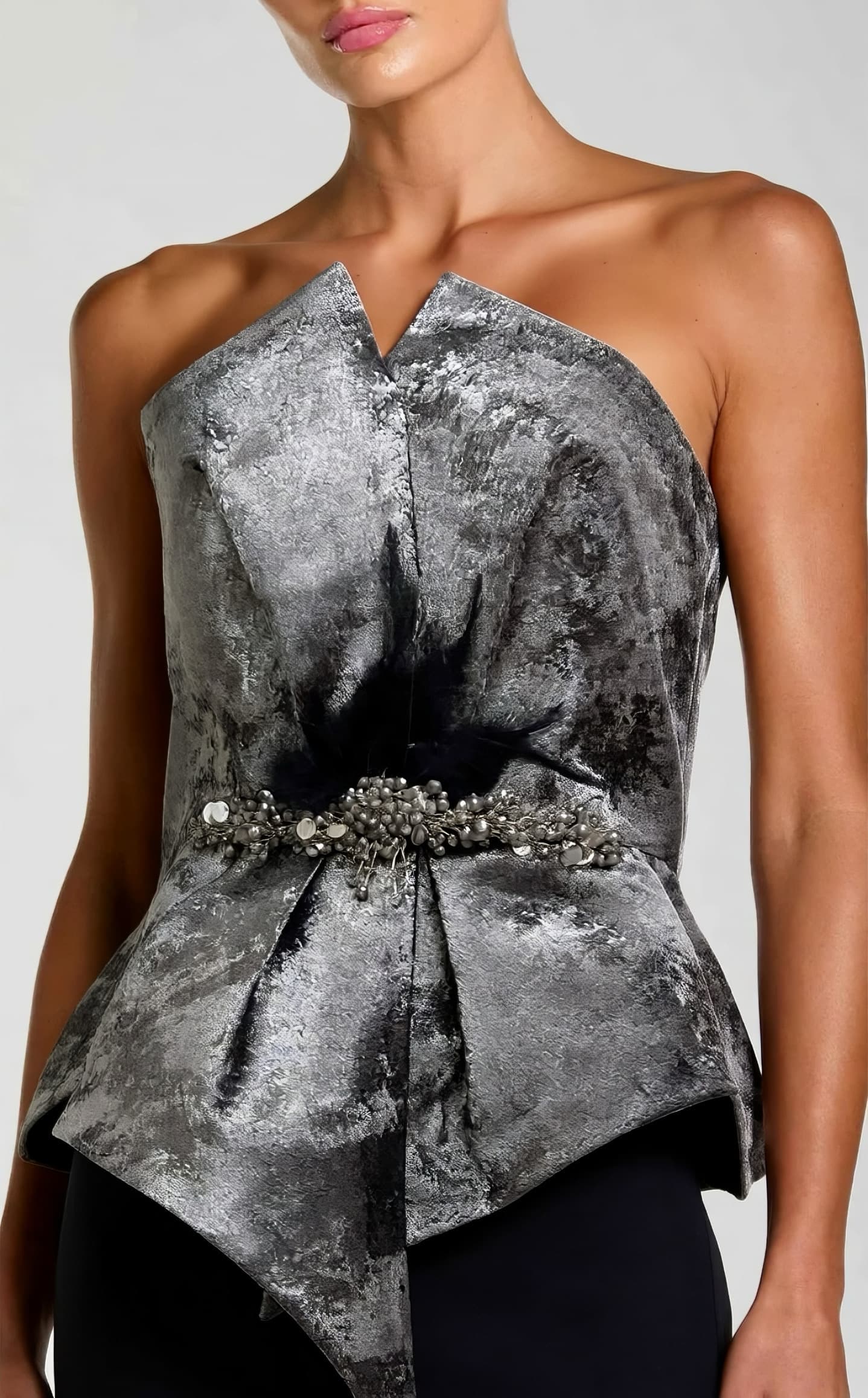• Gümüş Straplez Peplum Kesim Abiye Elbise