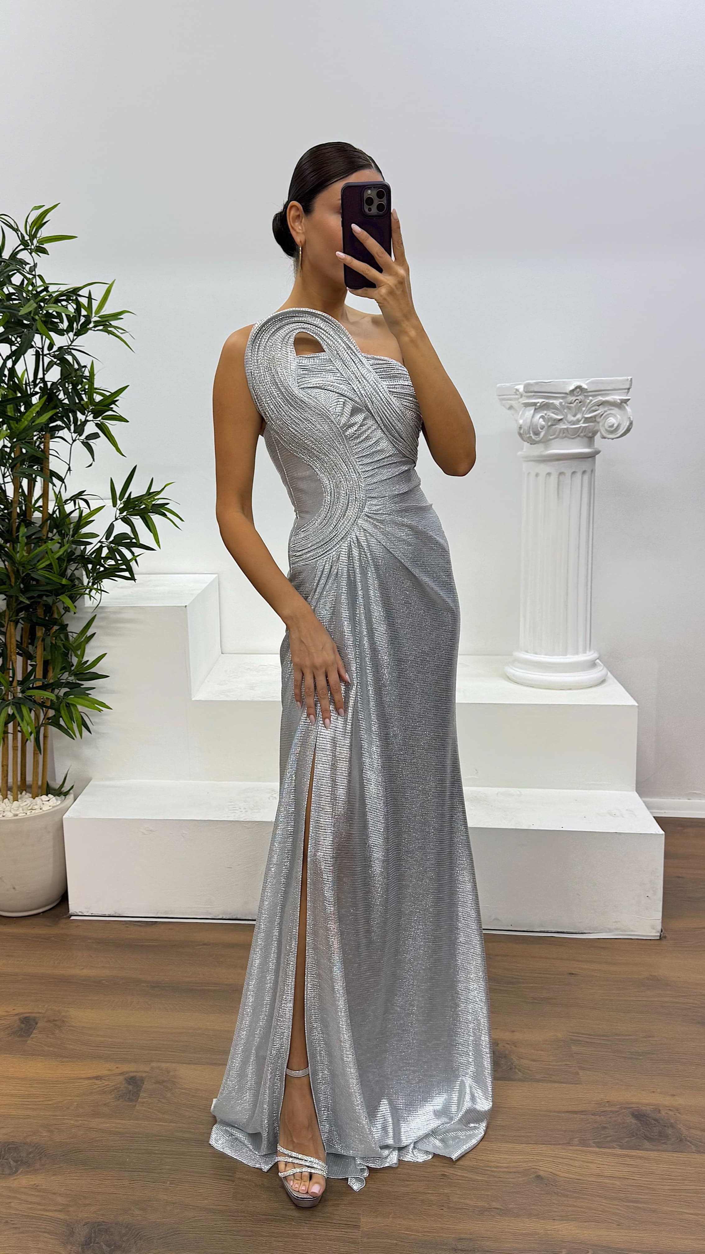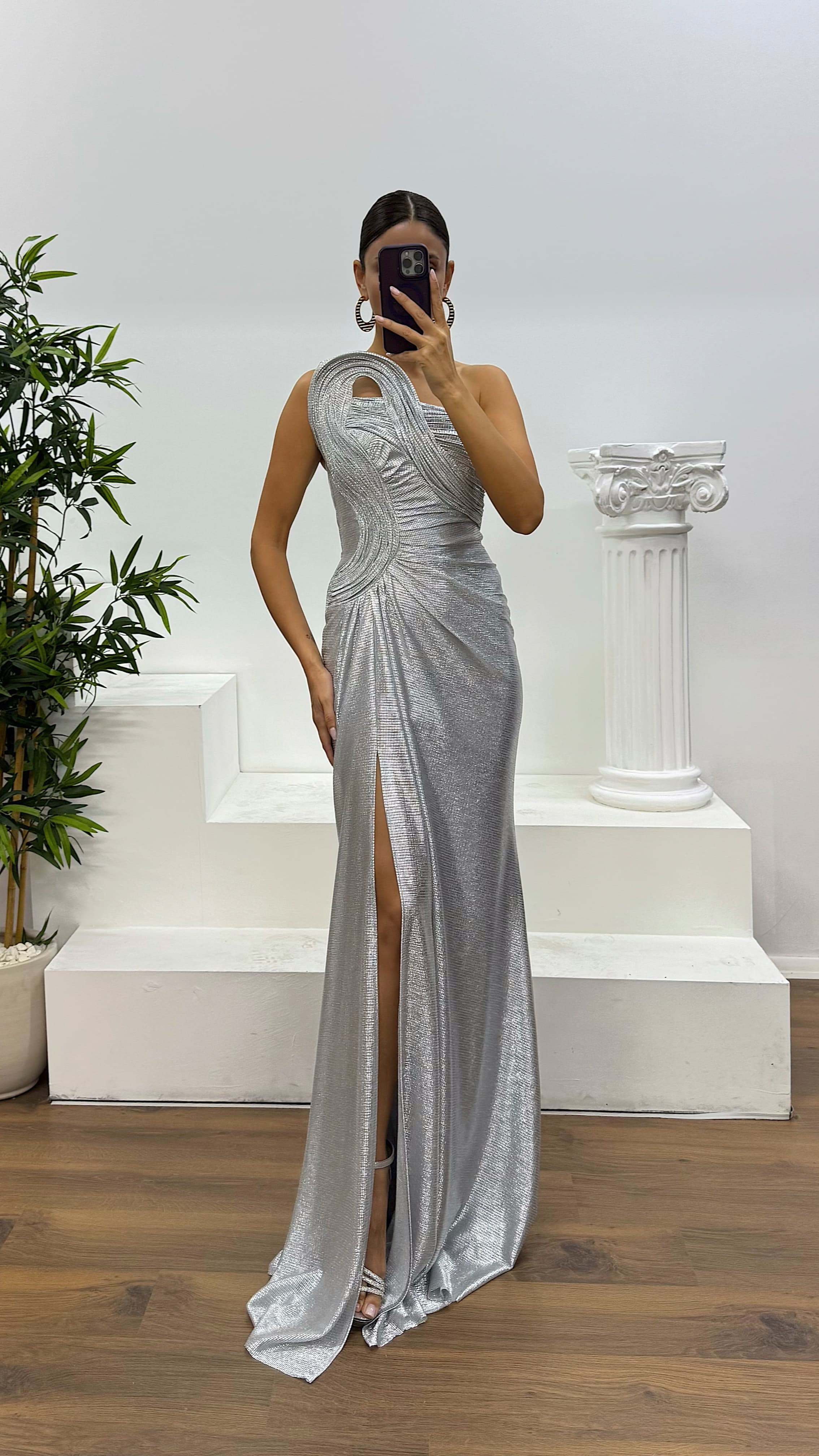 Ürün 36-44 bedene kadar uyumlu, göğüs pedli, astarlı, arka kapama fermuar, yırtmaçlı, yaka detay abiye olarak tasarlanmıştır.