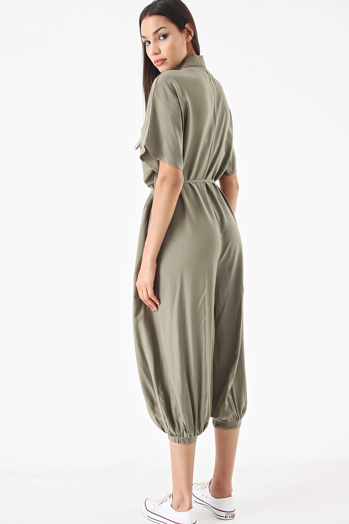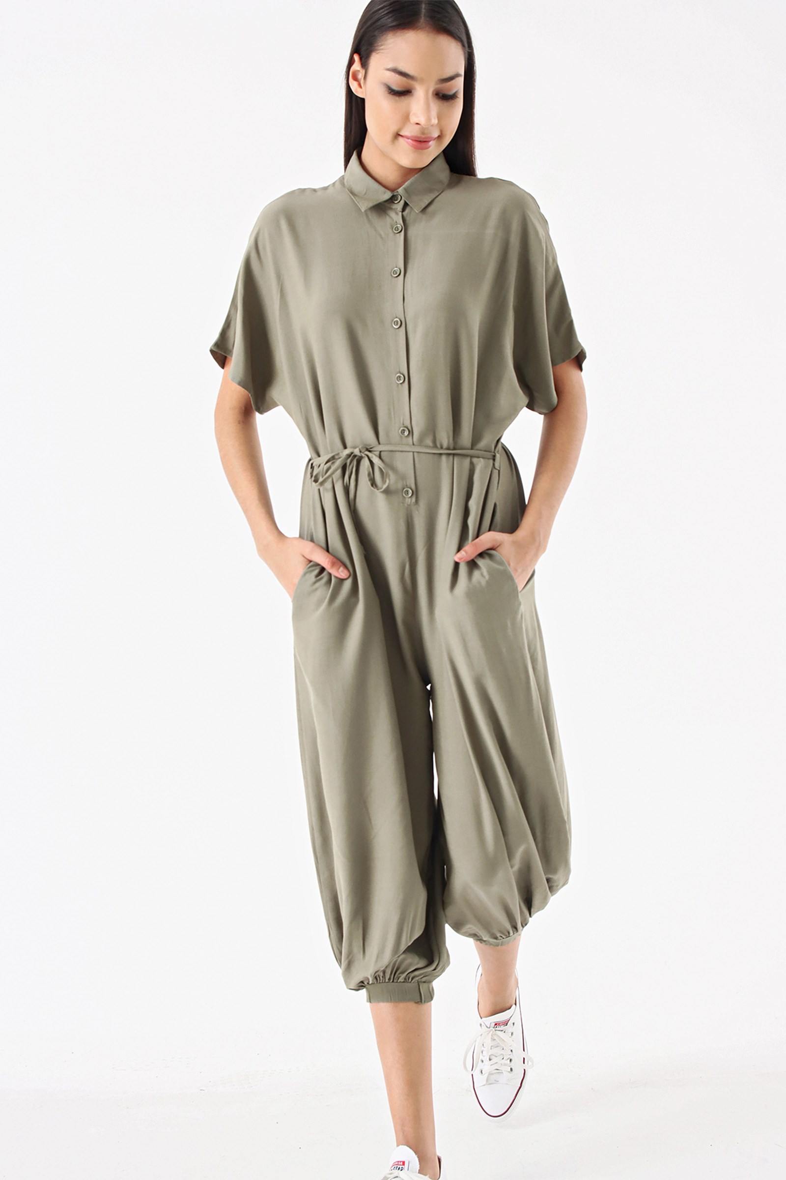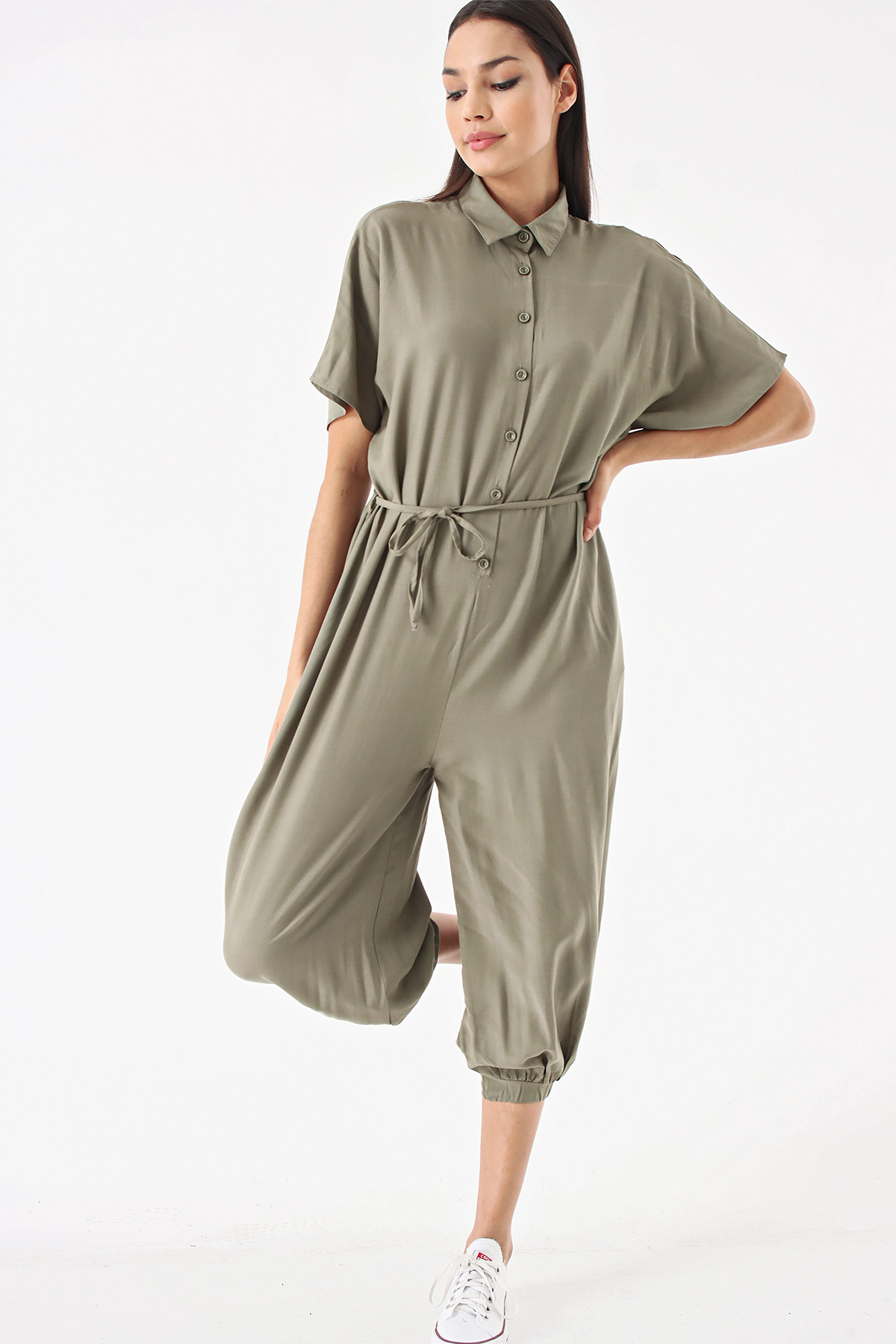 Haki Düğmeli Salvar Tulum
