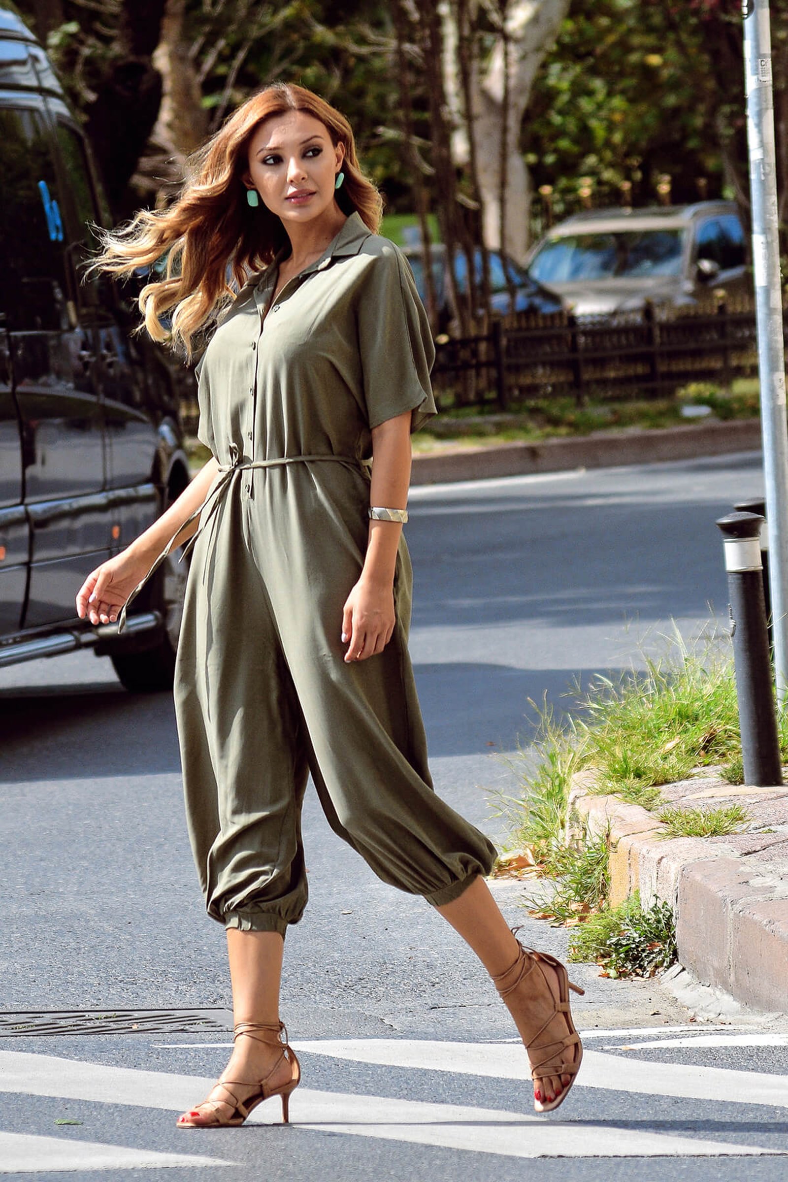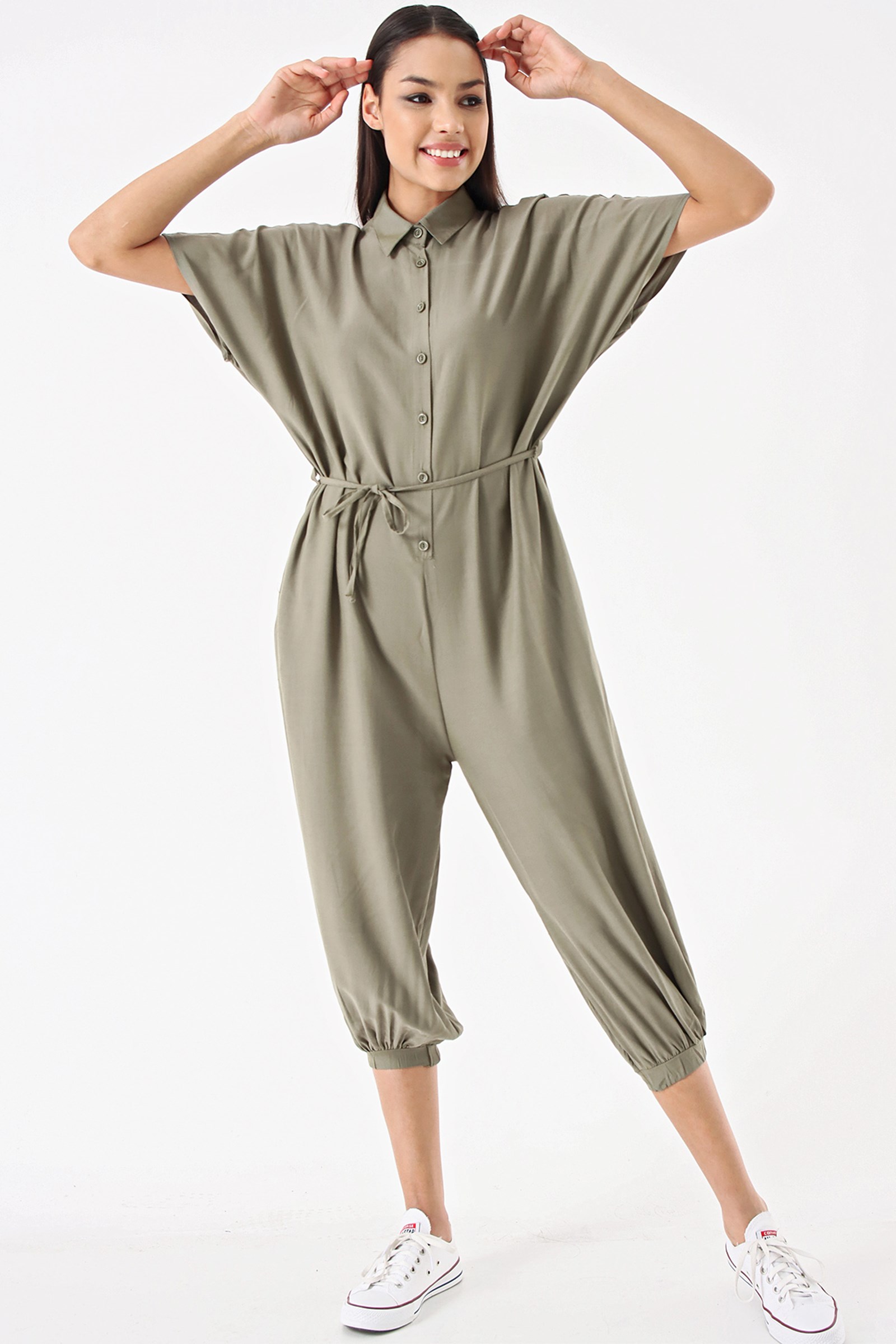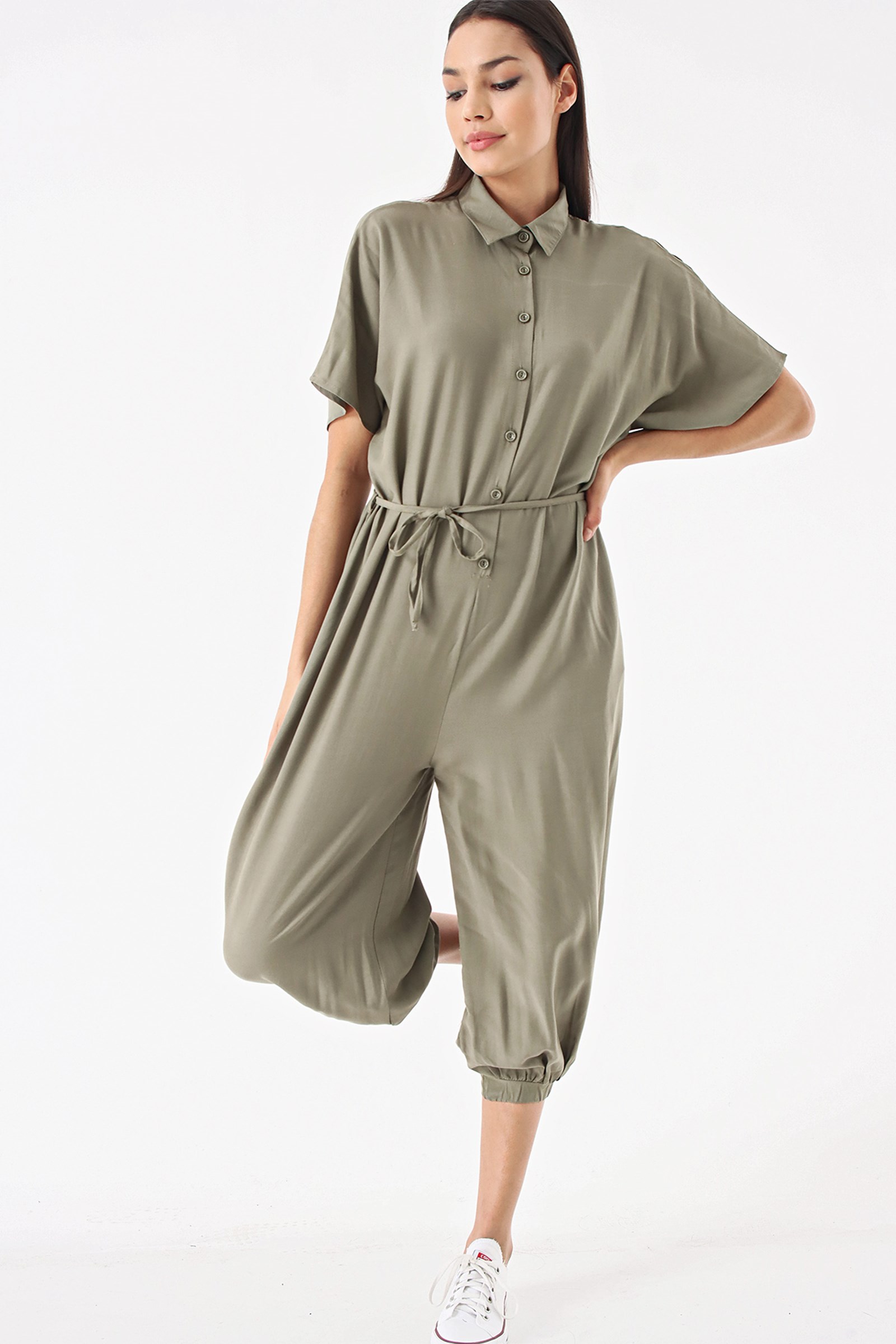 Haki Düğmeli Salvar Tulum