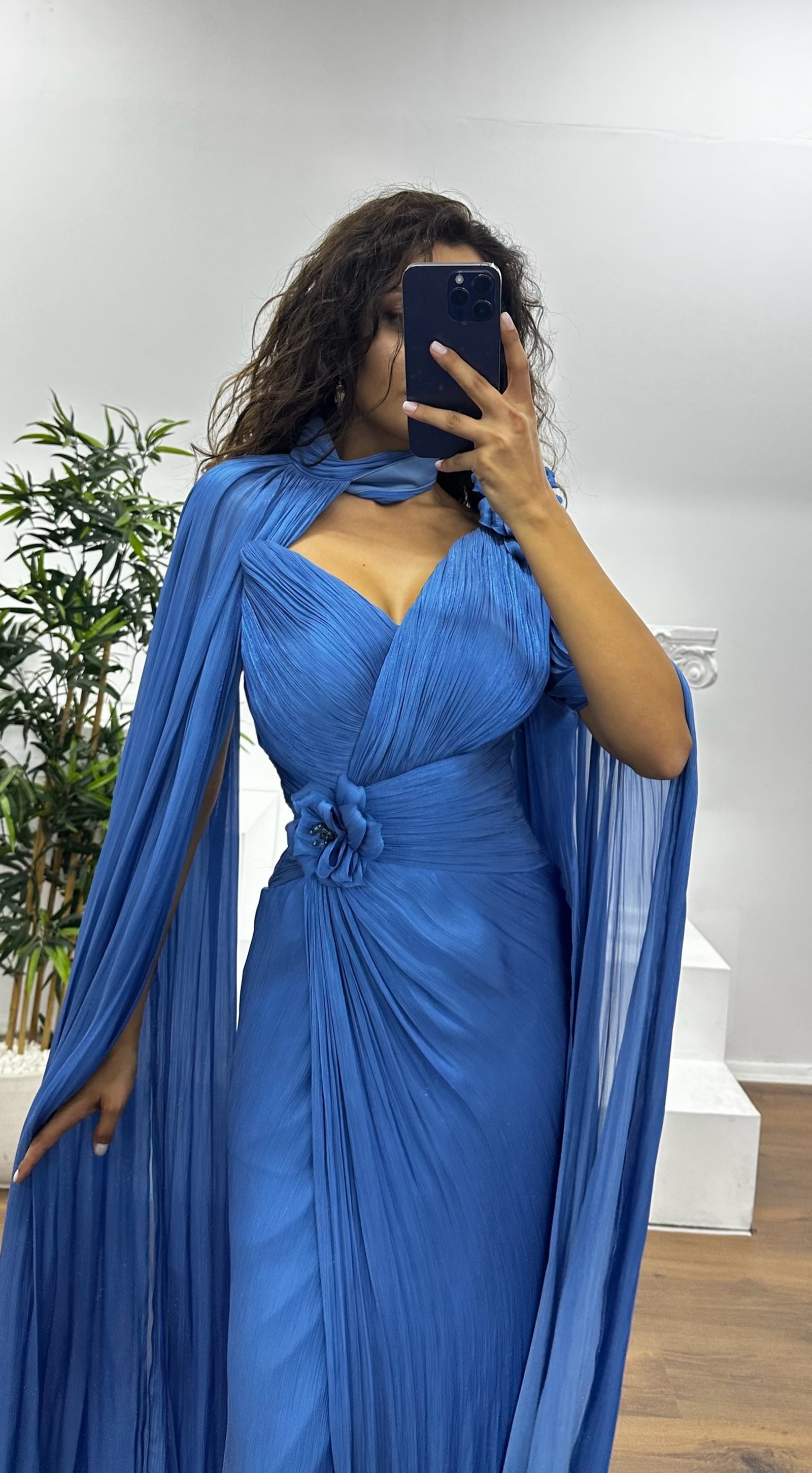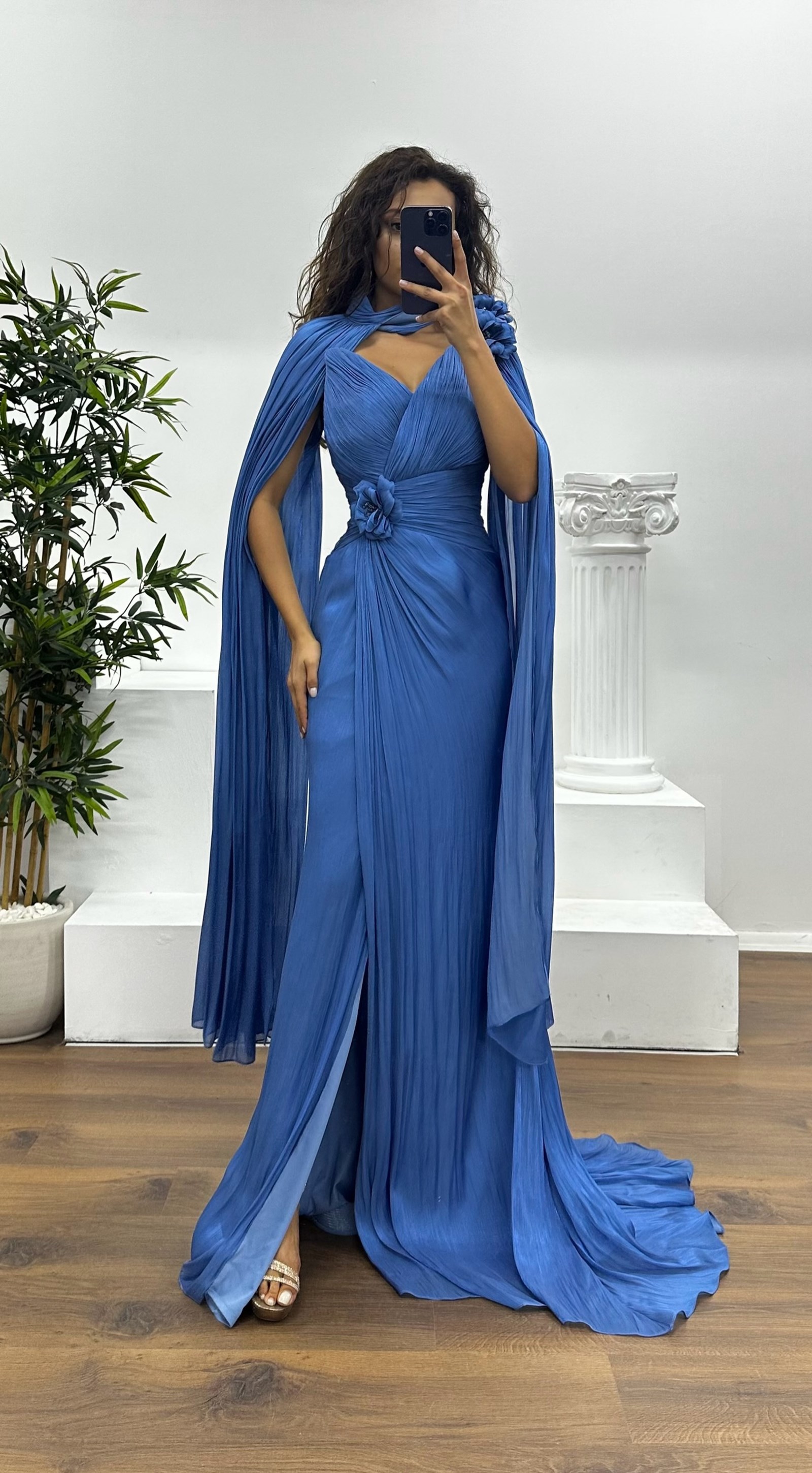 Ürün 36-42 bedene kadar uyumlu, göğüs pedli, astarlı, arka kapama fermuar, yırtmaçlı, çiçek detay abiye olarak tasarlanmıştır.