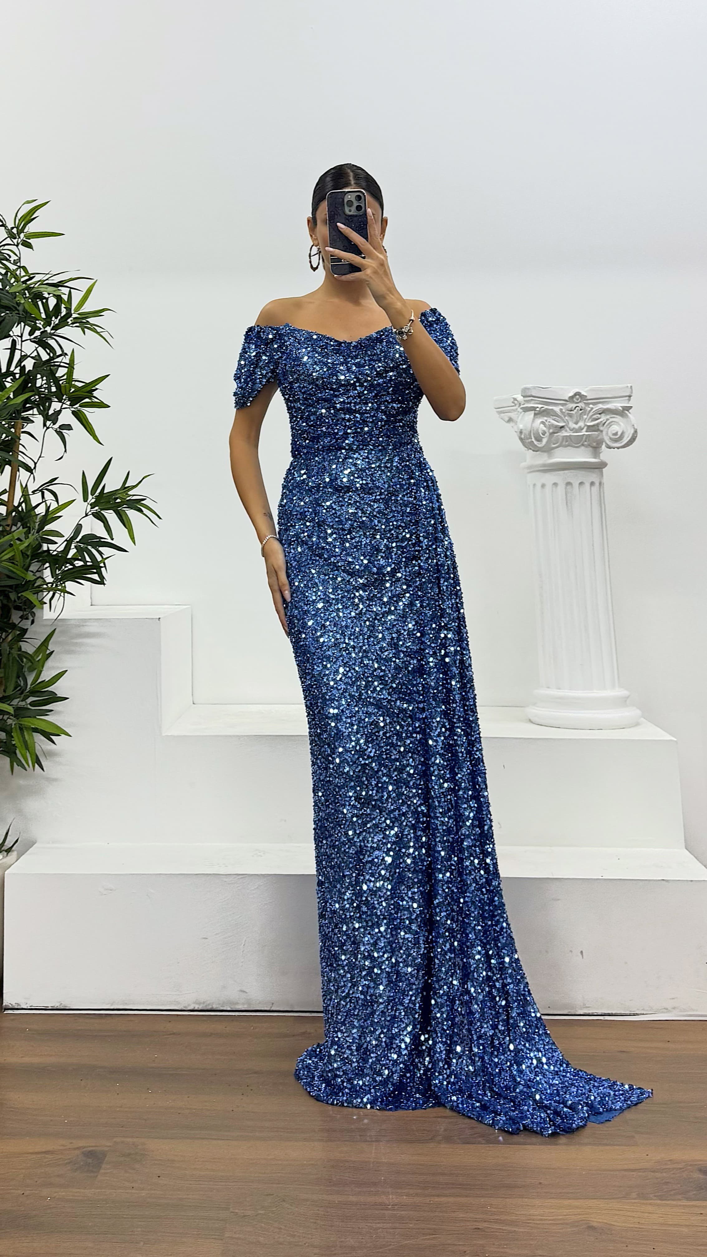 Ürün 36-42 bedene kadar uyumlu, göğüs pedli, astarlı, arka kapama fermuar, yırtmaçlı abiye olarak tasarlanmıştır.