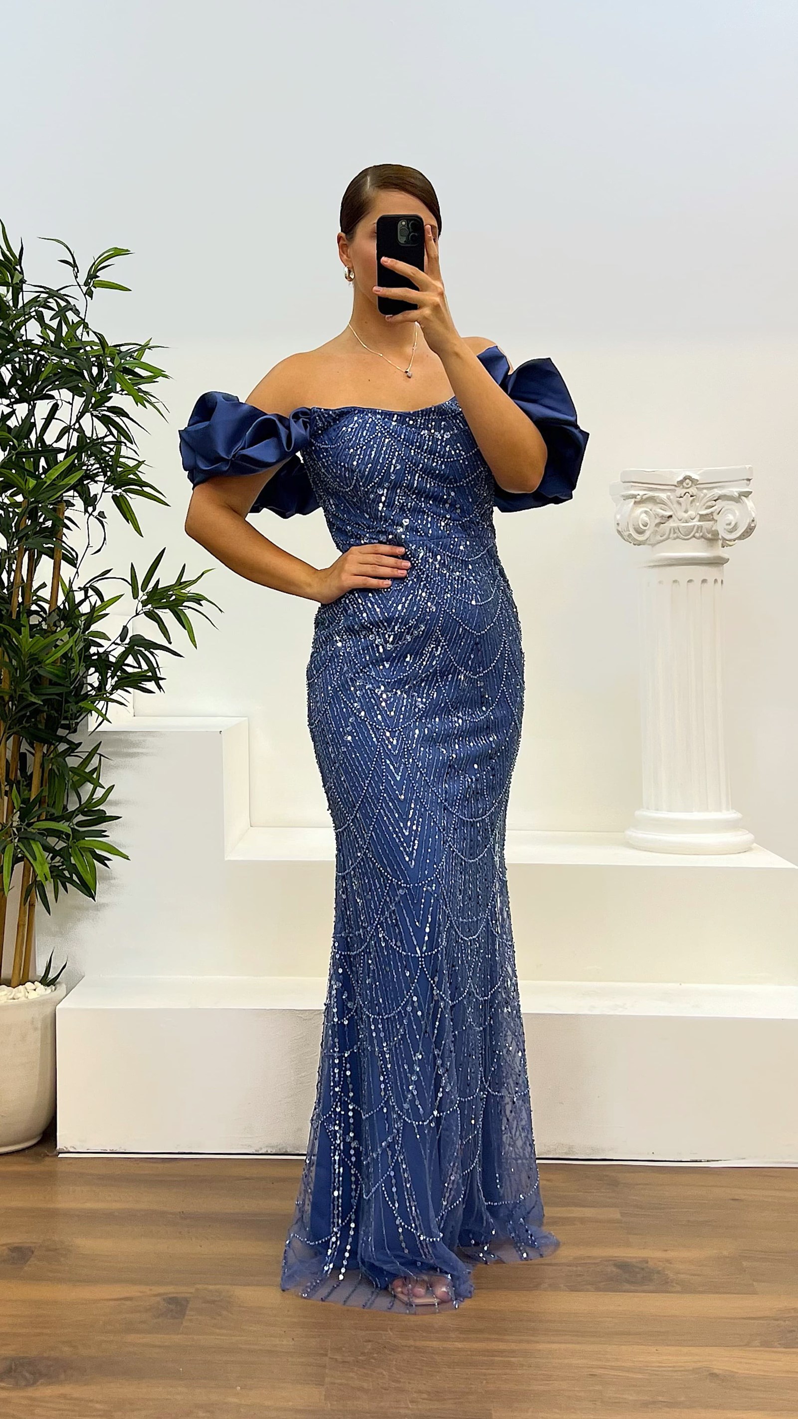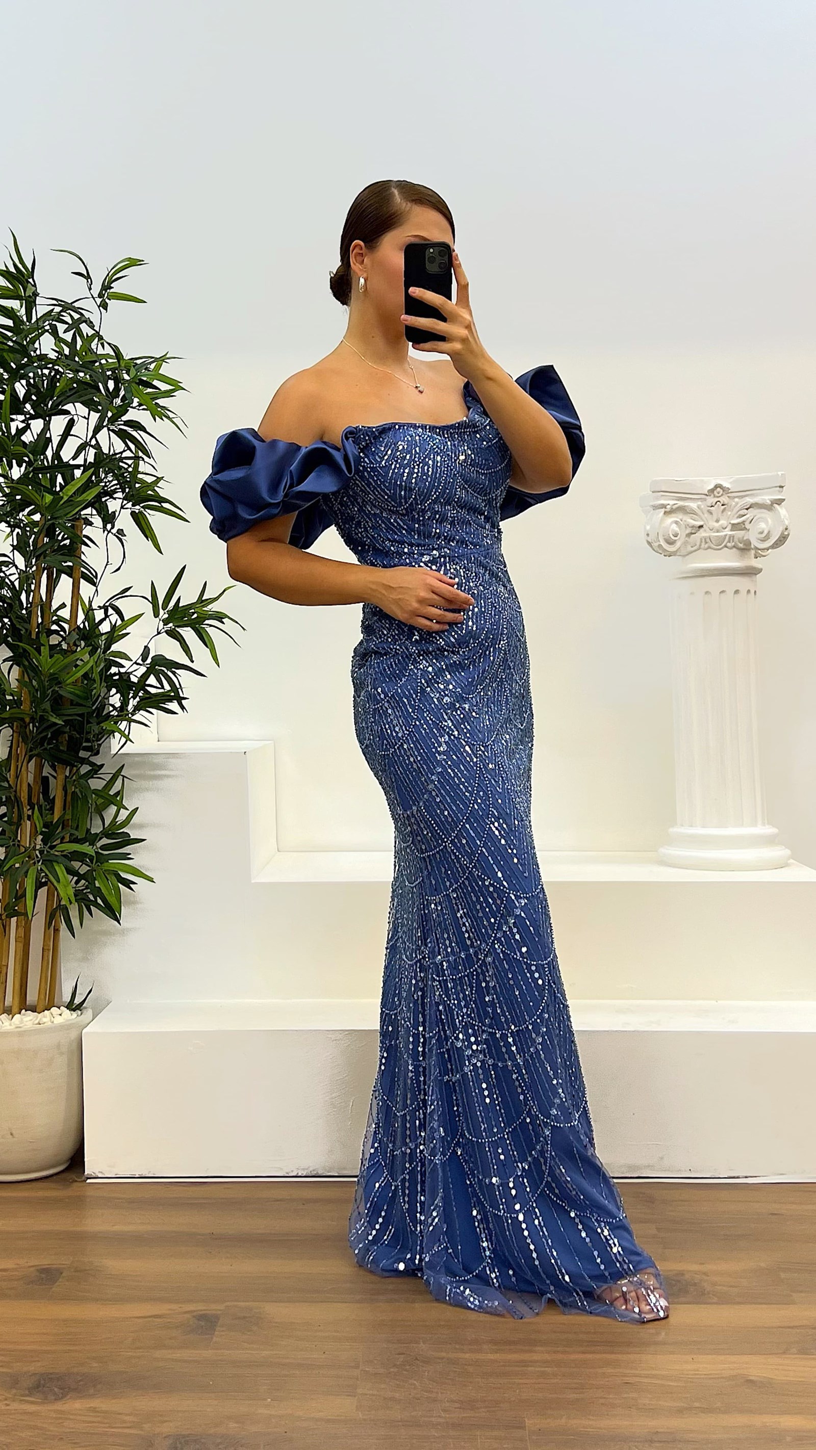 Ürün 44-48 bedene kadar uyumlu, göğüs pedli, astarlı, arka kapama fermuar, işlemeli abiye olarak tasarlanmıştır.
