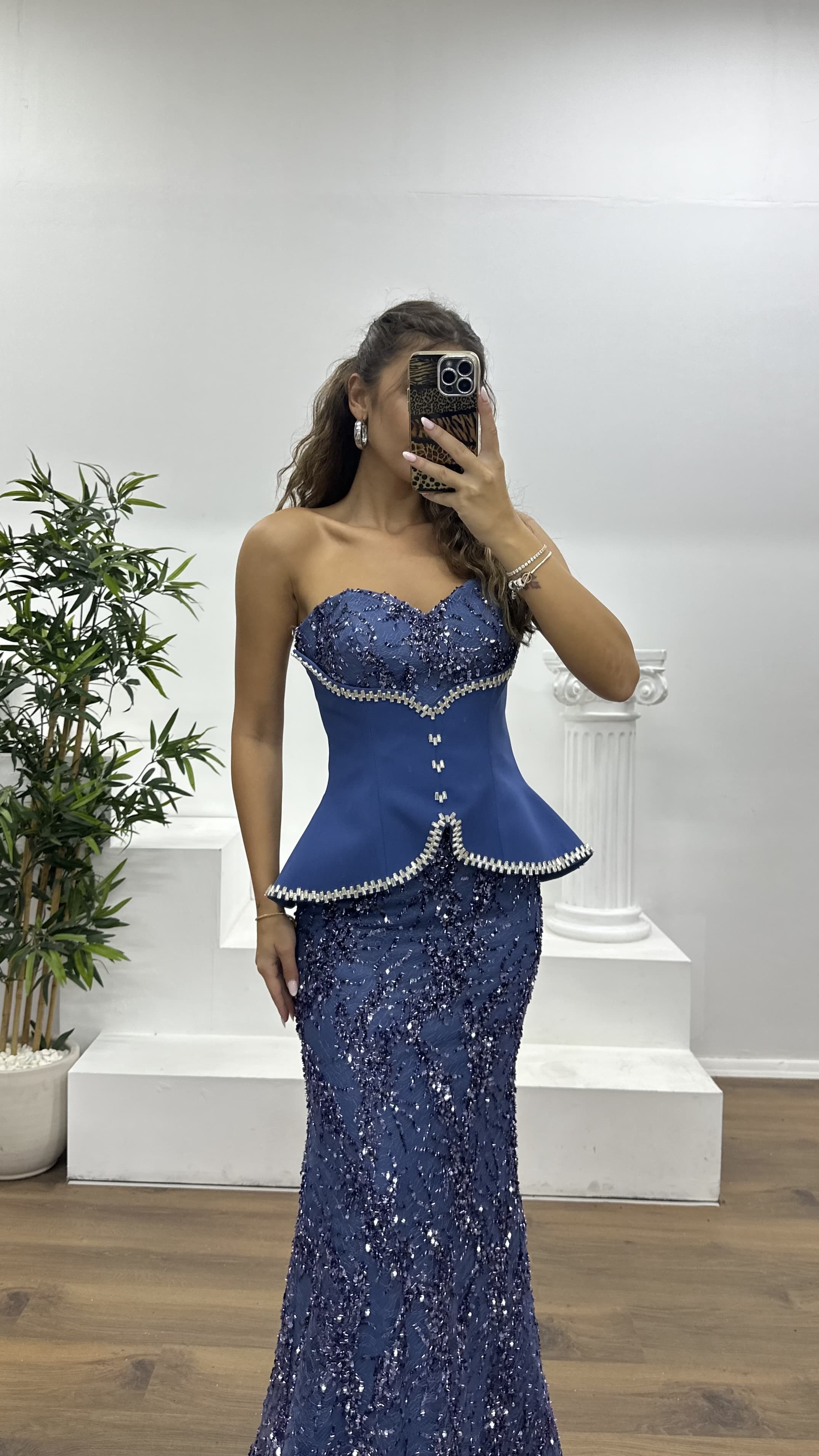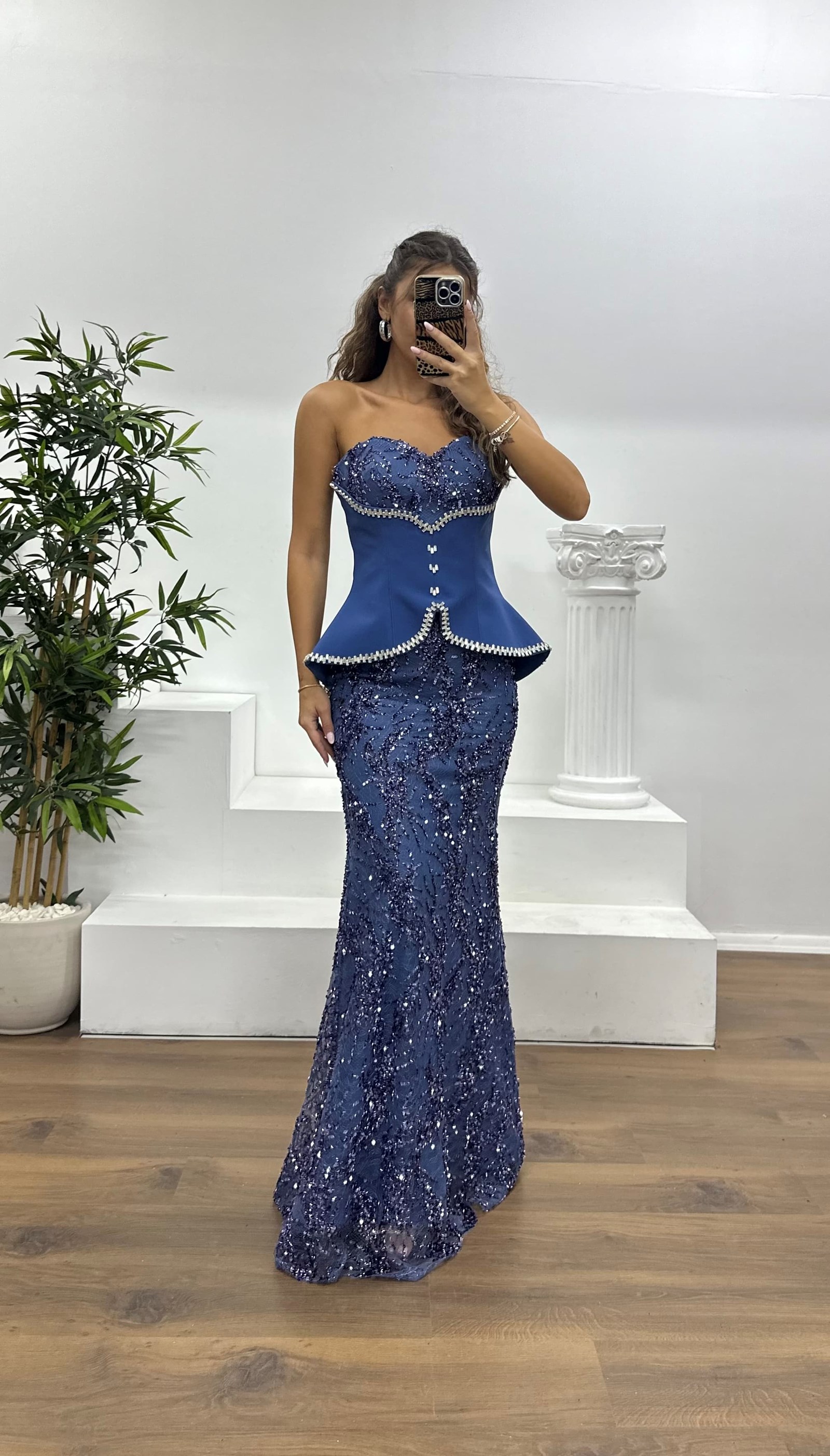 Korse detay işlemeli abiye elbise
