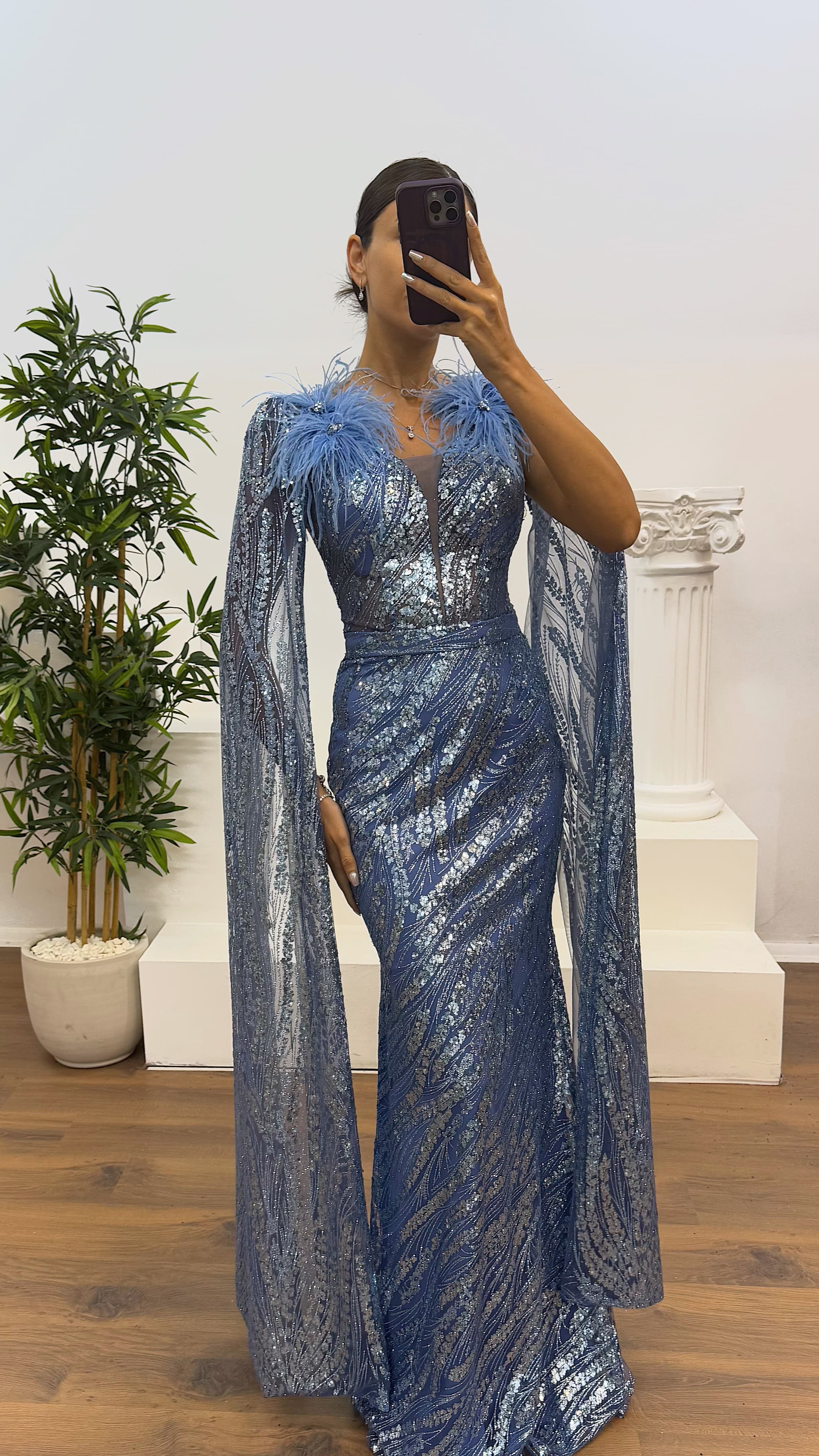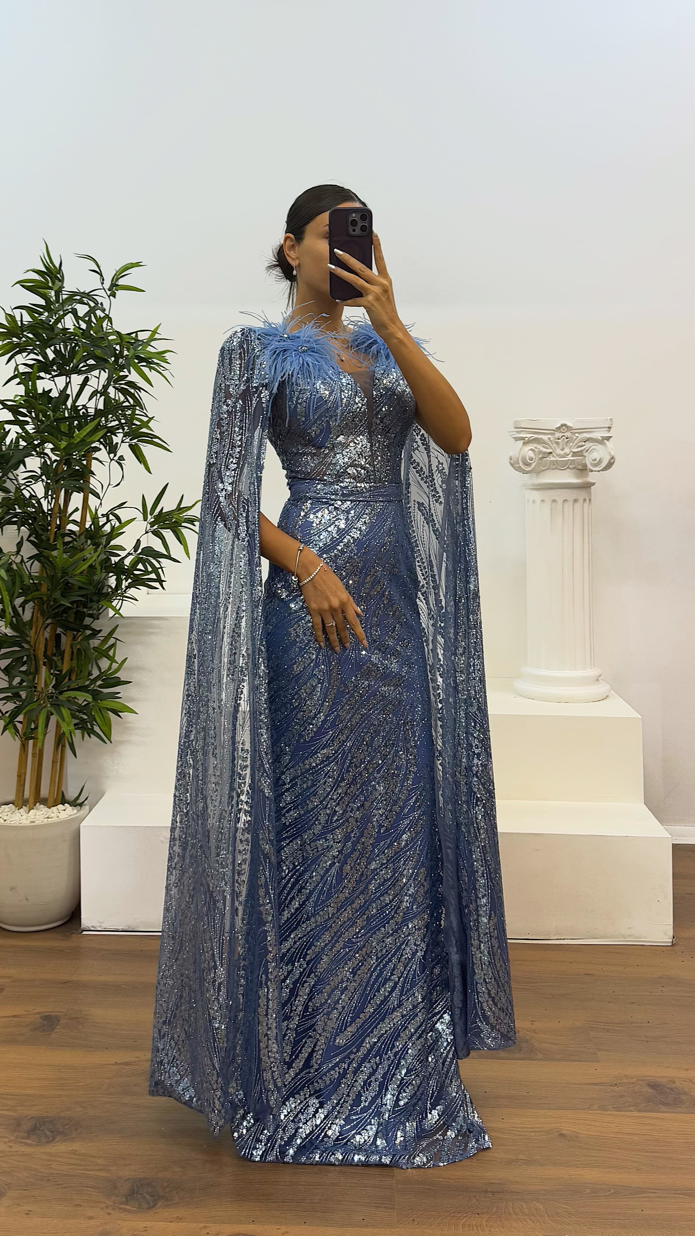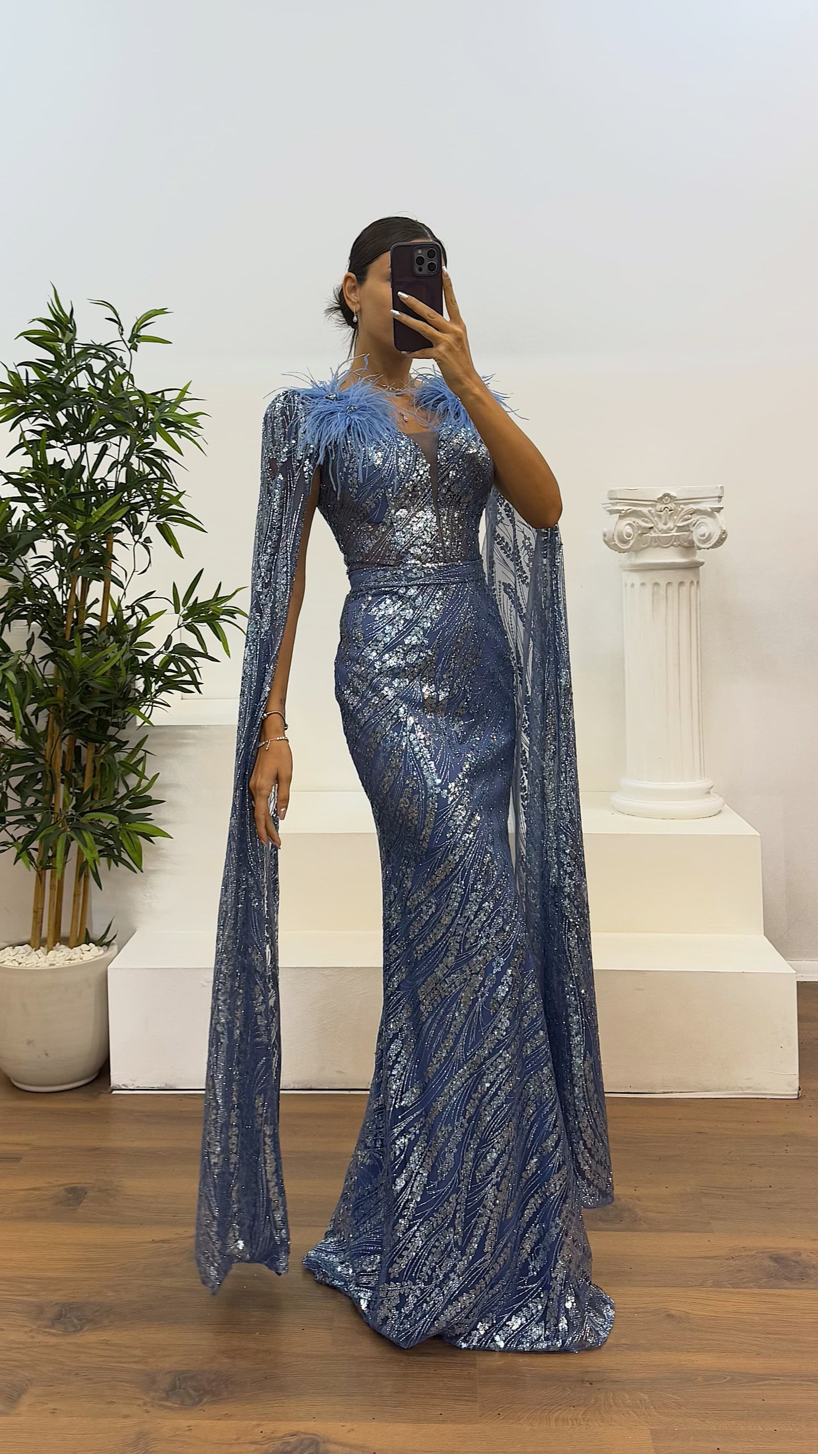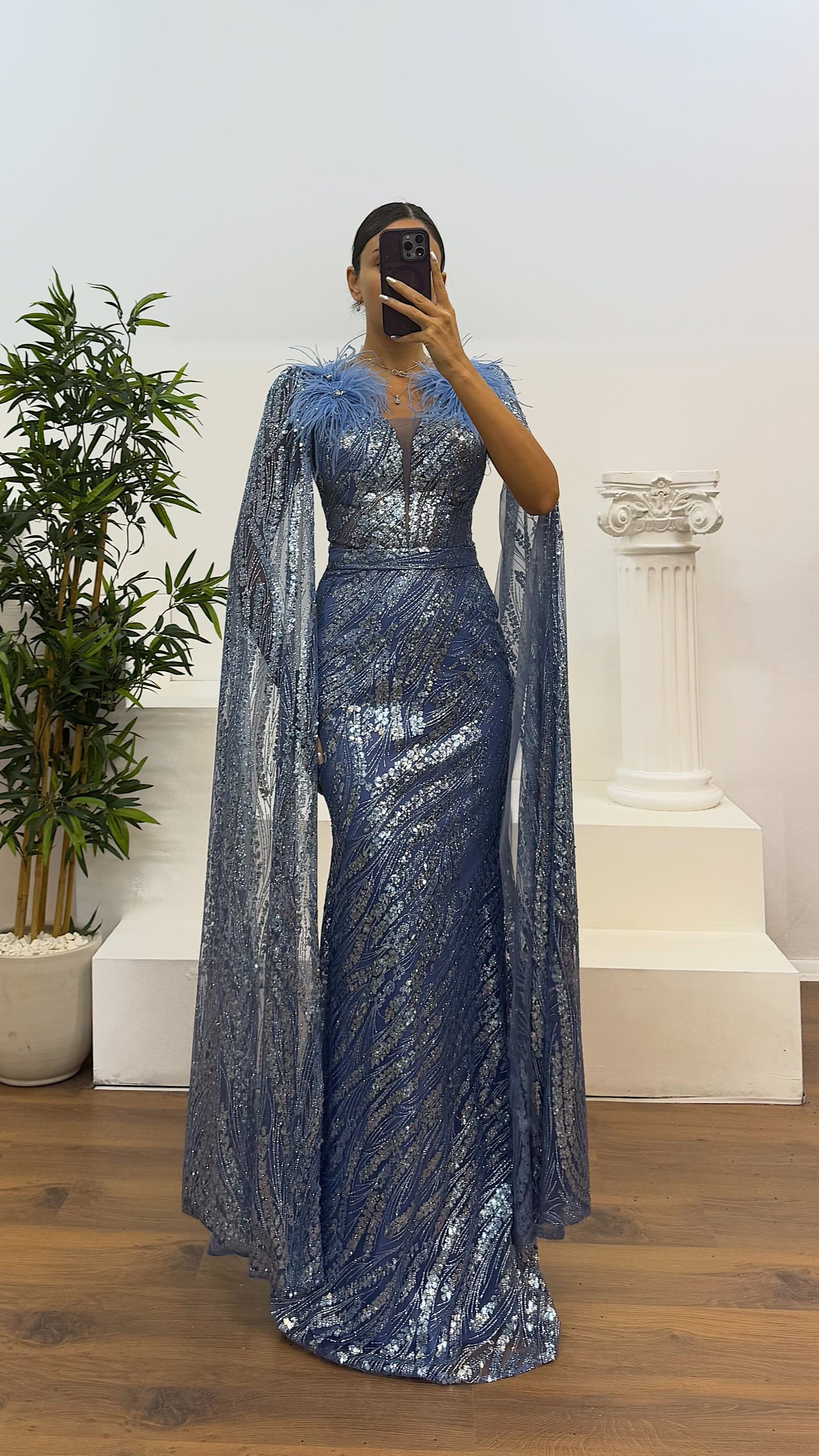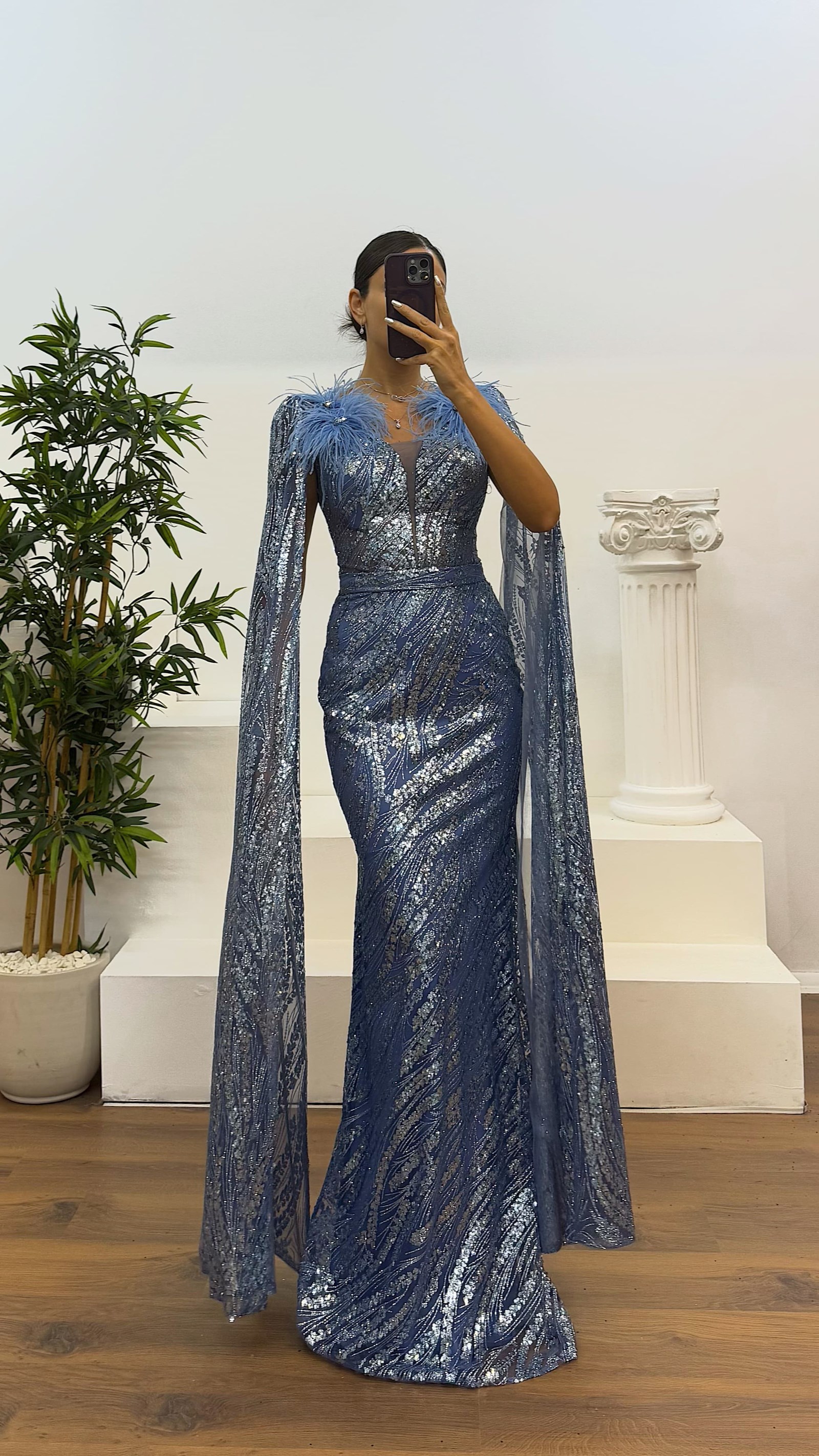 Ürün 36-42 bedene kadar uyumlu, göğüs pedli, astarlı, arka kapama fermuar, pullu abiye olarak tasarlanmıştır.