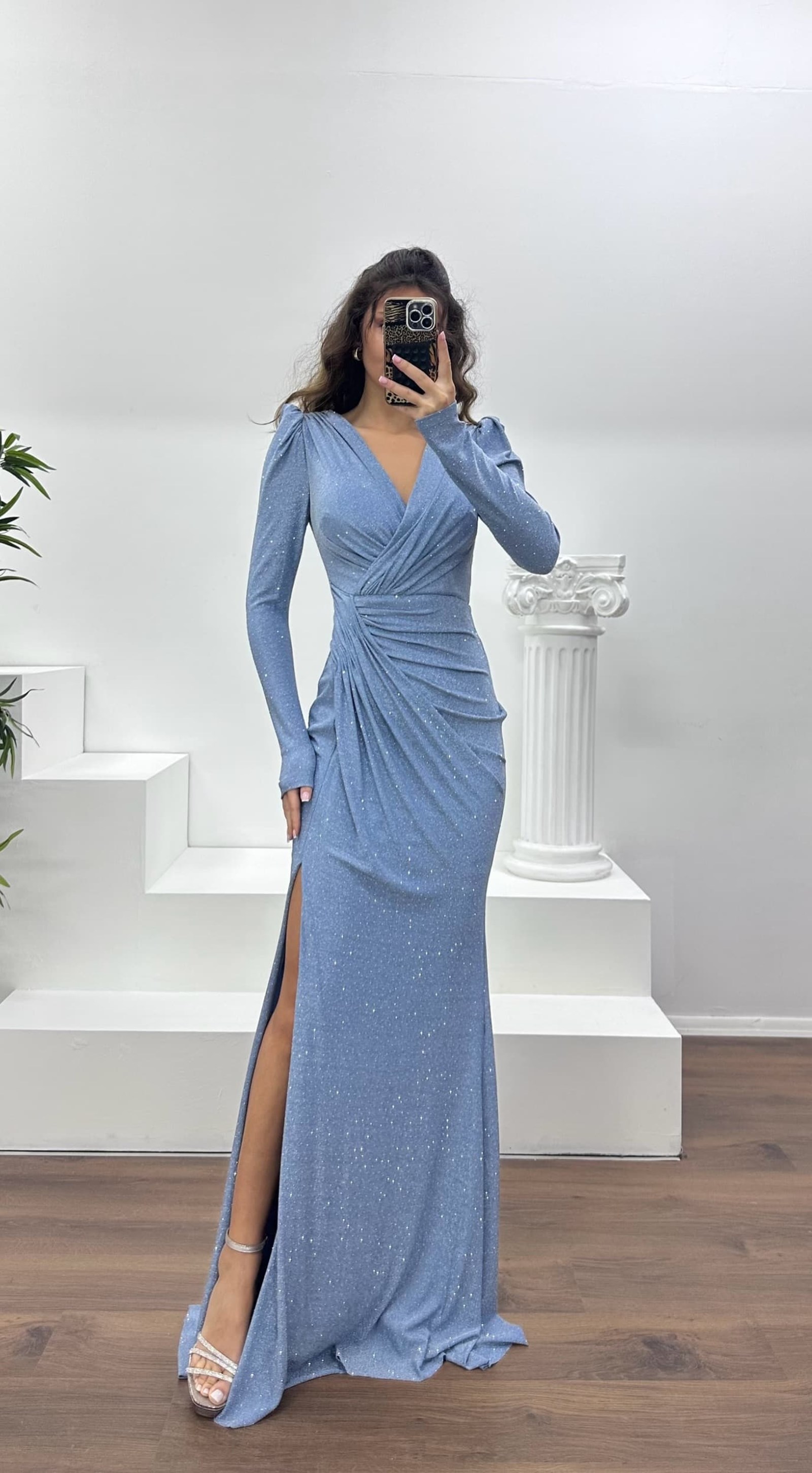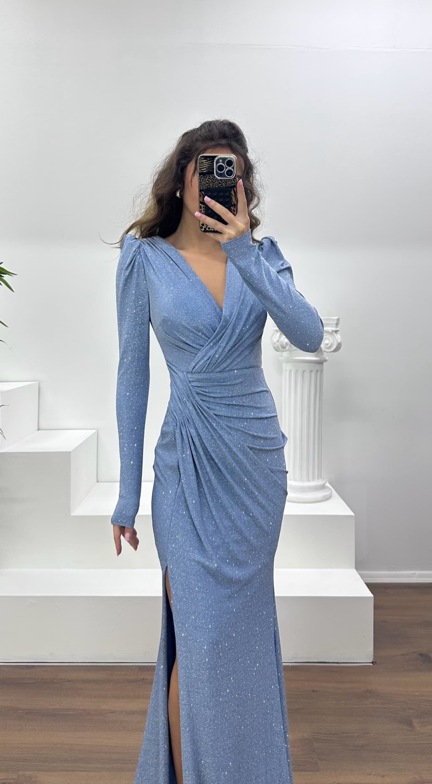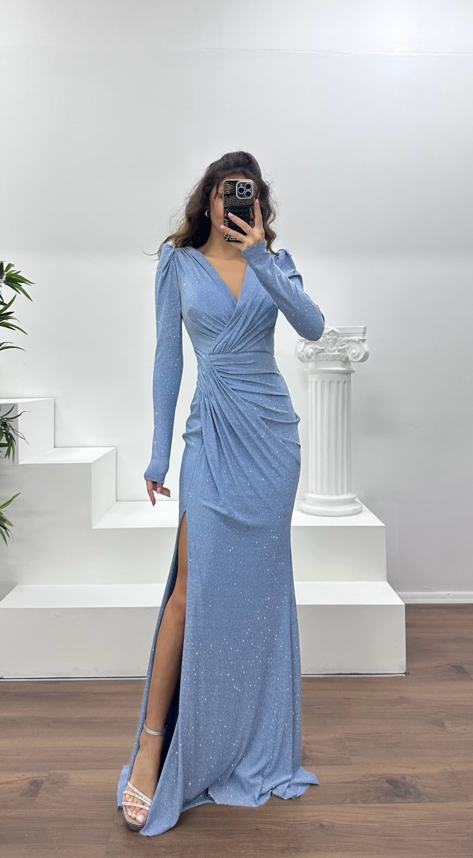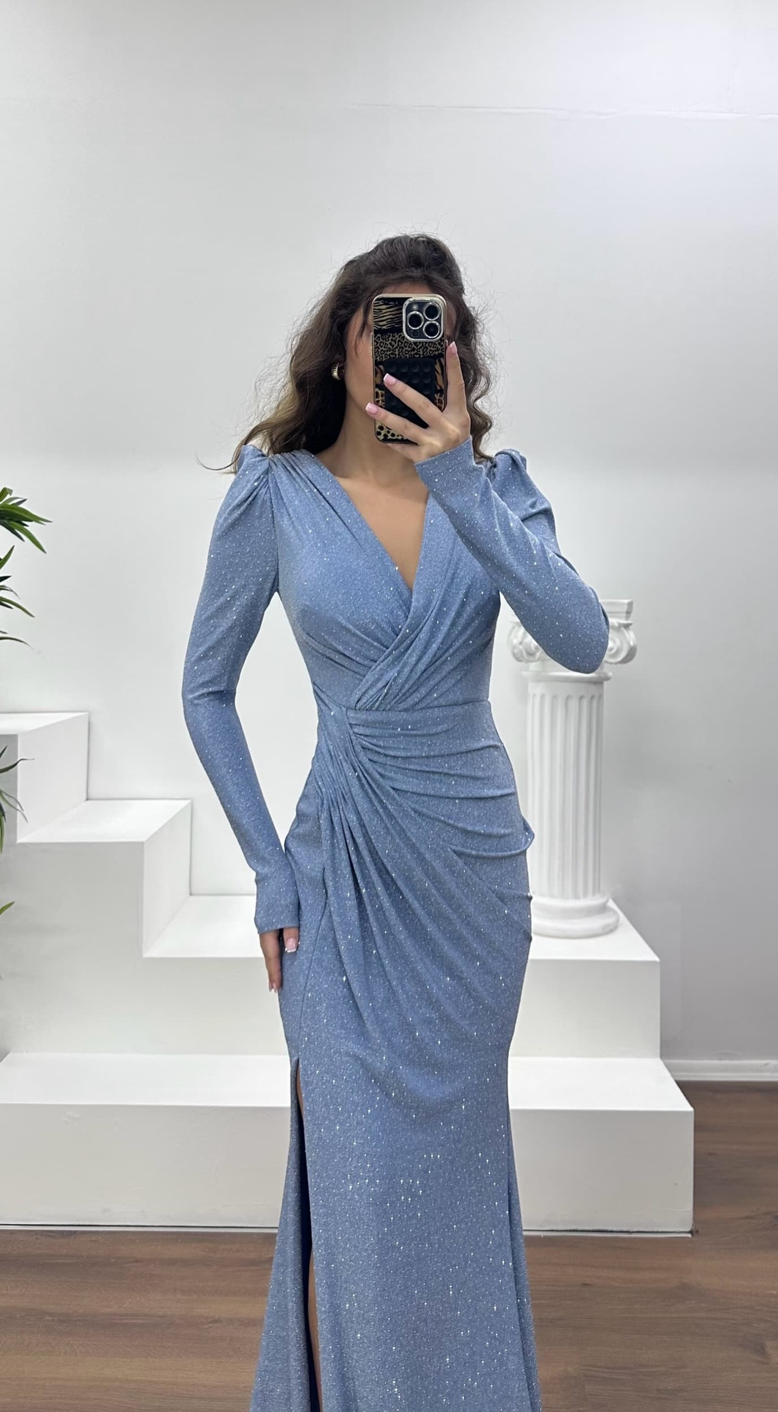 Ürün 36-44 bedene kadar uyumludur. göğüs pedli, astarlı, arka kapama fermuar, yırtmaçlı, drapeli abiye olarak tasarlanmıştır.