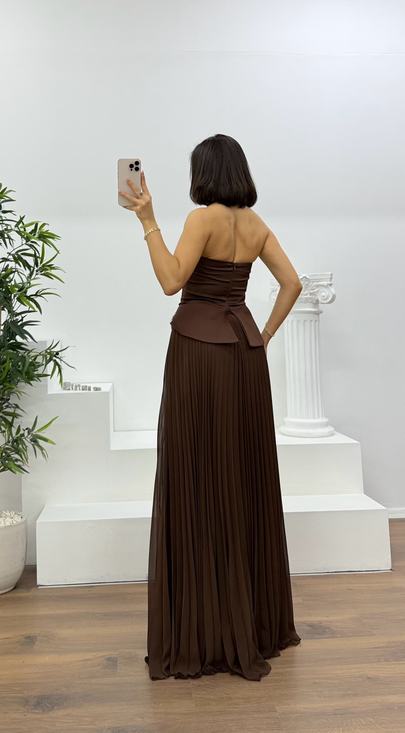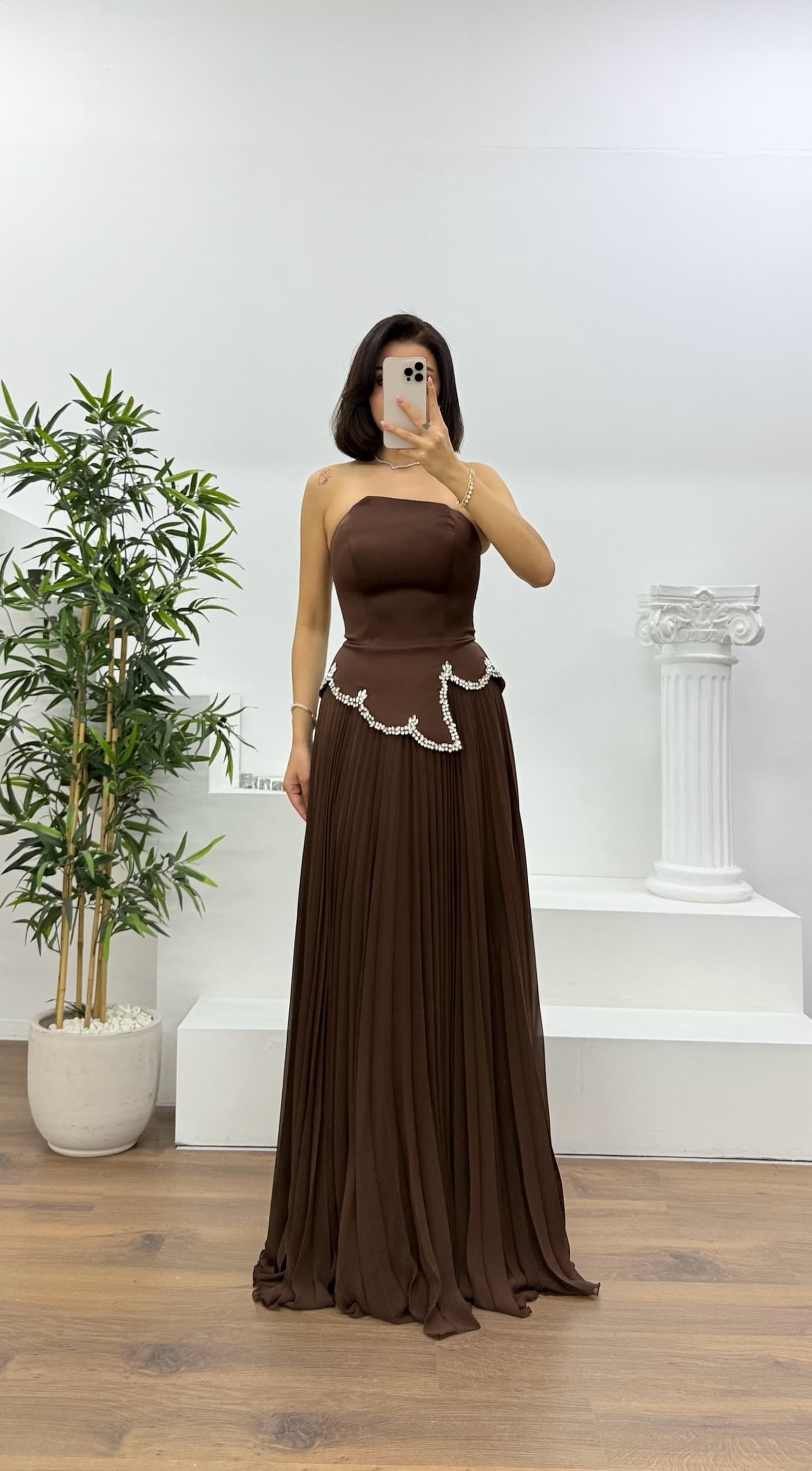 Piliseli taş detaylı abiye elbise