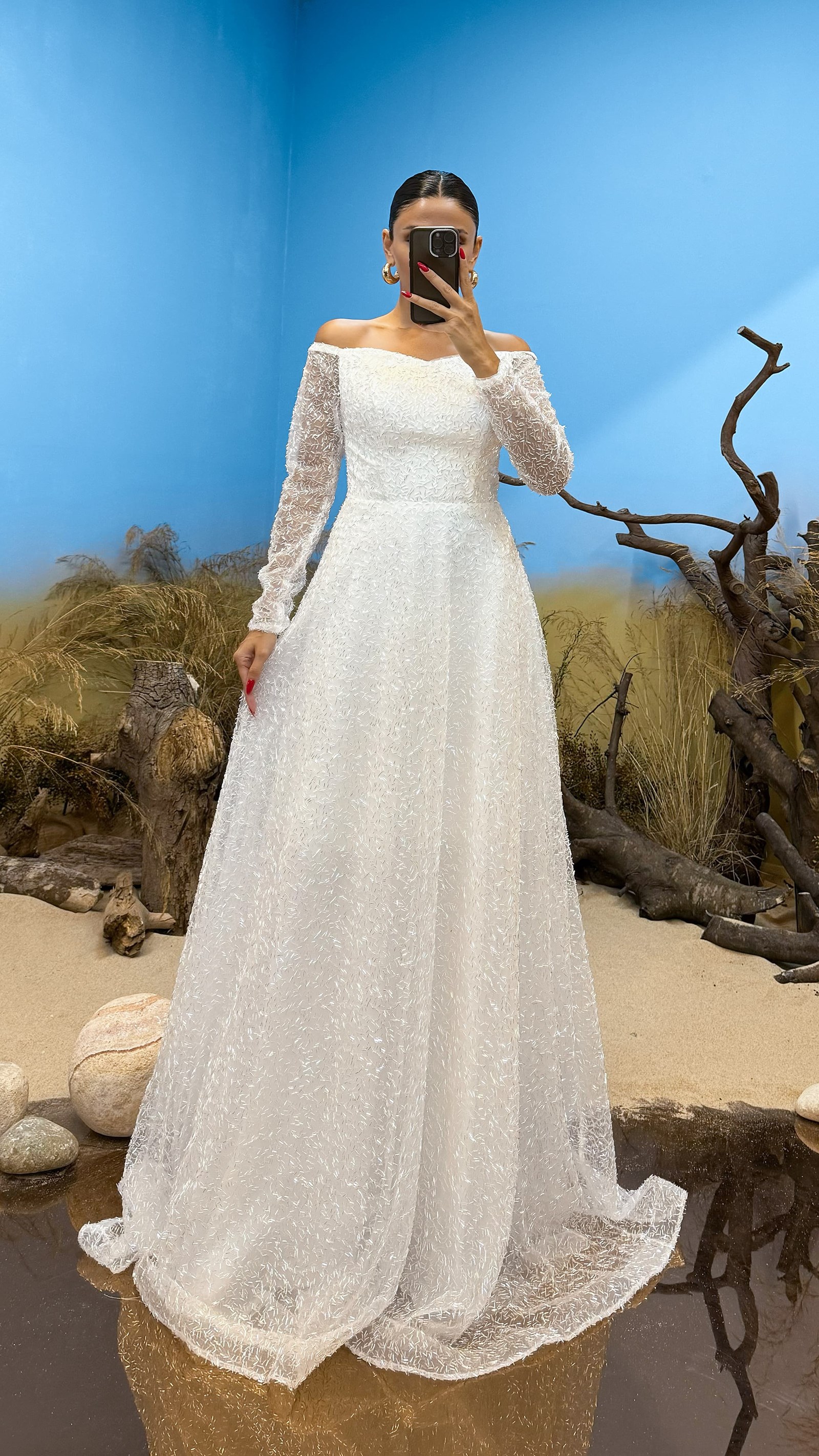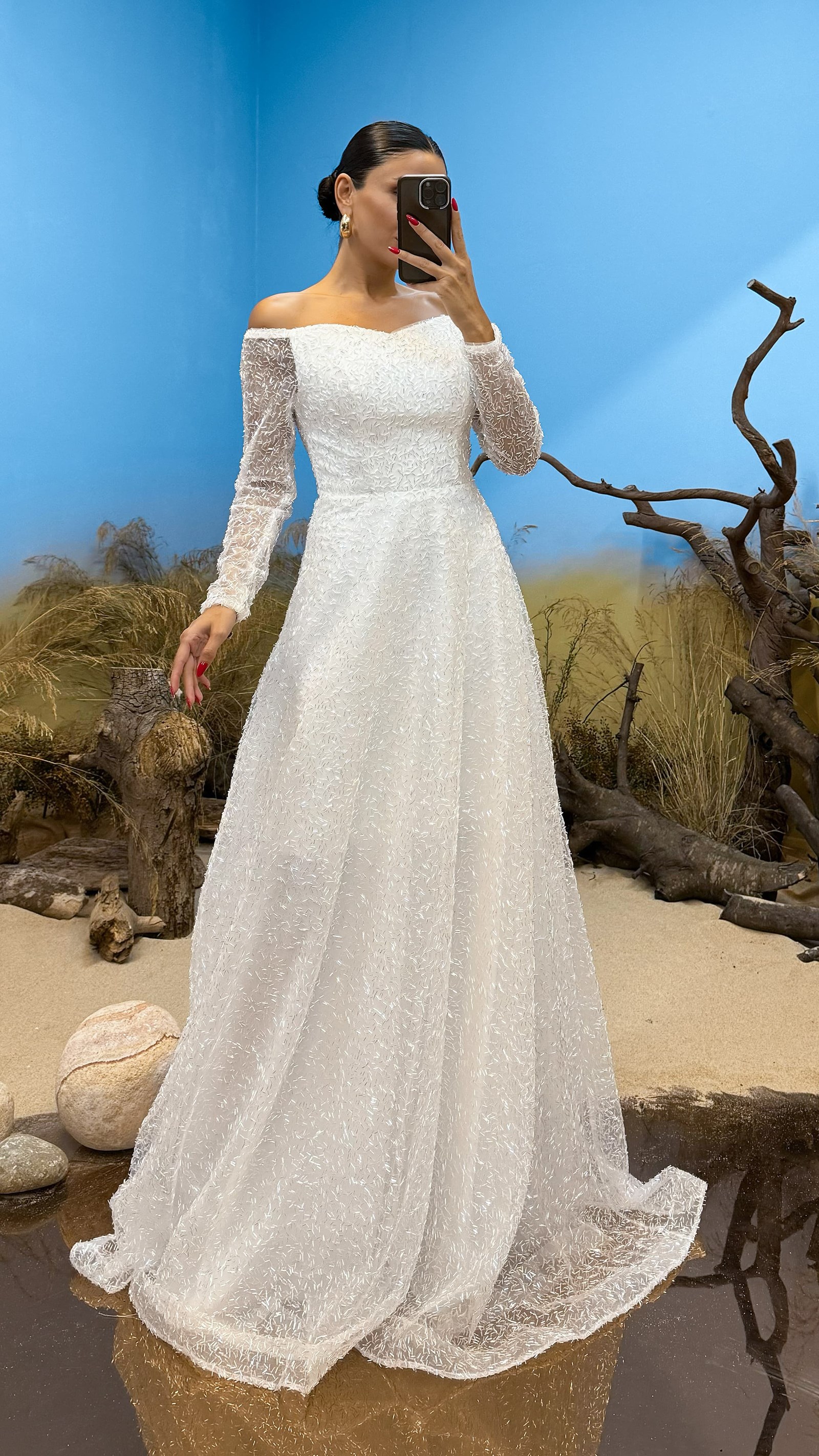 • Kemik Boru Boncuk İşlemeli Tasarım Abiye Elbise