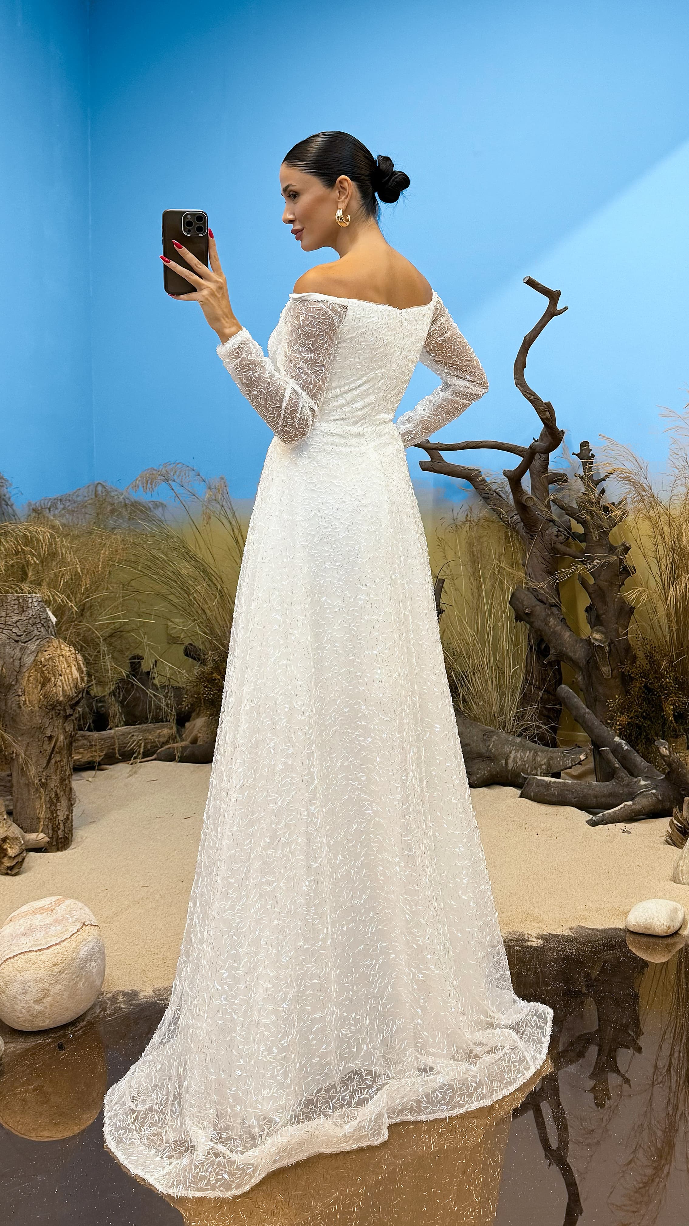 Kemik Boru Boncuk İşlemeli Tasarım Abiye Elbise