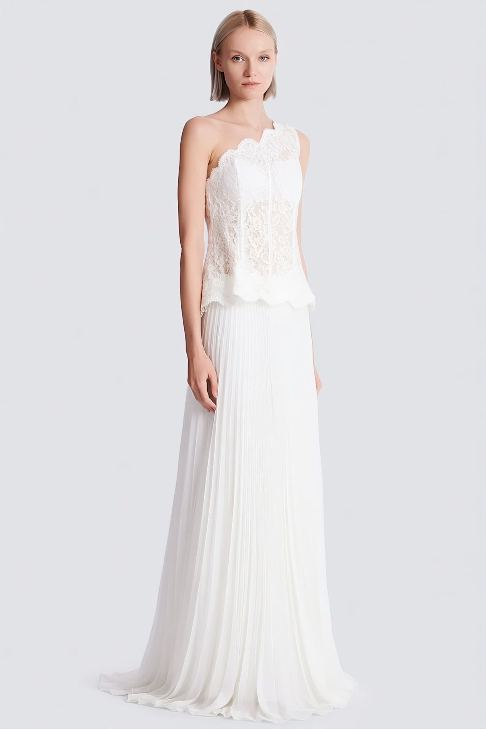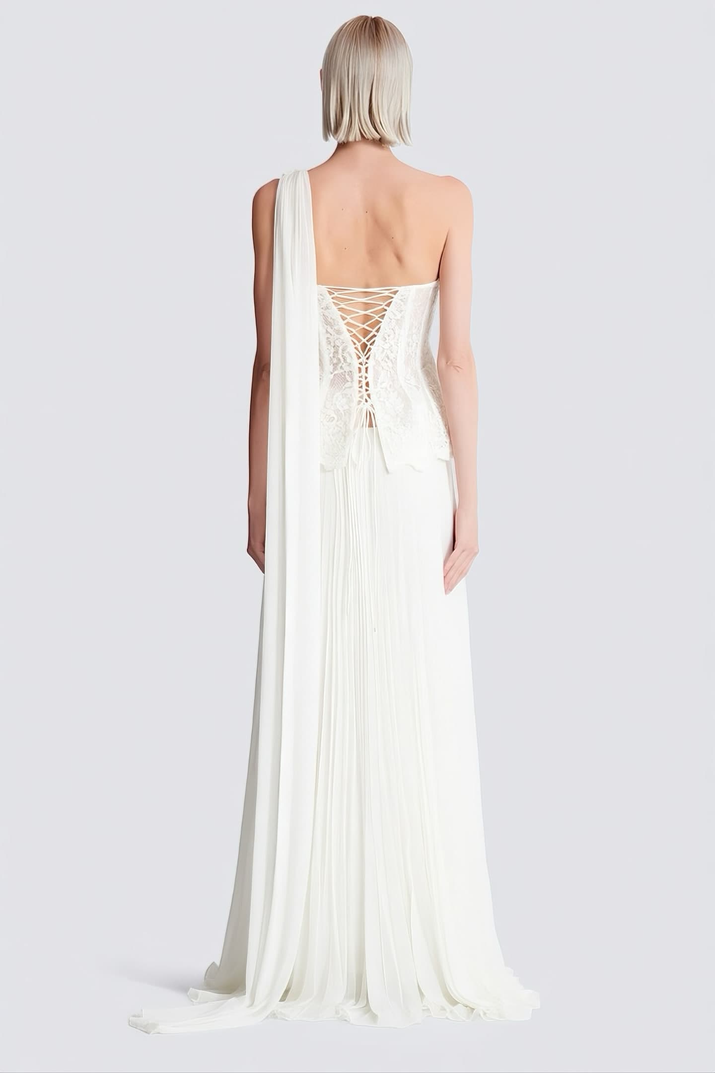 Kemik İşlemeli Korse Üstlü Pileli Şifon Abiye Elbise