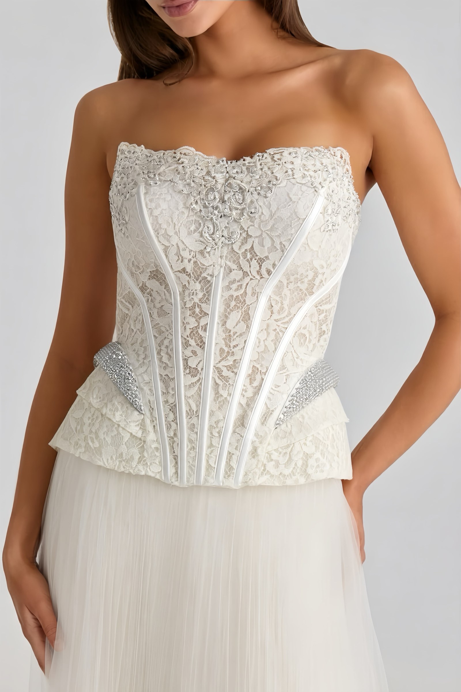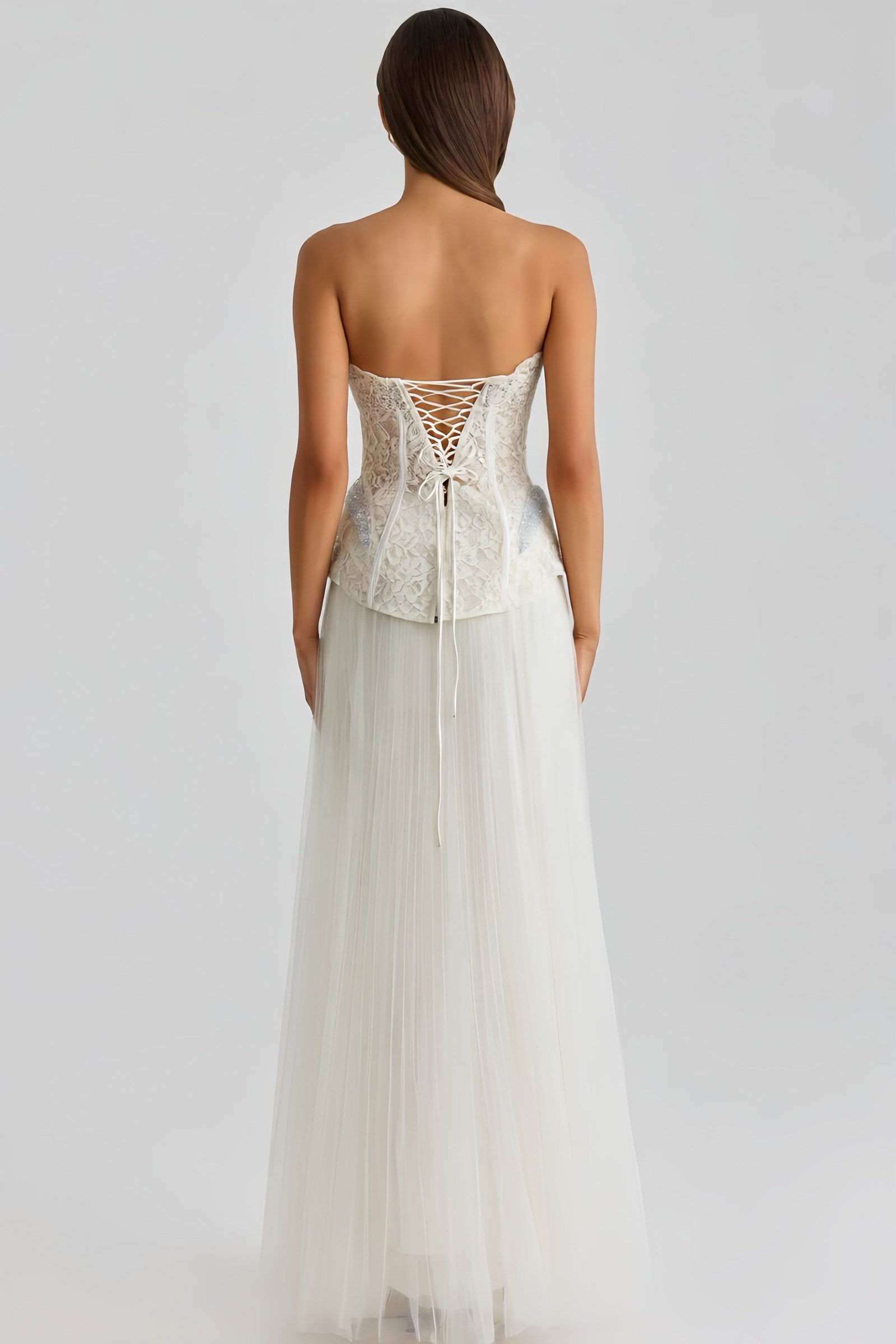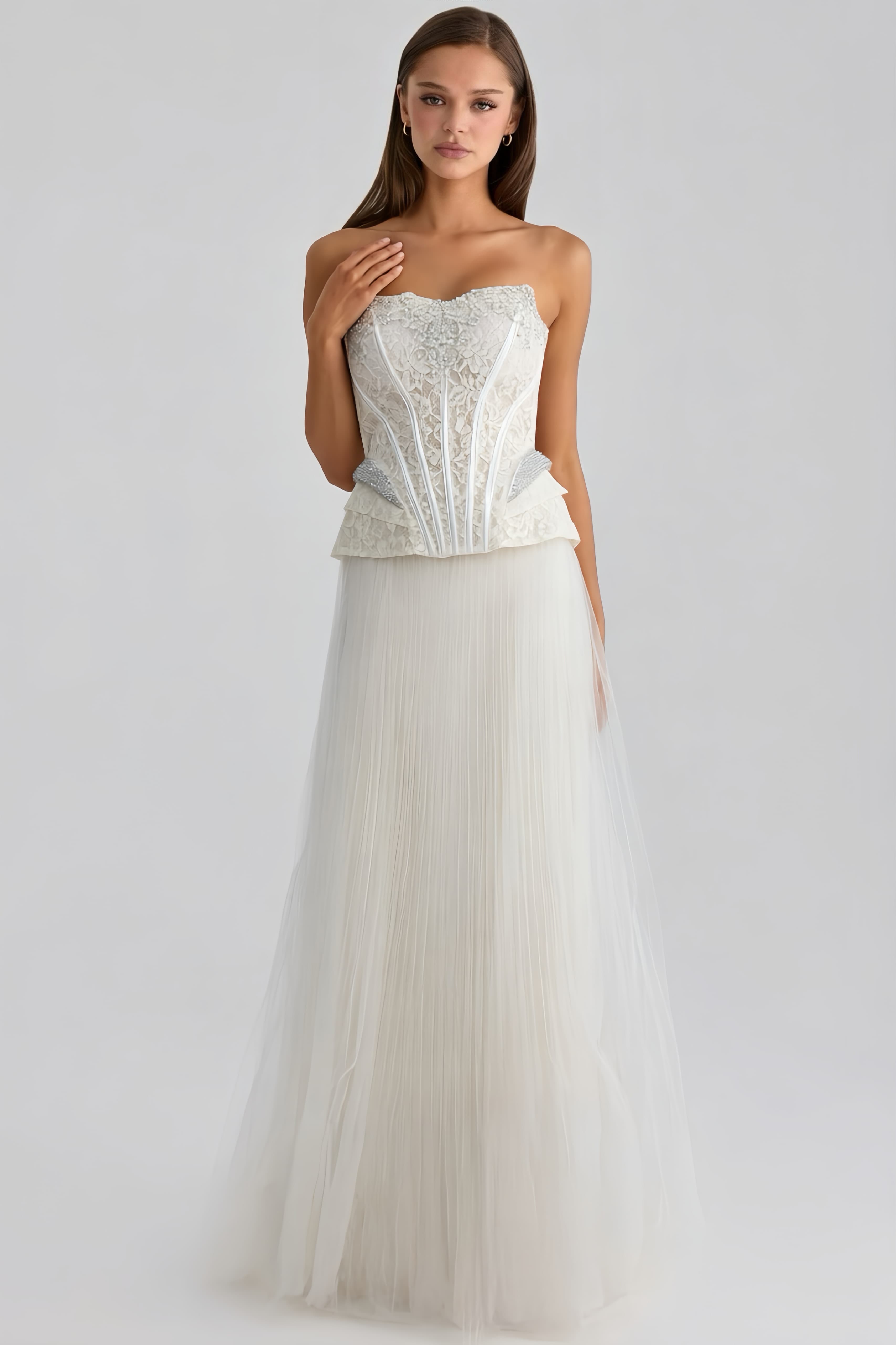 • Kemik Pilise Tül Etekli Abiye Elbise