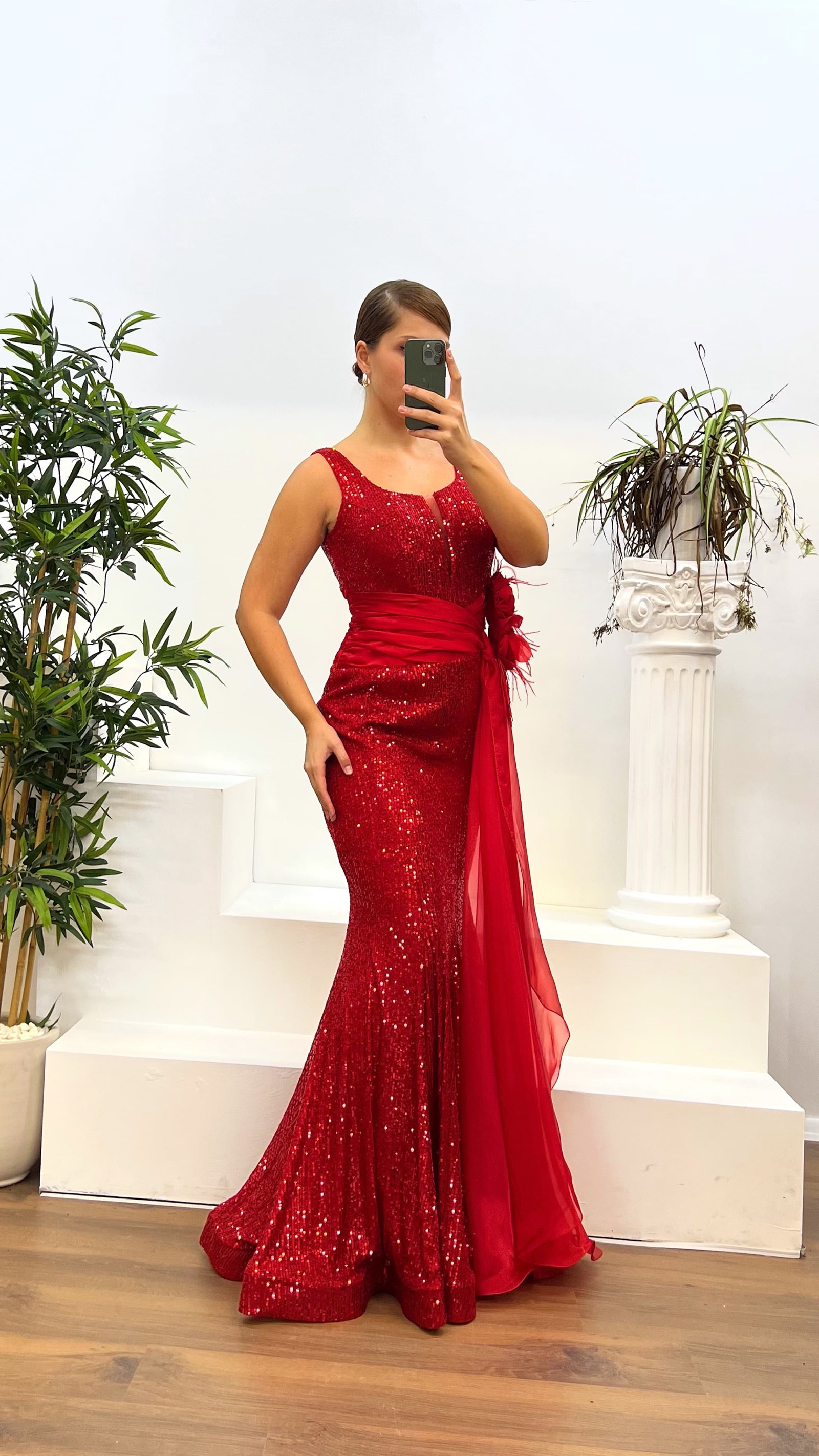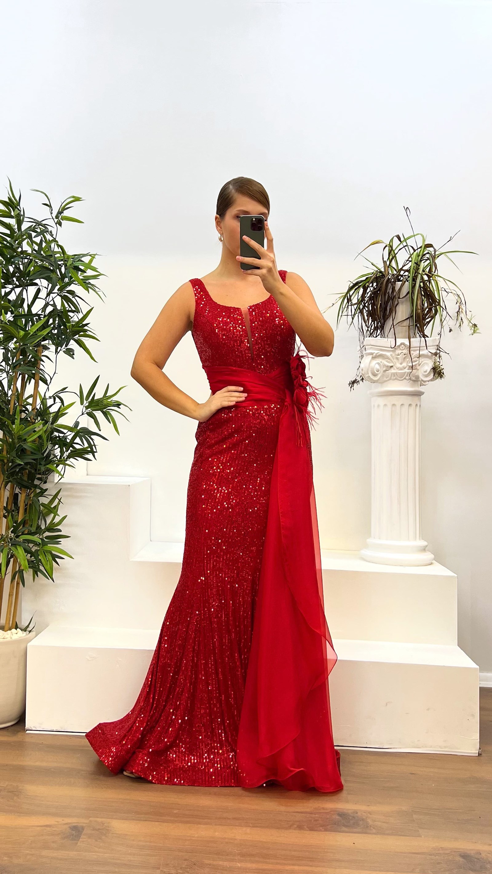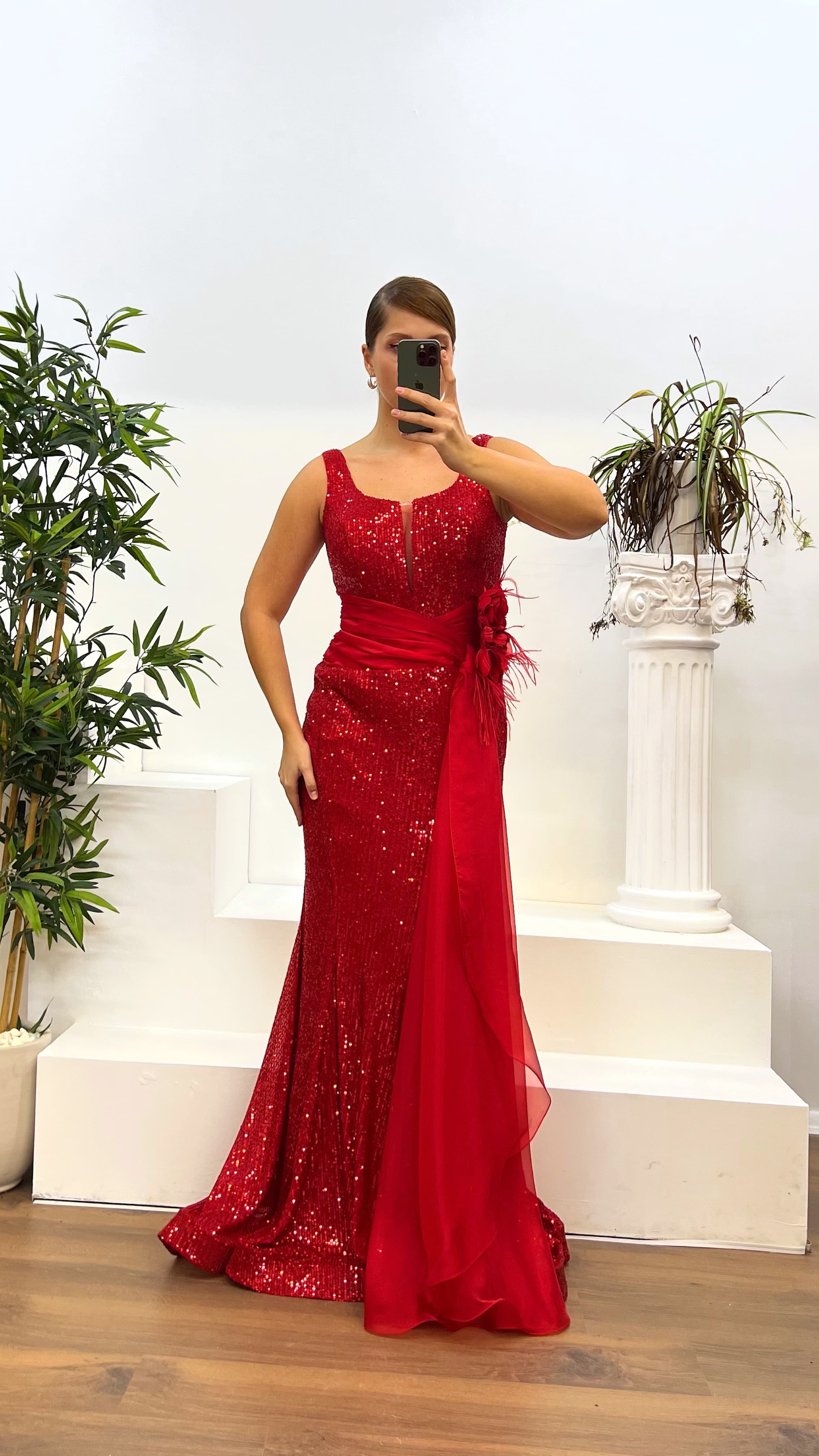 Bel detay pul payet abiye elbise