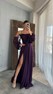 • Mürdüm İp Askılı Balon Bel Detay Tasarım Şifon Elbise