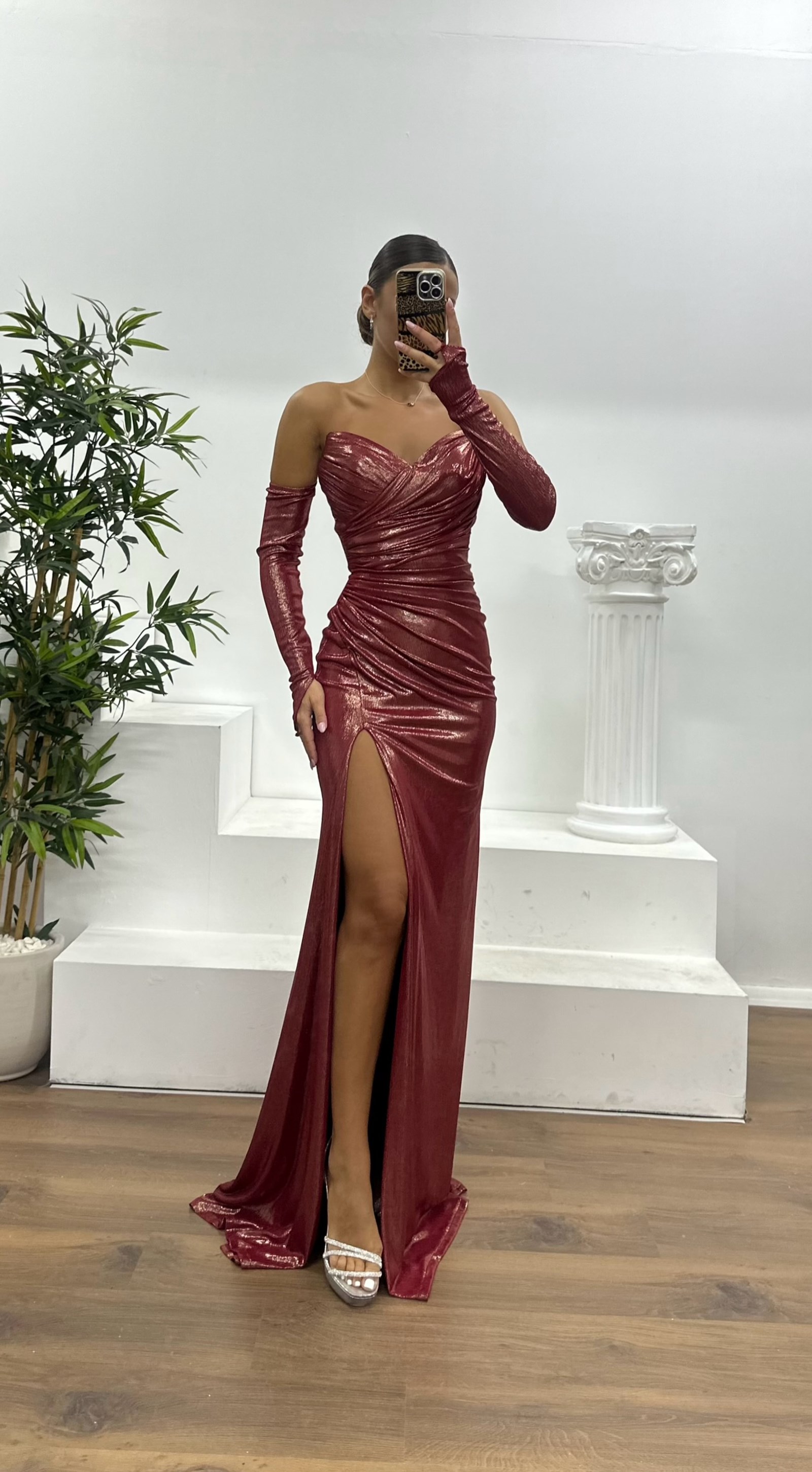 Straplez eldivenli abiye elbise
