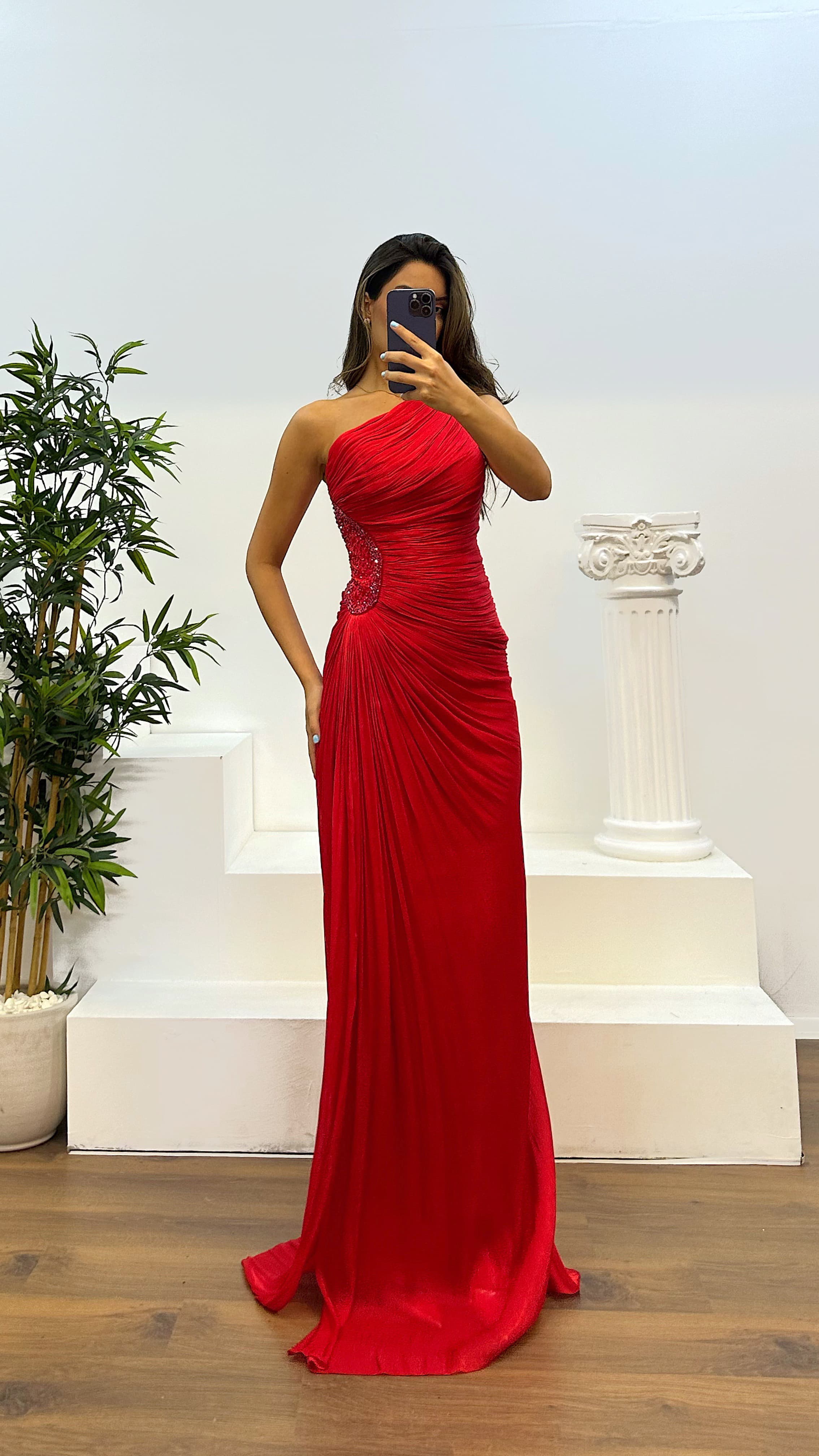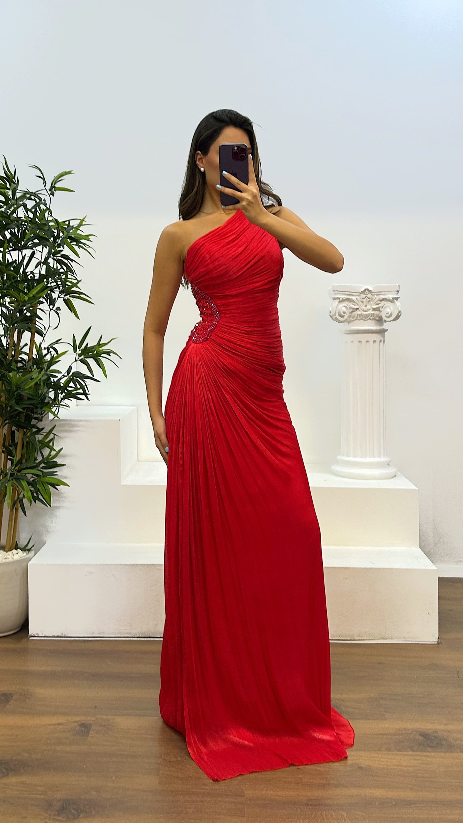 Ürün 36-44 bedene kadar uyumlu, göğüs pedli, astarlı, arka kapama fermuar, yırtmaçlı, bel işlemeli abiye olarak tasarlanmıştır.