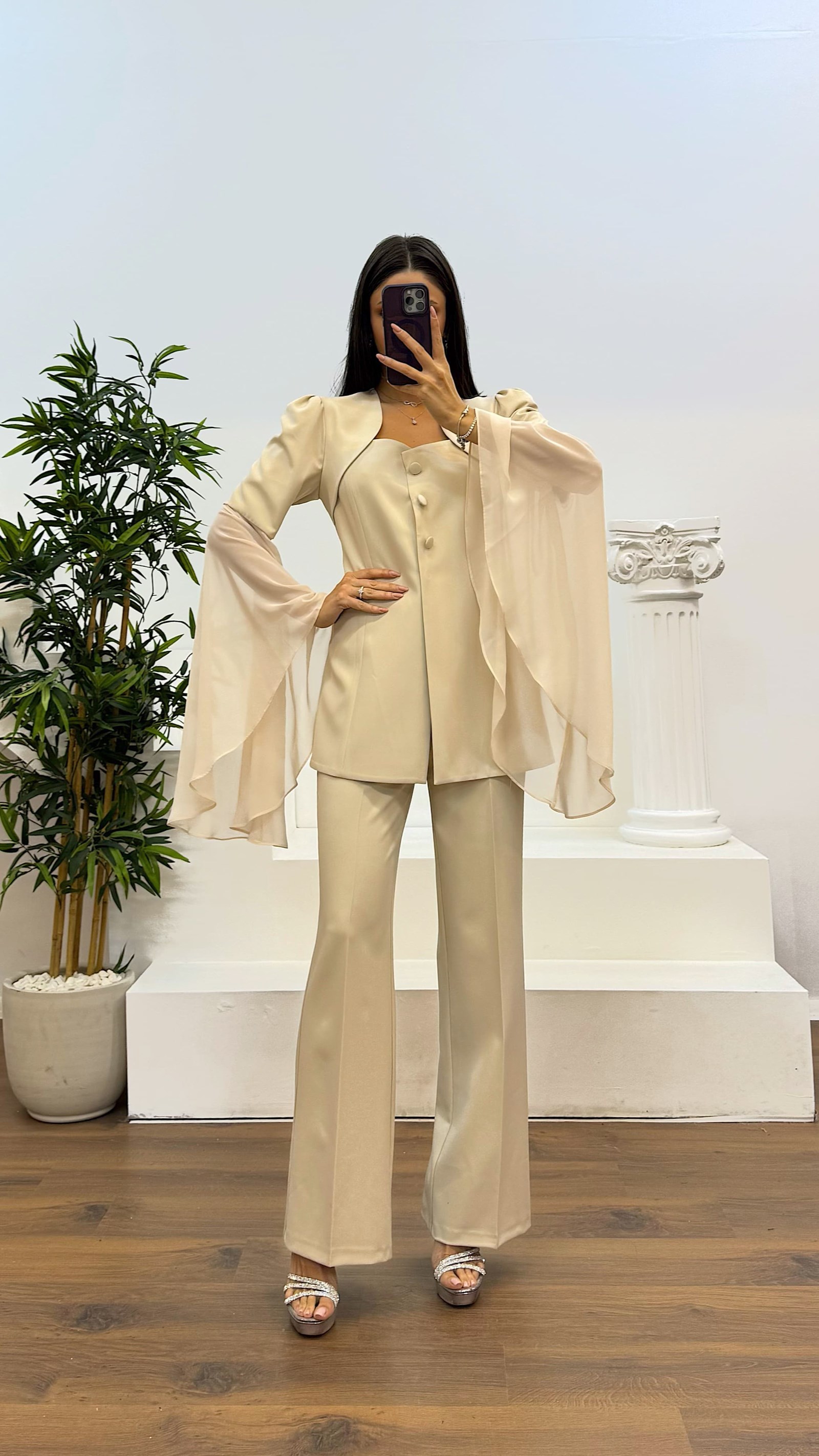 Kol şifon detay abiye takım