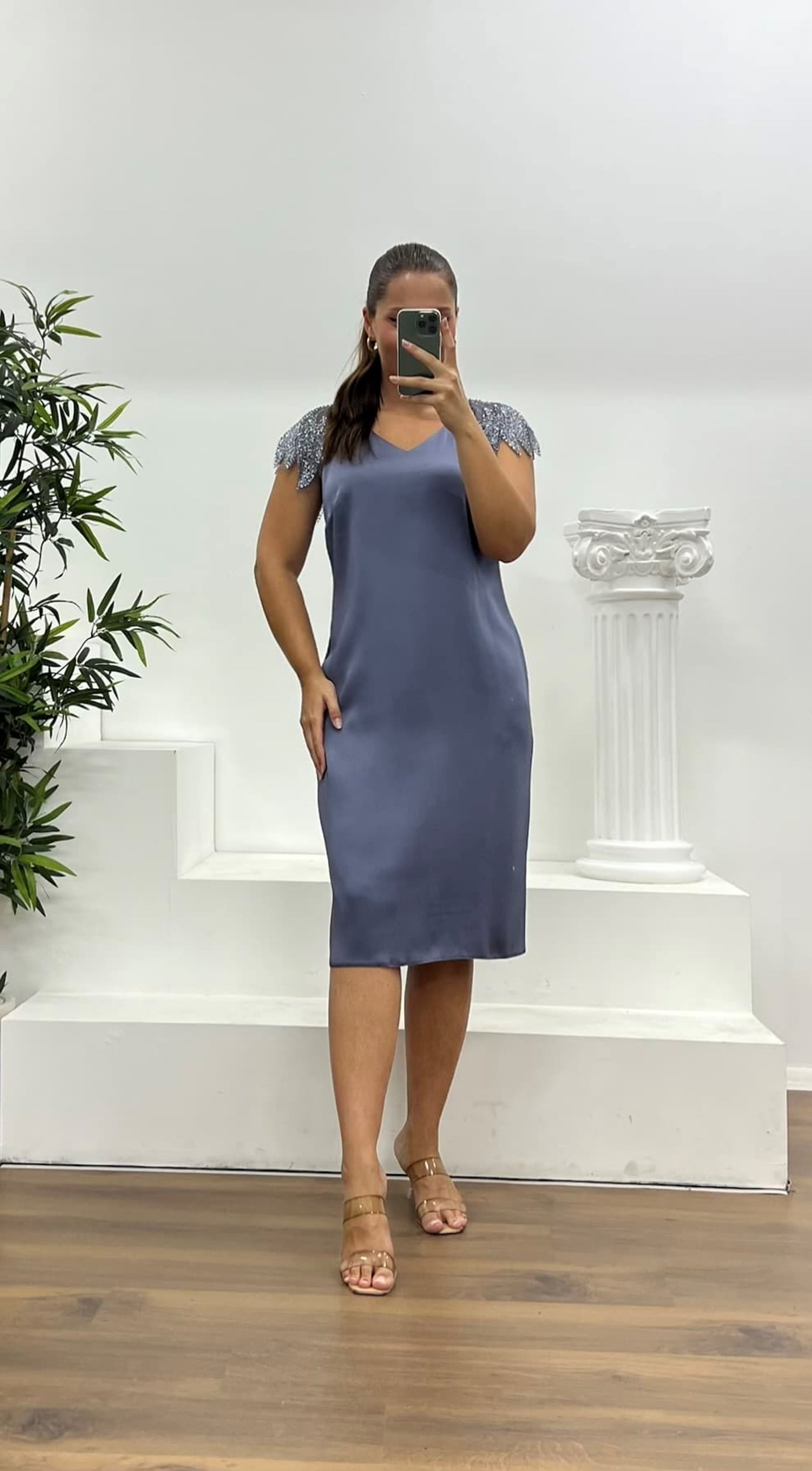 Ürün 42--48 bedene kadar uyumlu, göğüs pedli, astarlı, işlemeli abiye olarak tasarlanmıştır.