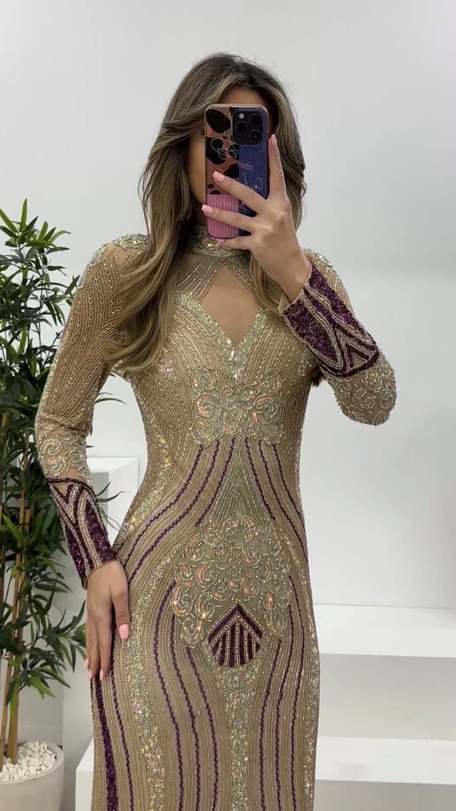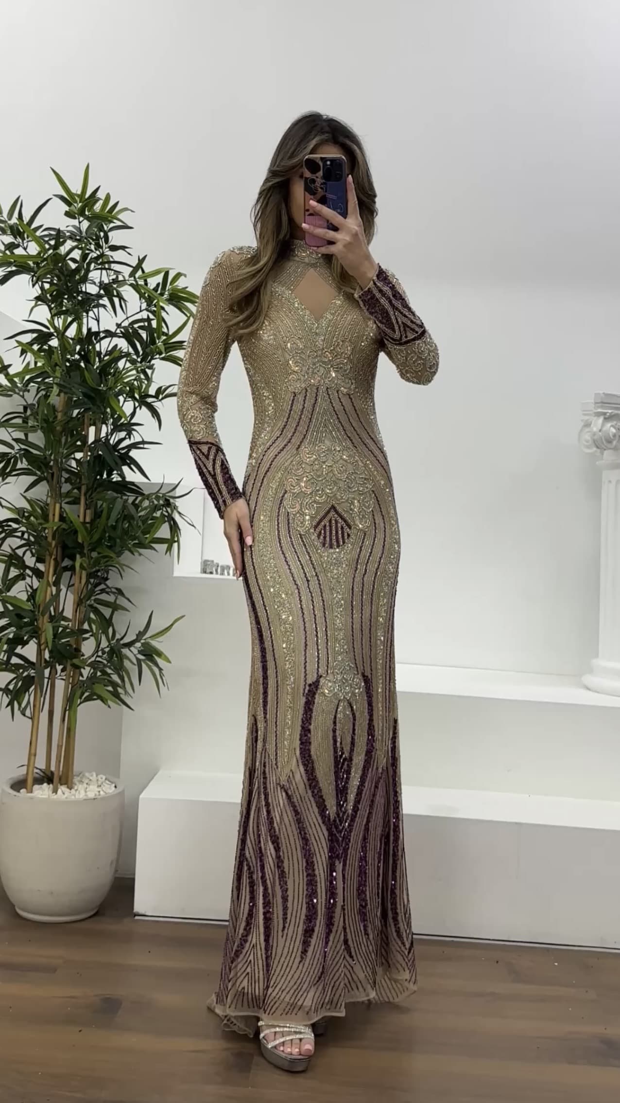Ürün 36-40 bedene kadar uyumludur. göğüs pedli, astarlı, arka kapama fermuar, uzun kollu, işlemeli abiye olarak tasarlanmıştır.