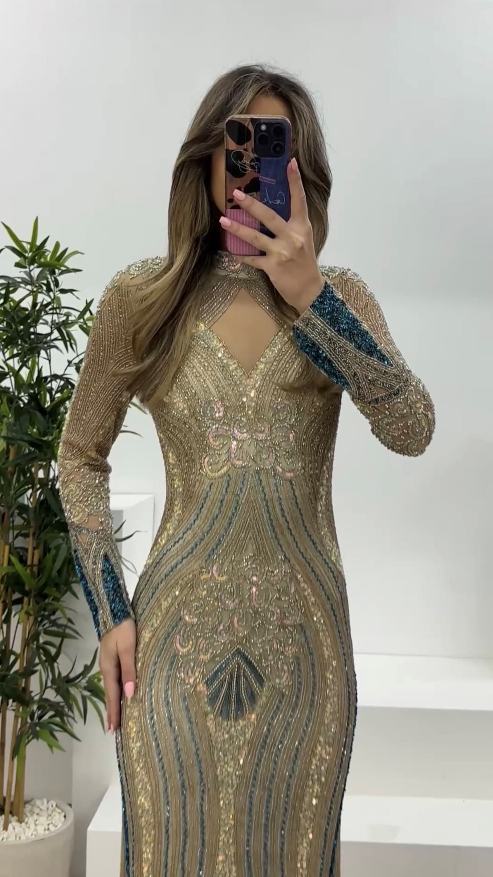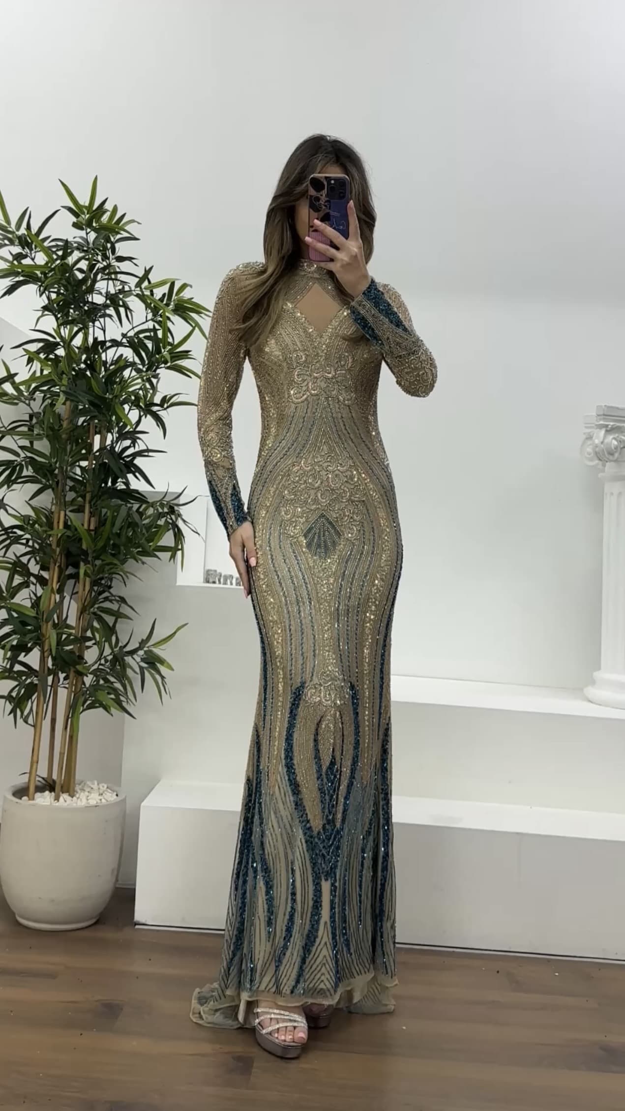 Ürün 36-40 bedene kadar uyumludur. göğüs pedli, astarlı, arka kapama fermuar, uzun kollu, işlemeli abiye olarak tasarlanmıştır.