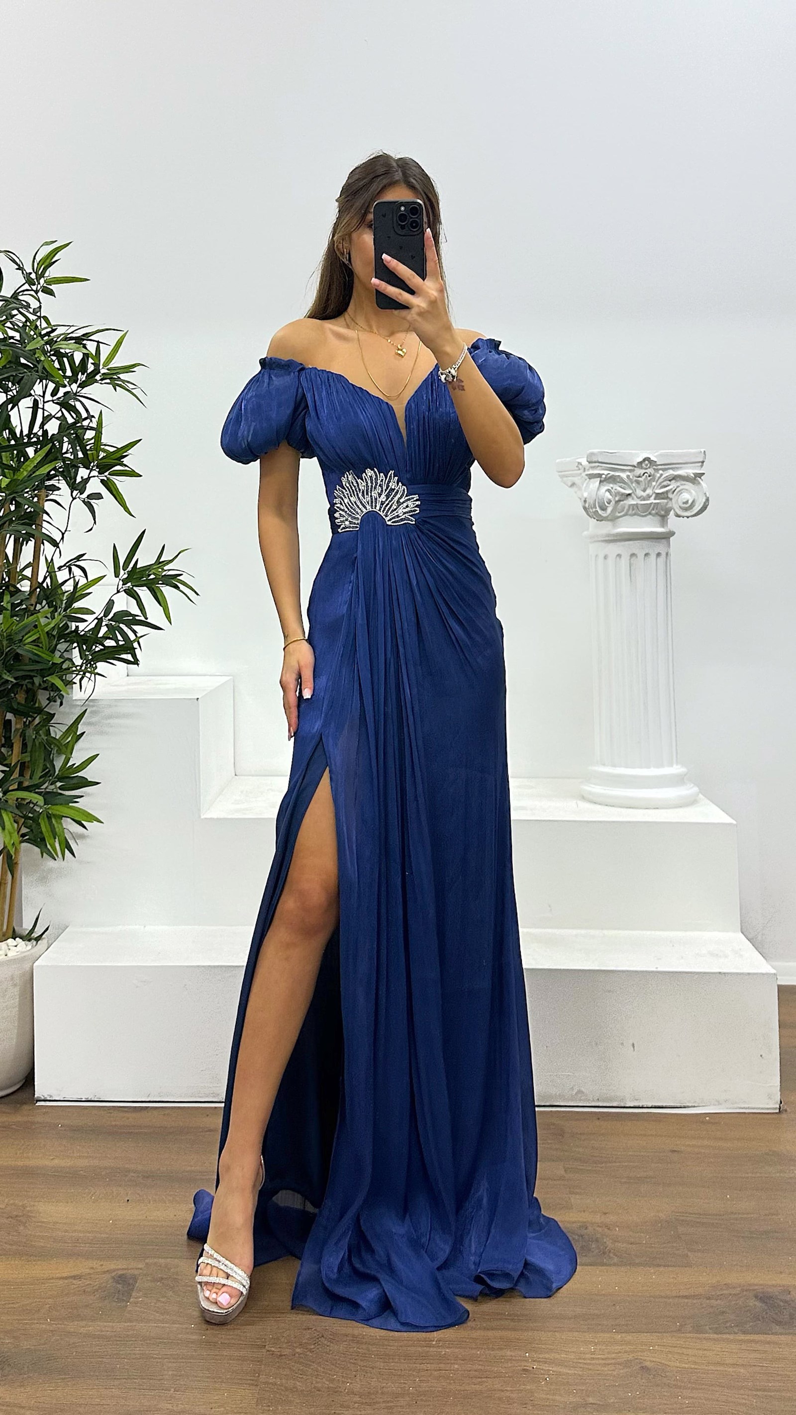Ürün 36-42 bedene kadar uyumlu, göğüs pedli, astarlı, arka kapama fermuar, yırtmaçlı, taş detay abiye olarak tasarlanmıştır.