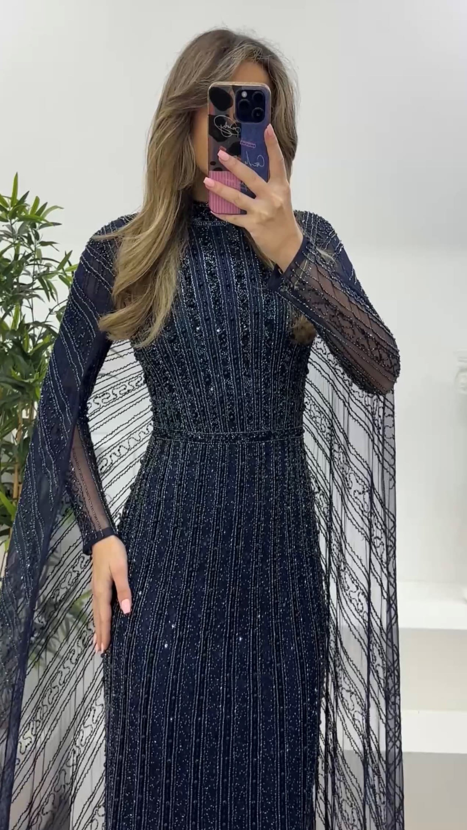 Ürün 36-40 bedene kadar uyumludur. göğüs pedli, astarlı, fermuarlı, uzun kollu, pelerinli, işlemeli abiye olarak tasarlanmıştır.