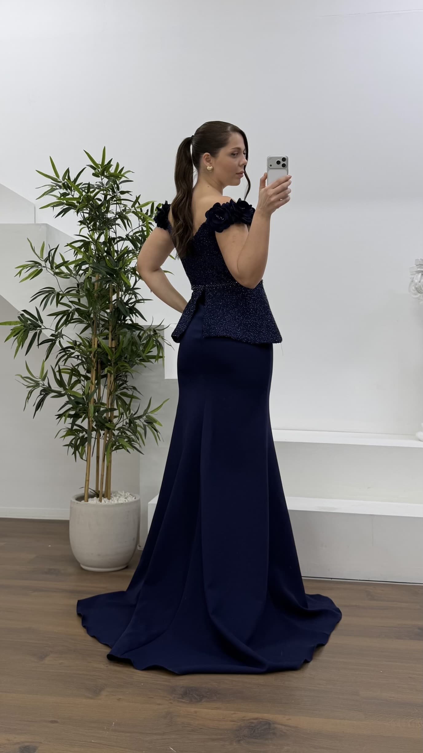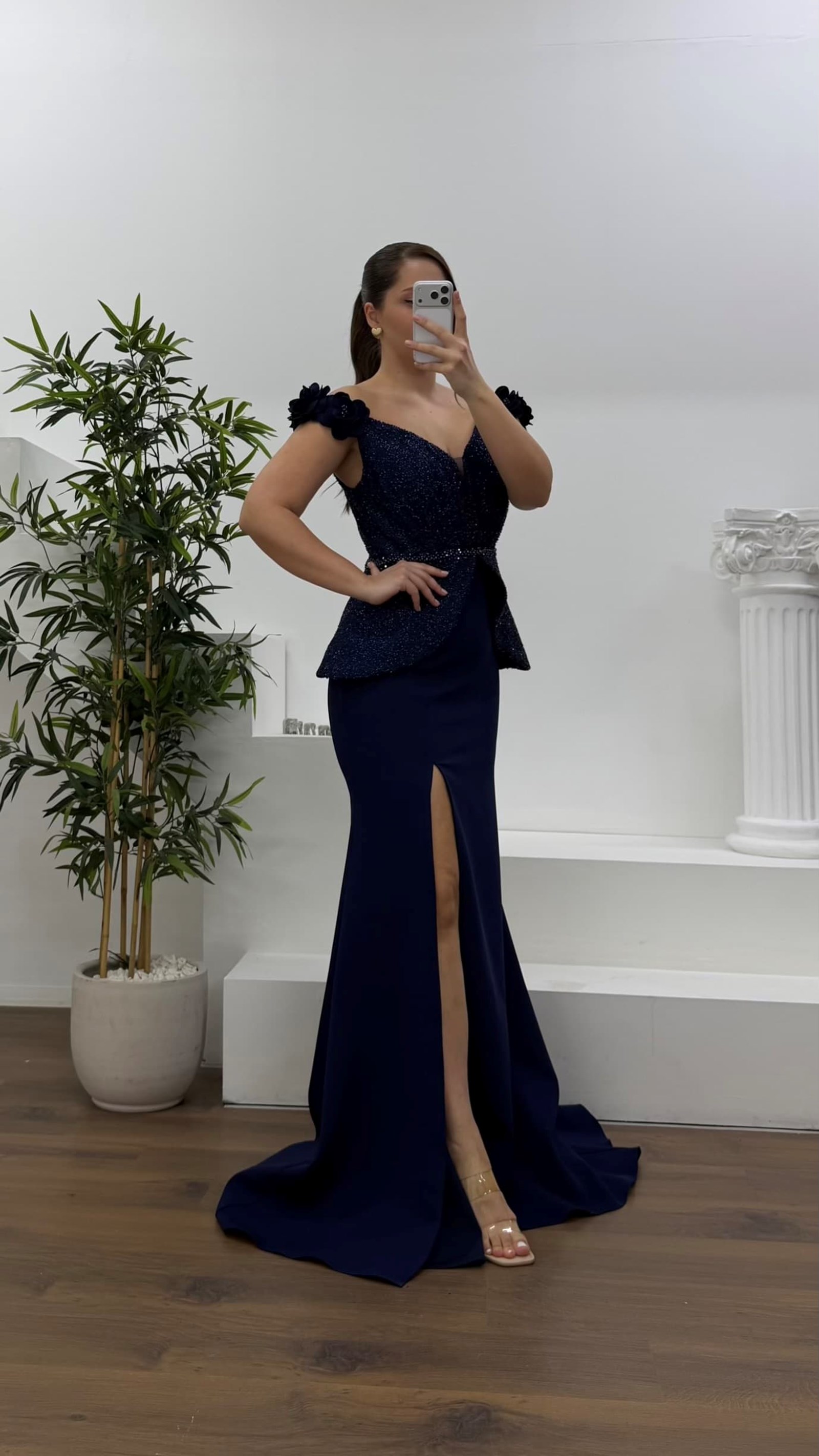 Çiçek askılı peplum kesim abiye elbise