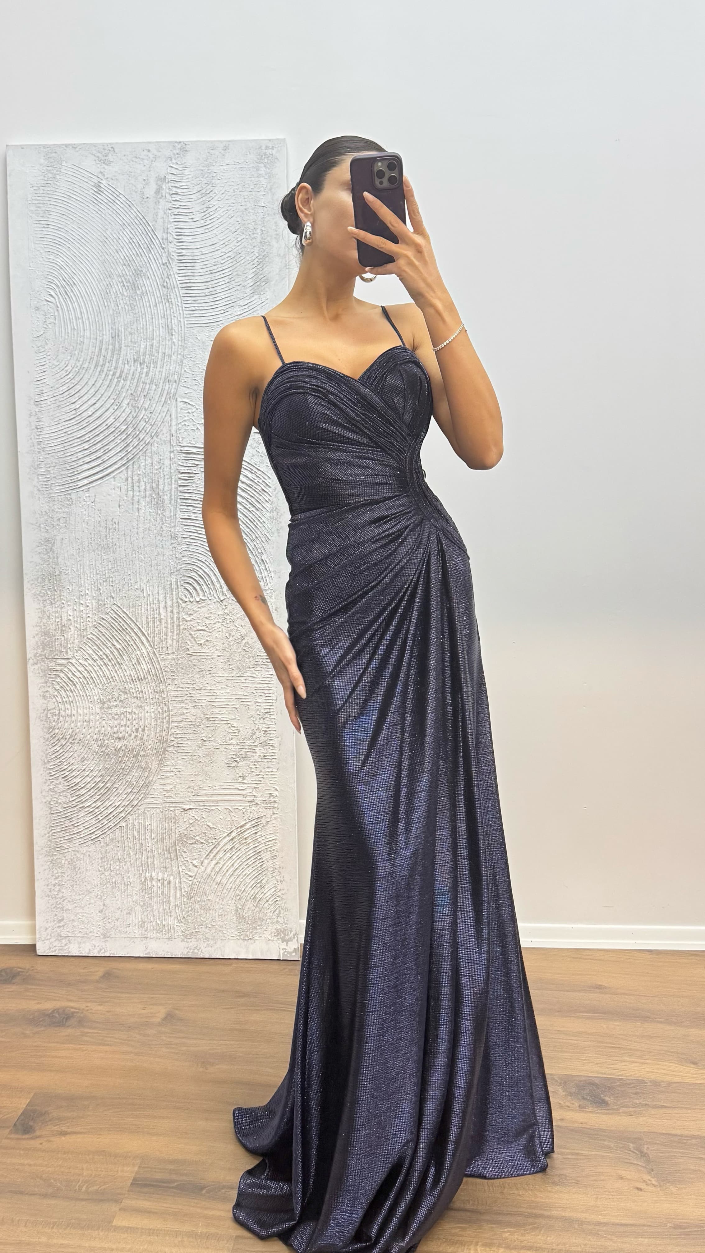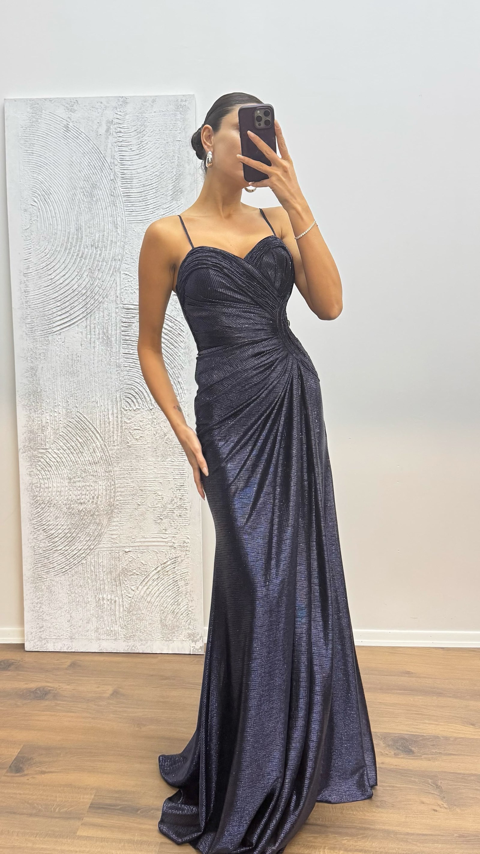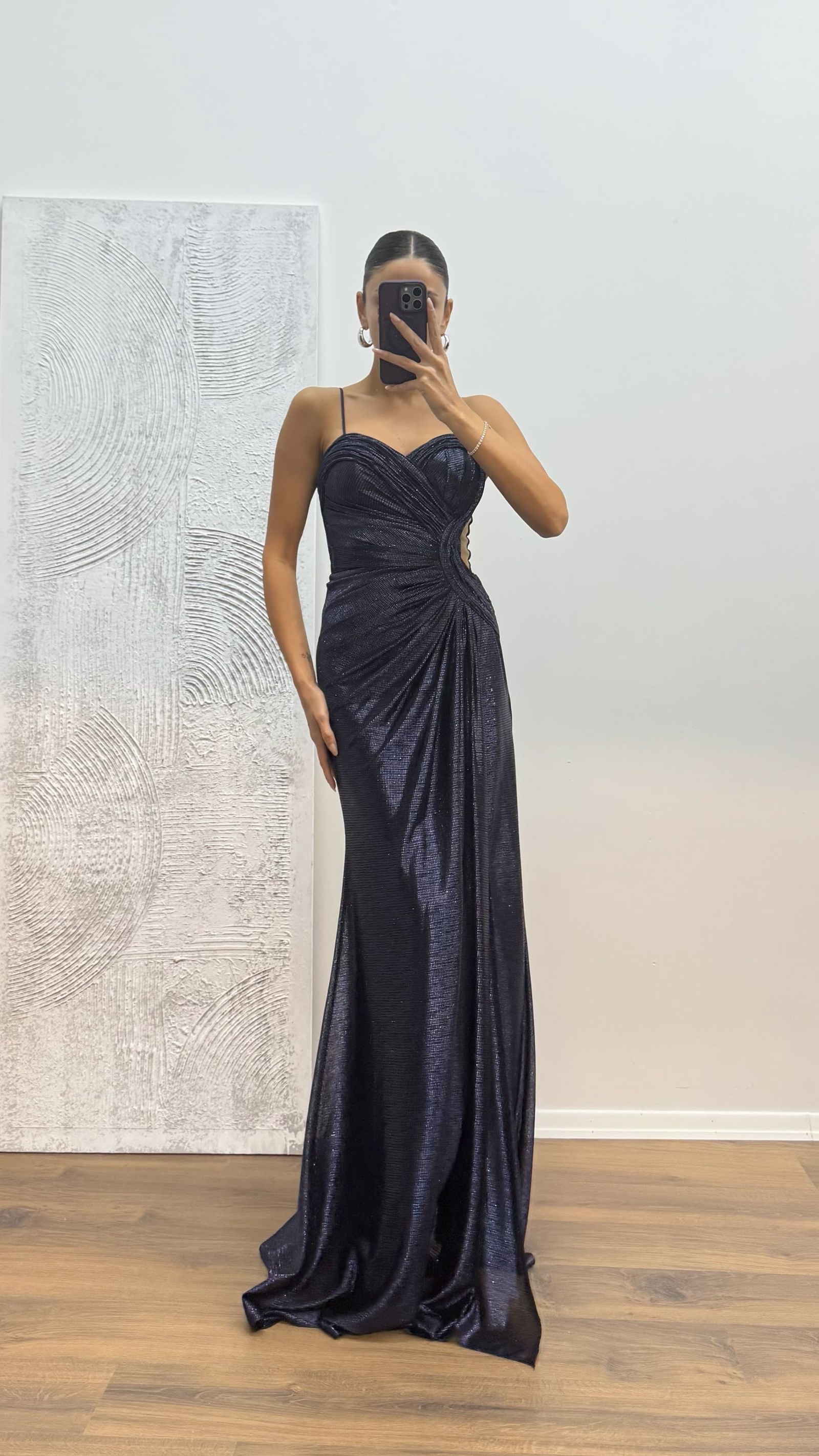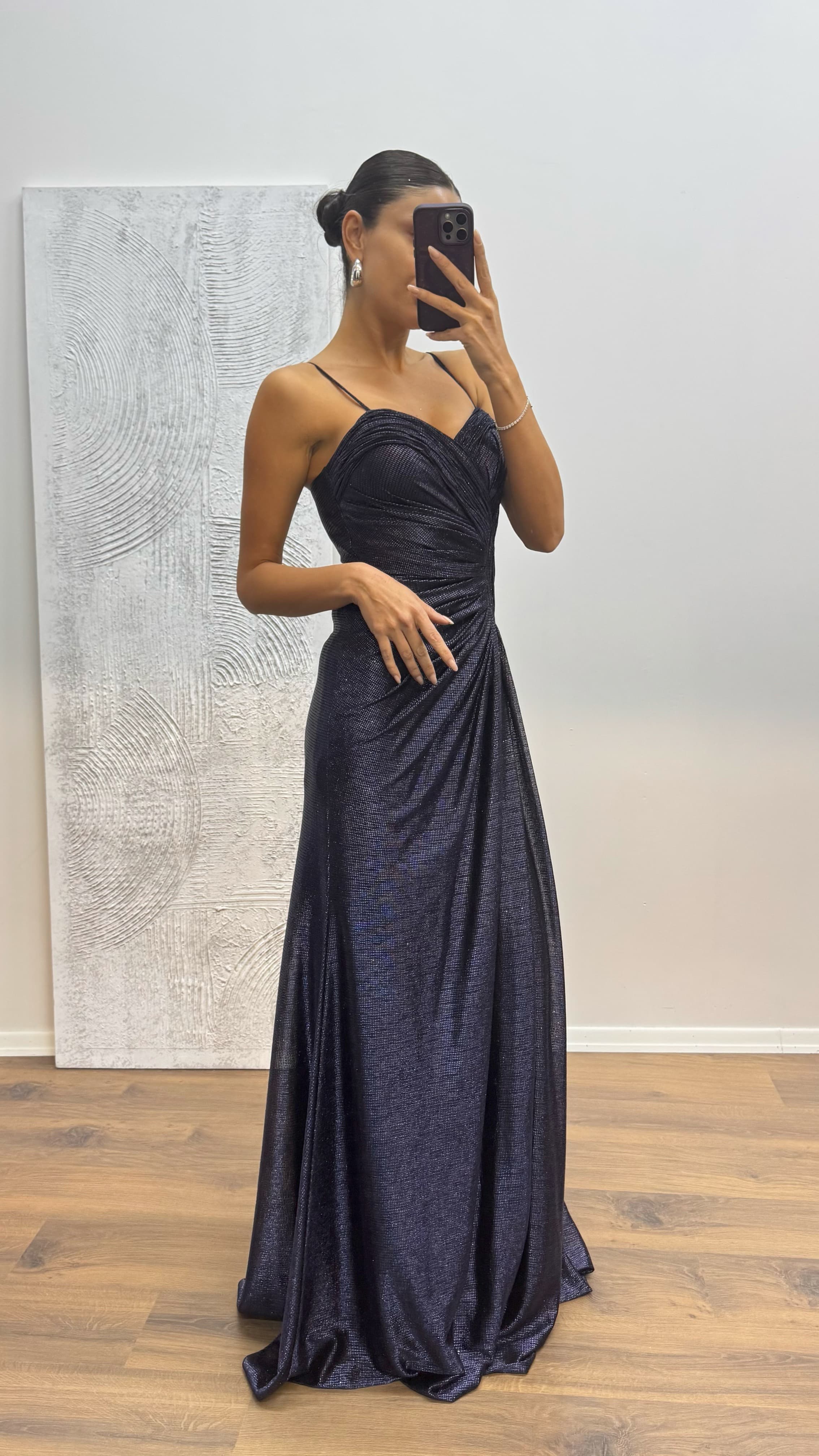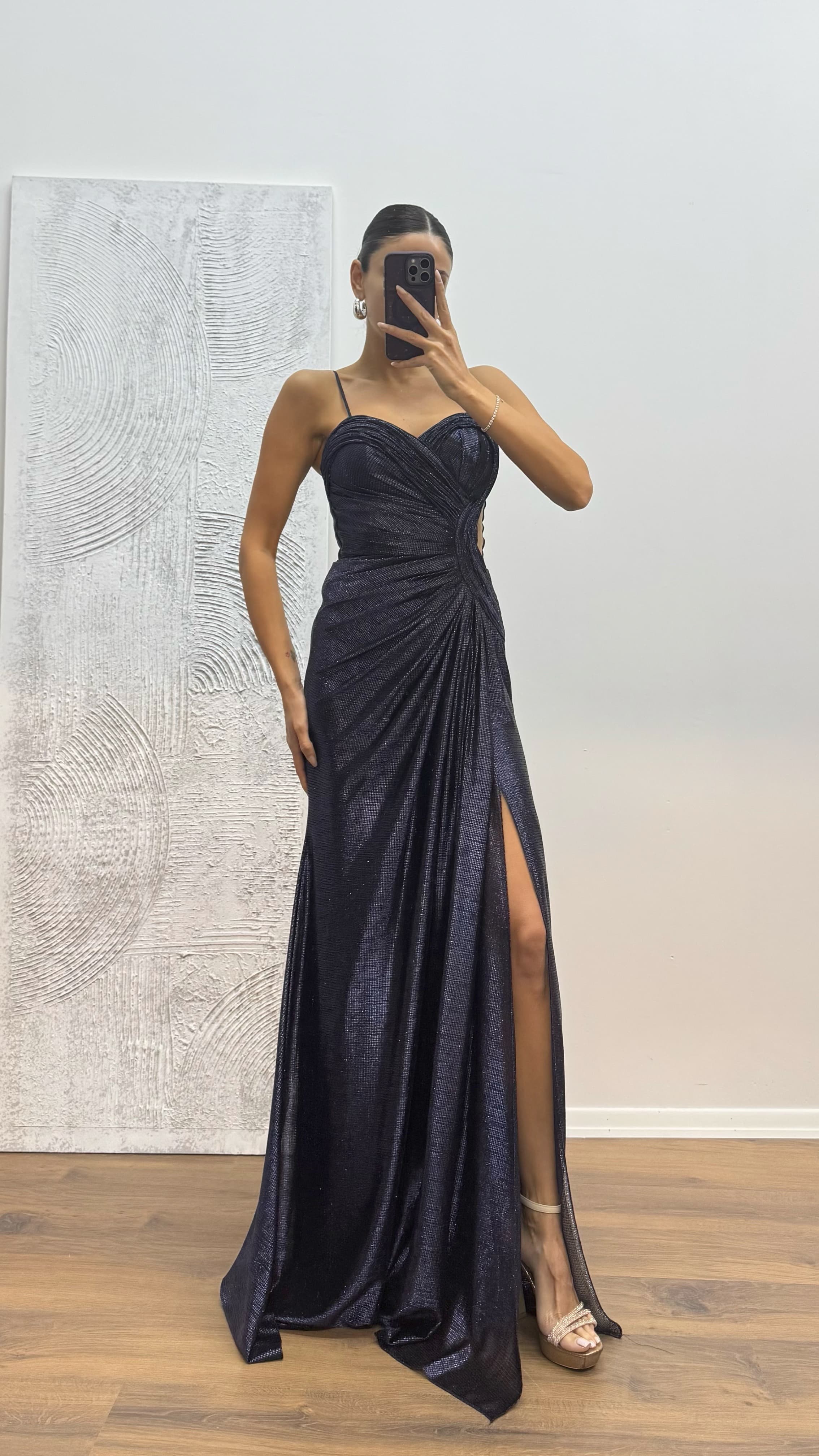 Ürün 36-42 bedene kadar uyumlu, göğüs pedli, astarlı, arka kapama fermuar, yırtmaçlı, ip askılı abiye olarak tasarlanmıştır.