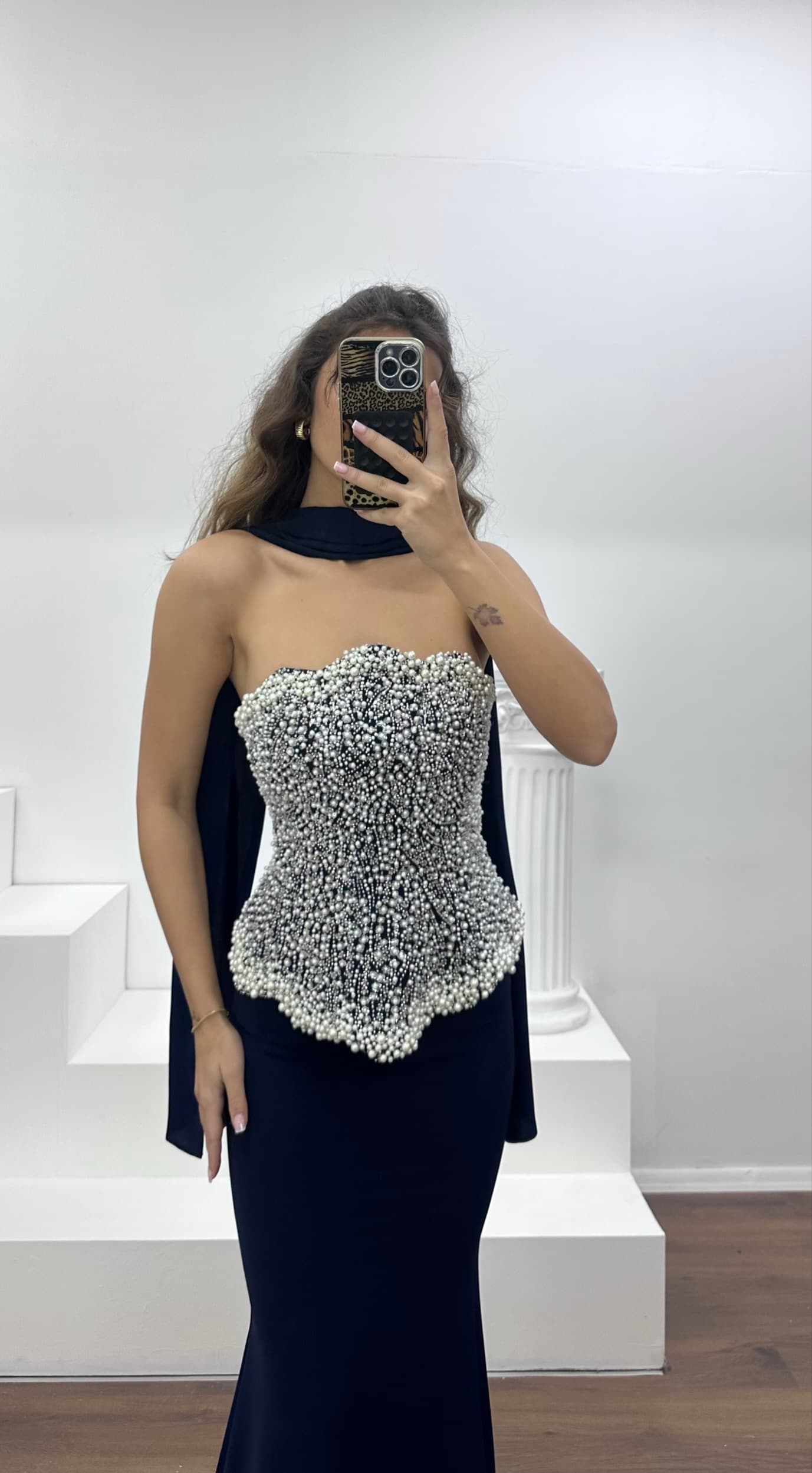 Ürün 36-42 bedene kadar uyumludur. göğüs pedli, astarlı, arka kapama fermuar, şal detay abiye olarak tasarlanmıştır.