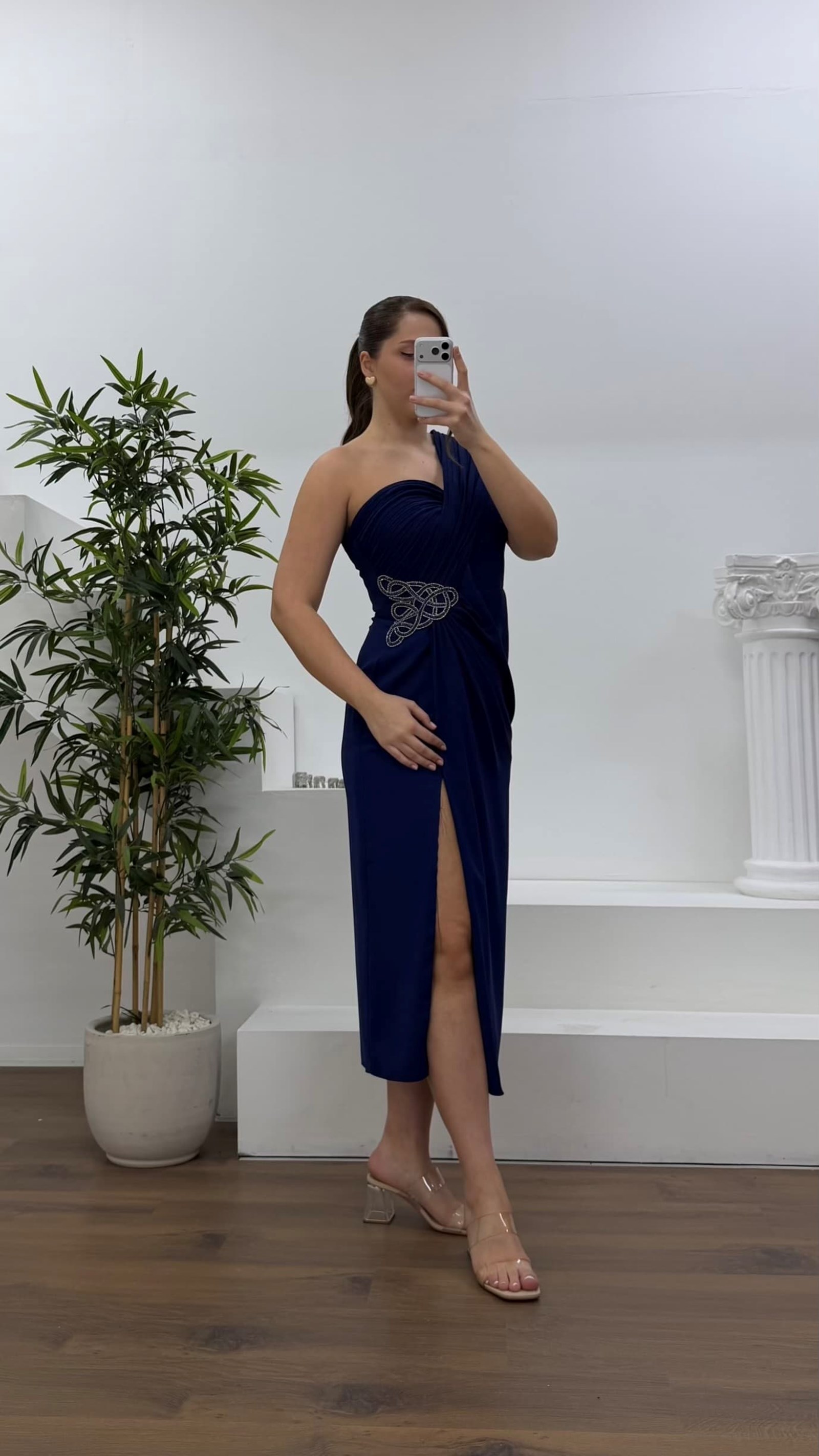 Ürün 44-48 bedene kadar uyumludur. göğüs pedli, astarlı, arka kapama fermuar, tek omuz, yırtmaçlı abiye olarak tasarlanmıştır.