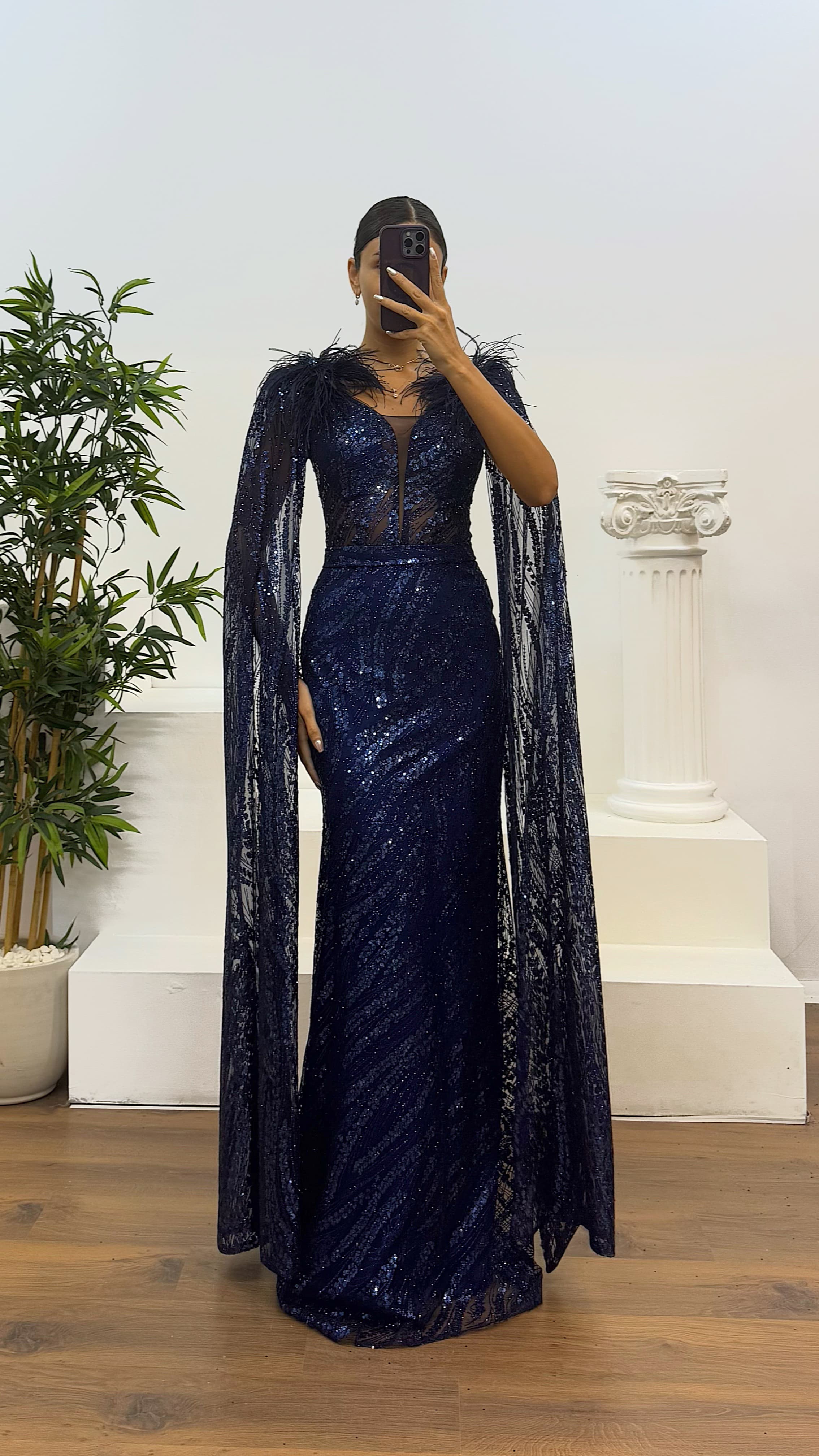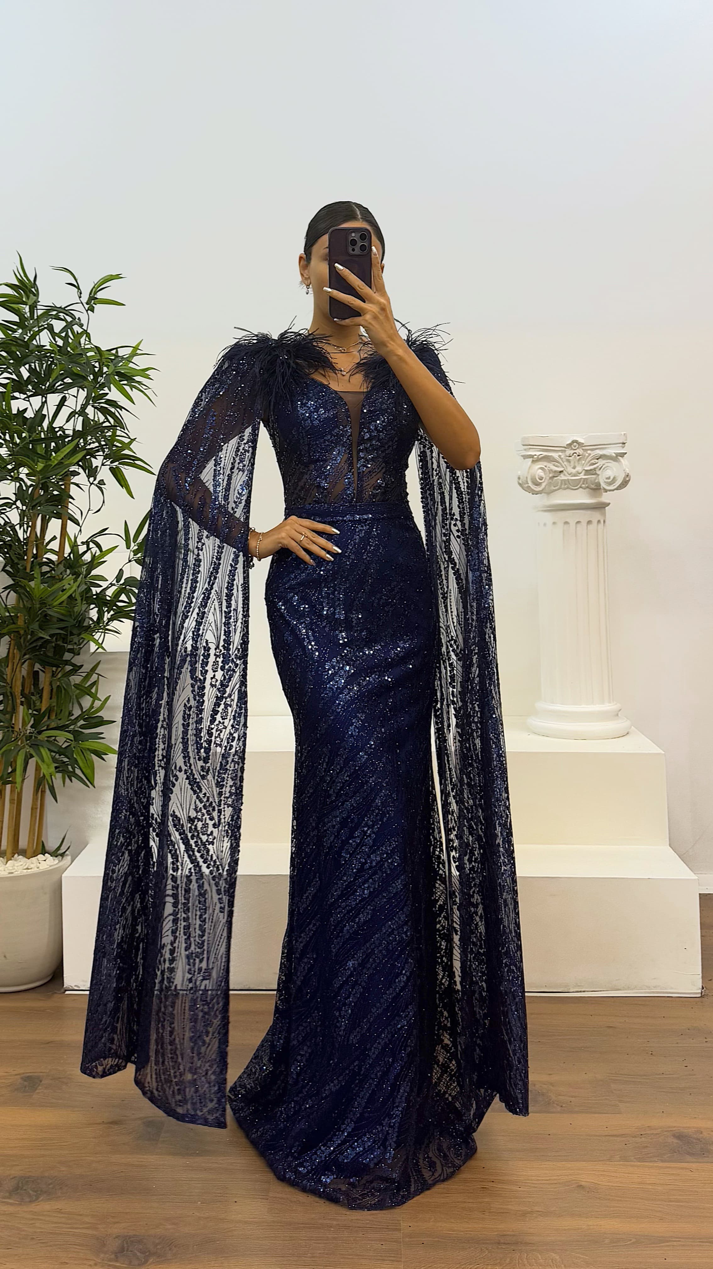 Ürün 36-42 bedene kadar uyumlu, göğüs pedli, astarlı, arka kapama fermuar, pullu abiye olarak tasarlanmıştır.