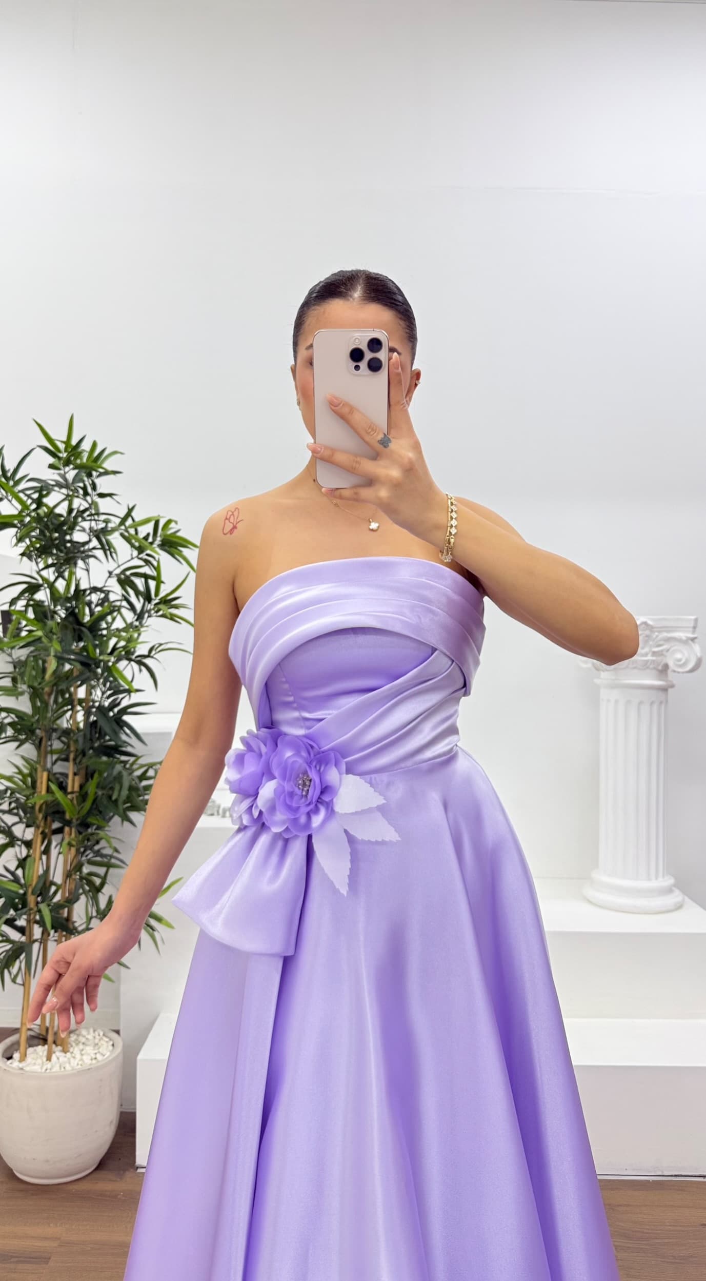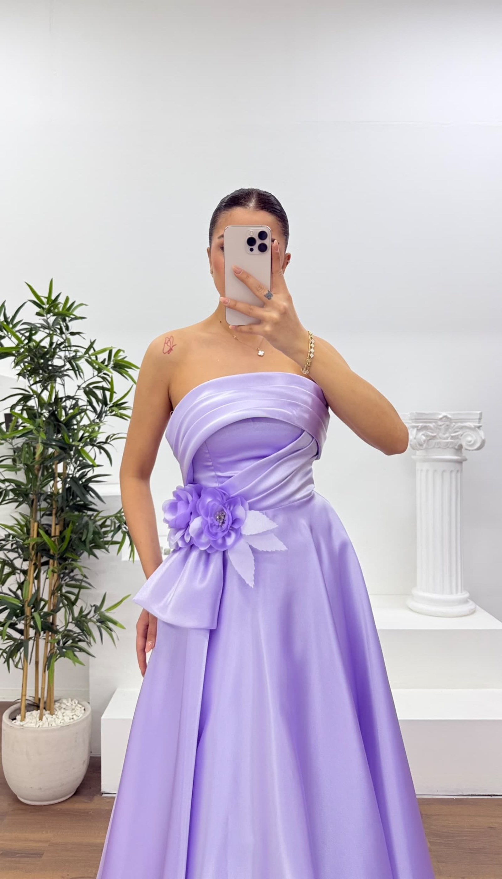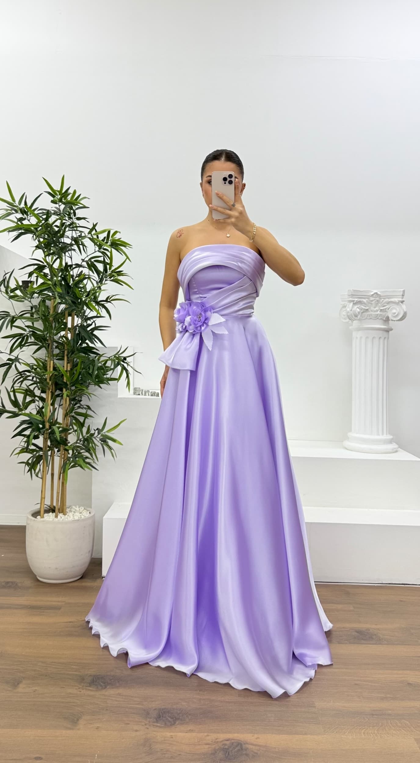 Ürün 36-42 bedene kadar uyumldur. göğüs pedli, astarlı, arka kapama fermuar, çiçek detay, drapeli, straplez abiye olarak tasarlanmıştır.