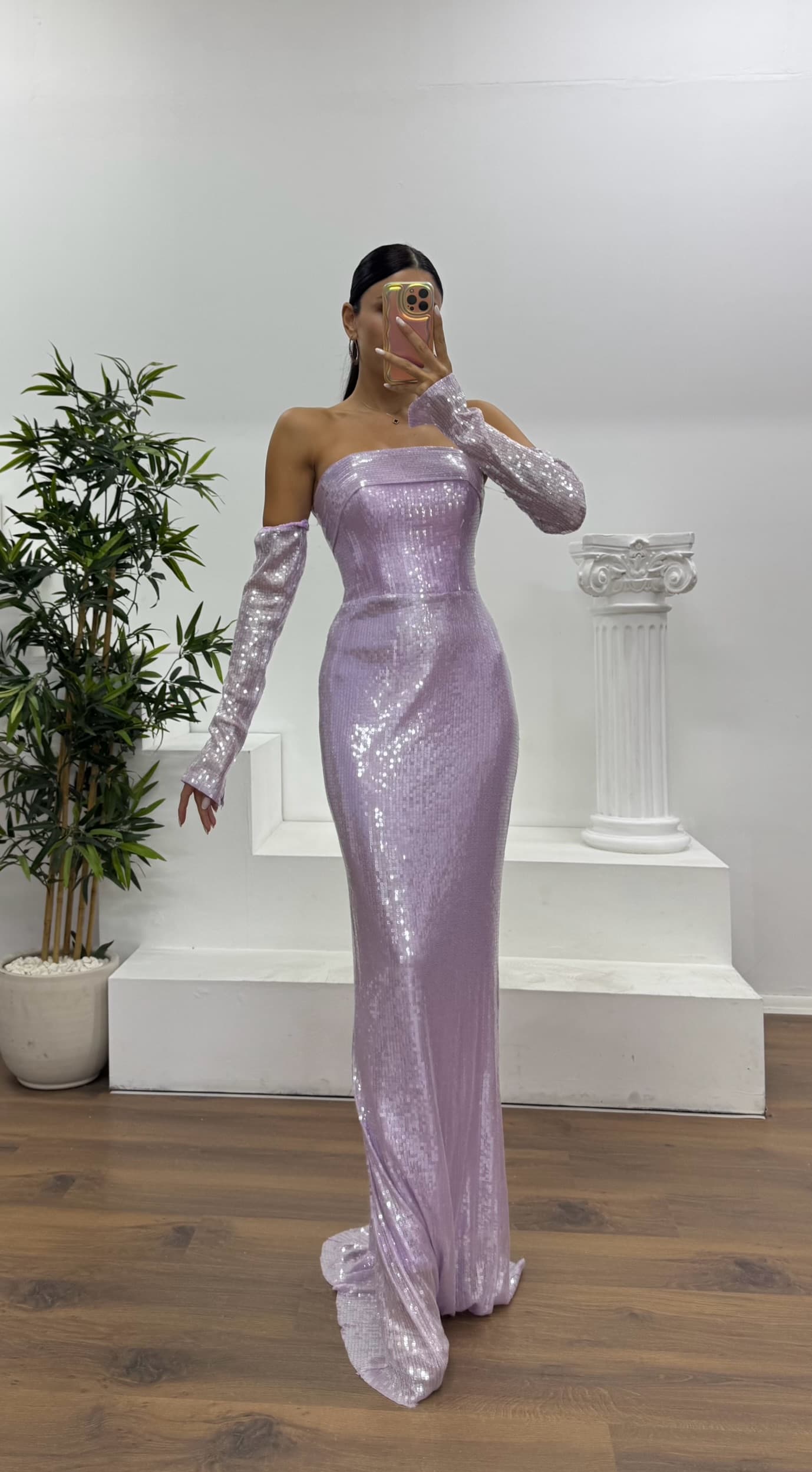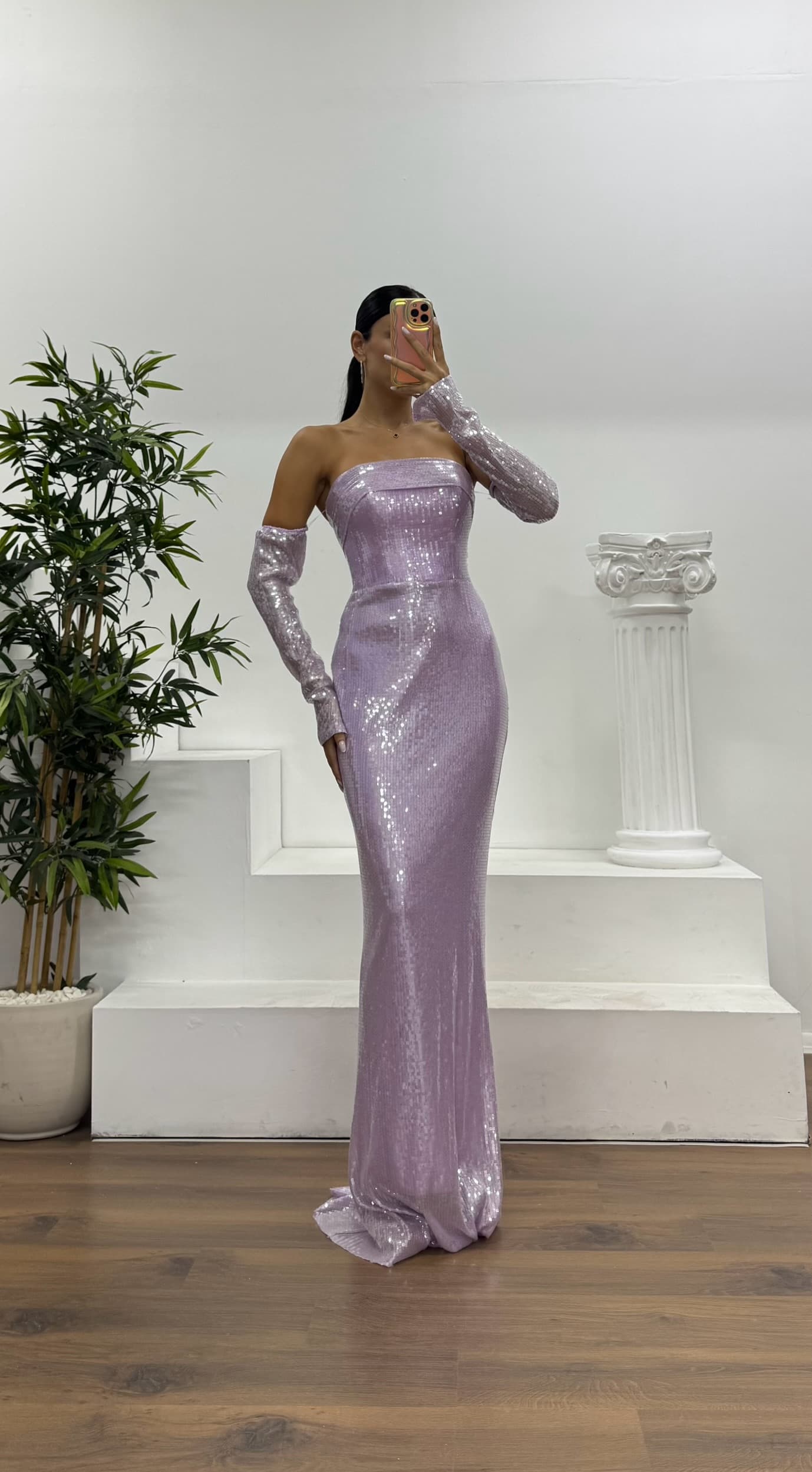 Ürün 36-44 bedene kadar uyumlu, göğüs pedli, astarlı, arka kapama fermuar, eldivenli abiye olarak tasarlanmıştır.