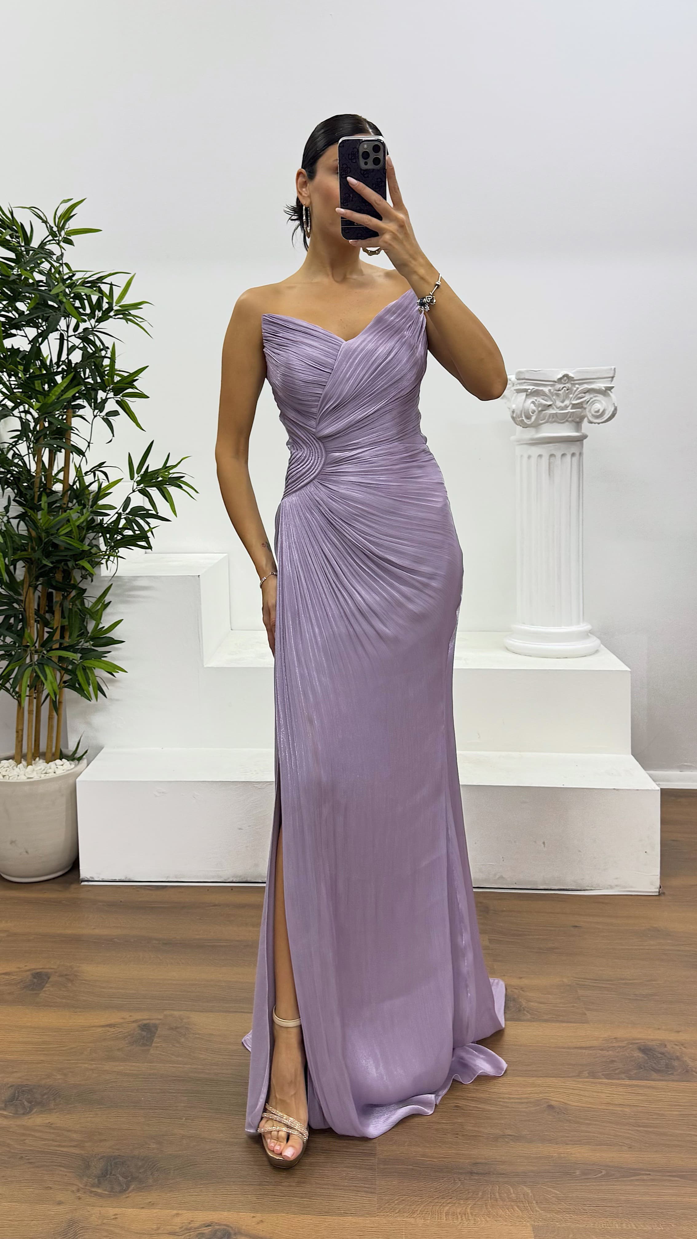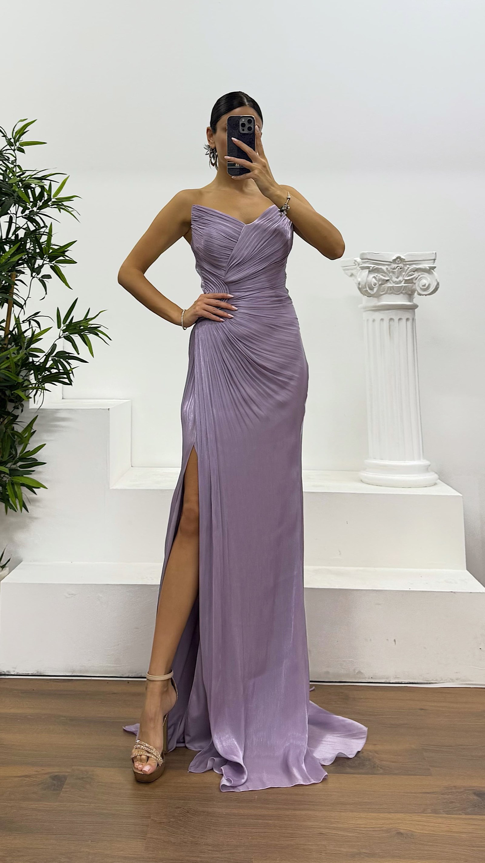 Ürün 36-42 bedene kadar uyumlu, göğüs pedli, astarlı, sırt capraz ip ve fermuar kapamalı, yırtmaçlı abiye olarak tasarlanmıştır.