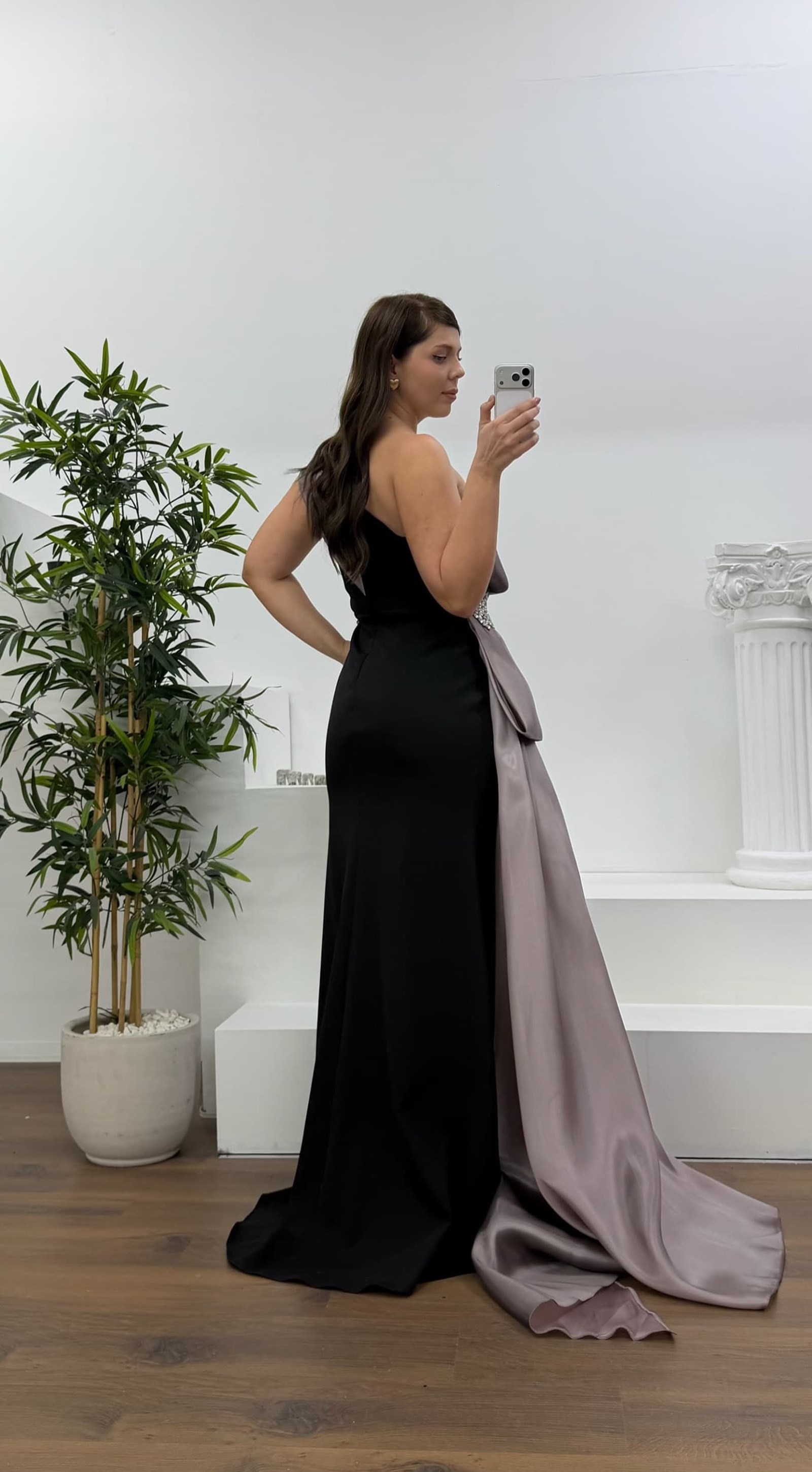 • Kemik Tek Omuz Taş Detay Büyük Beden Abiye Elbise