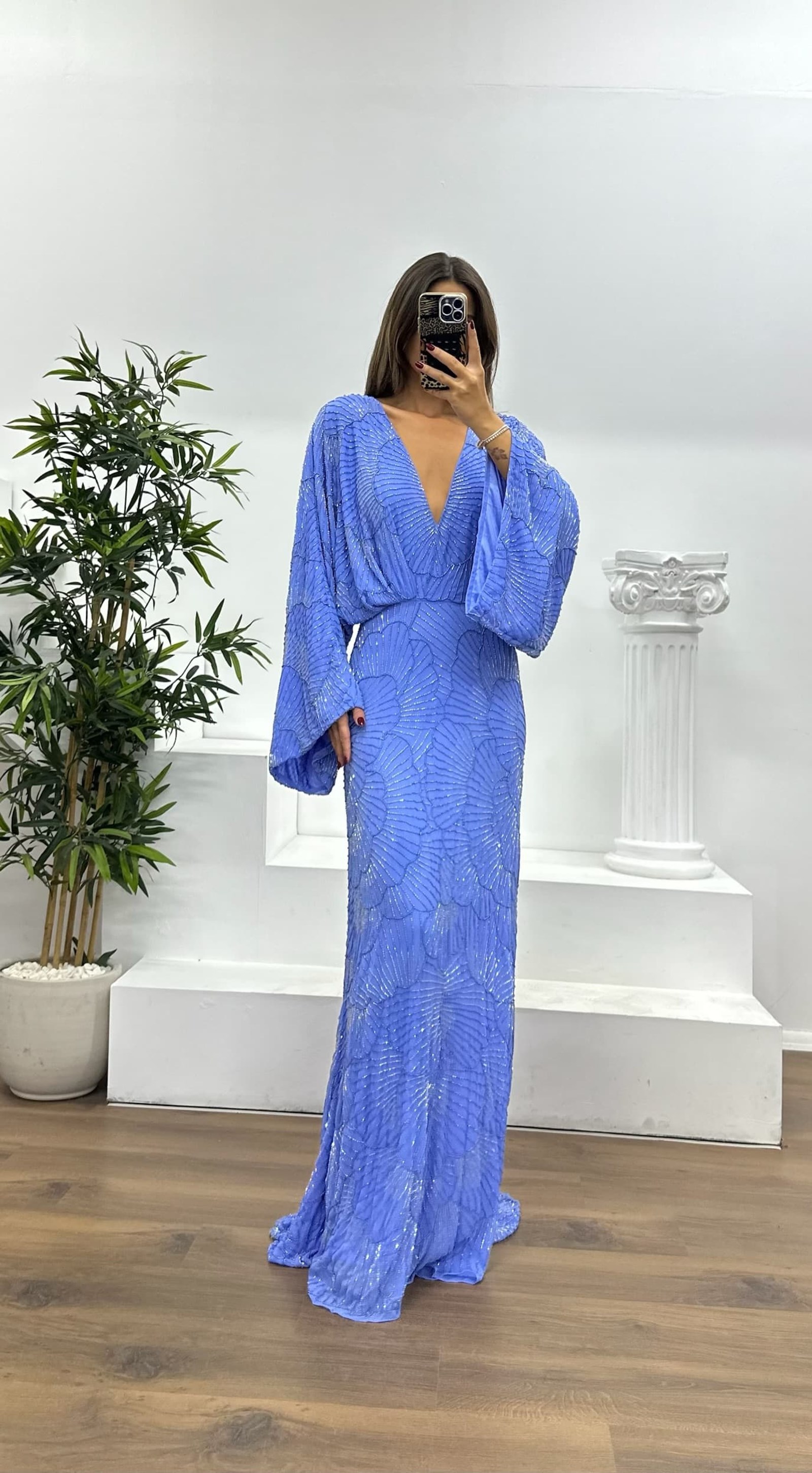 Yarasa kol özel el işlemesi abiye elbise
