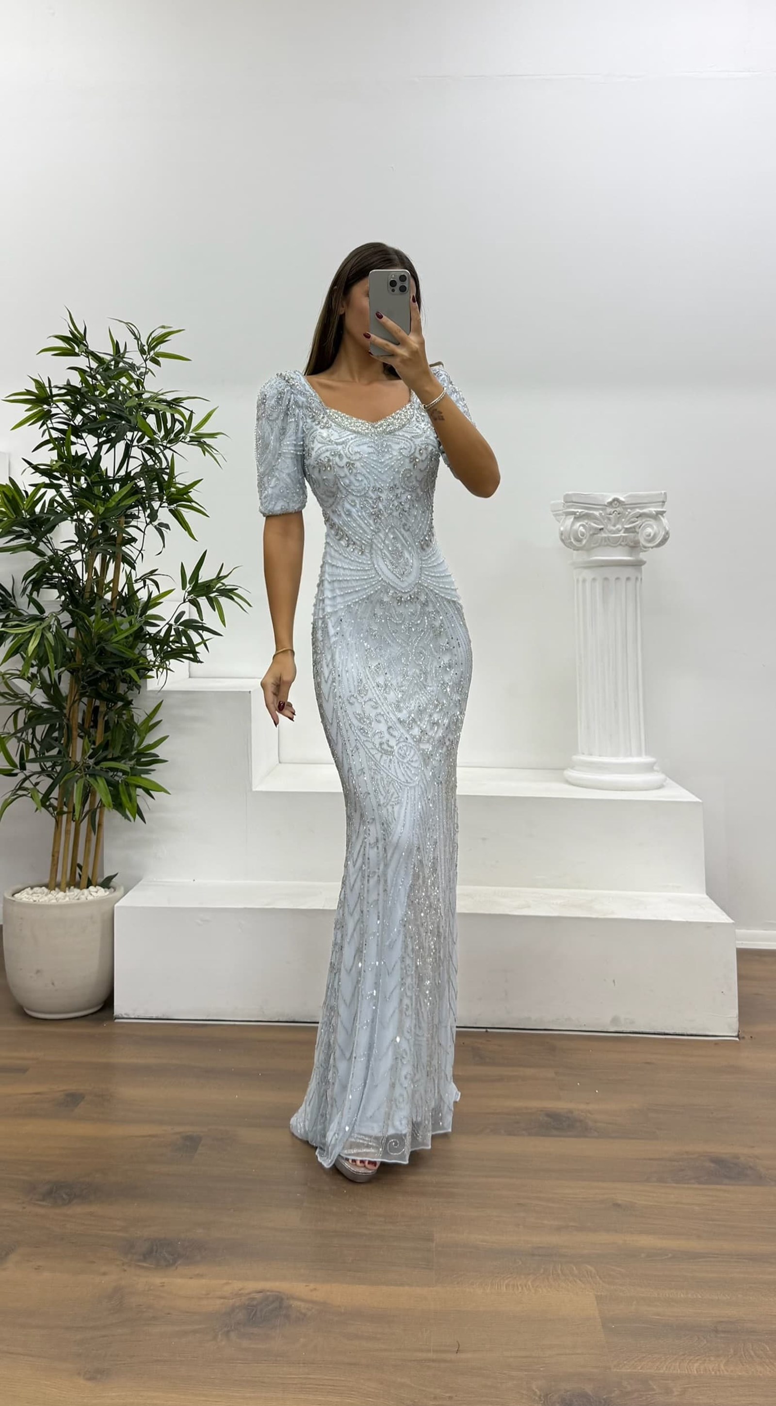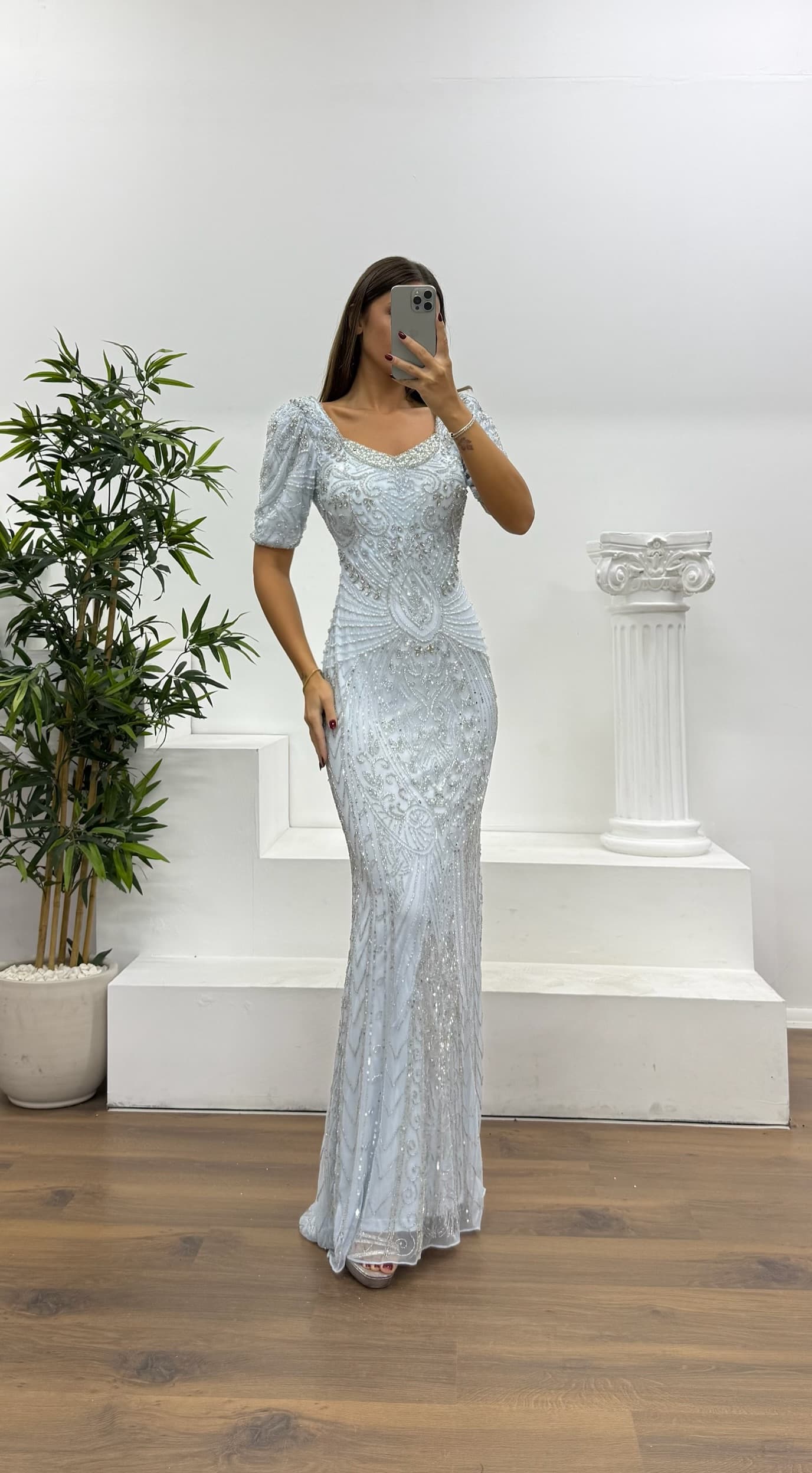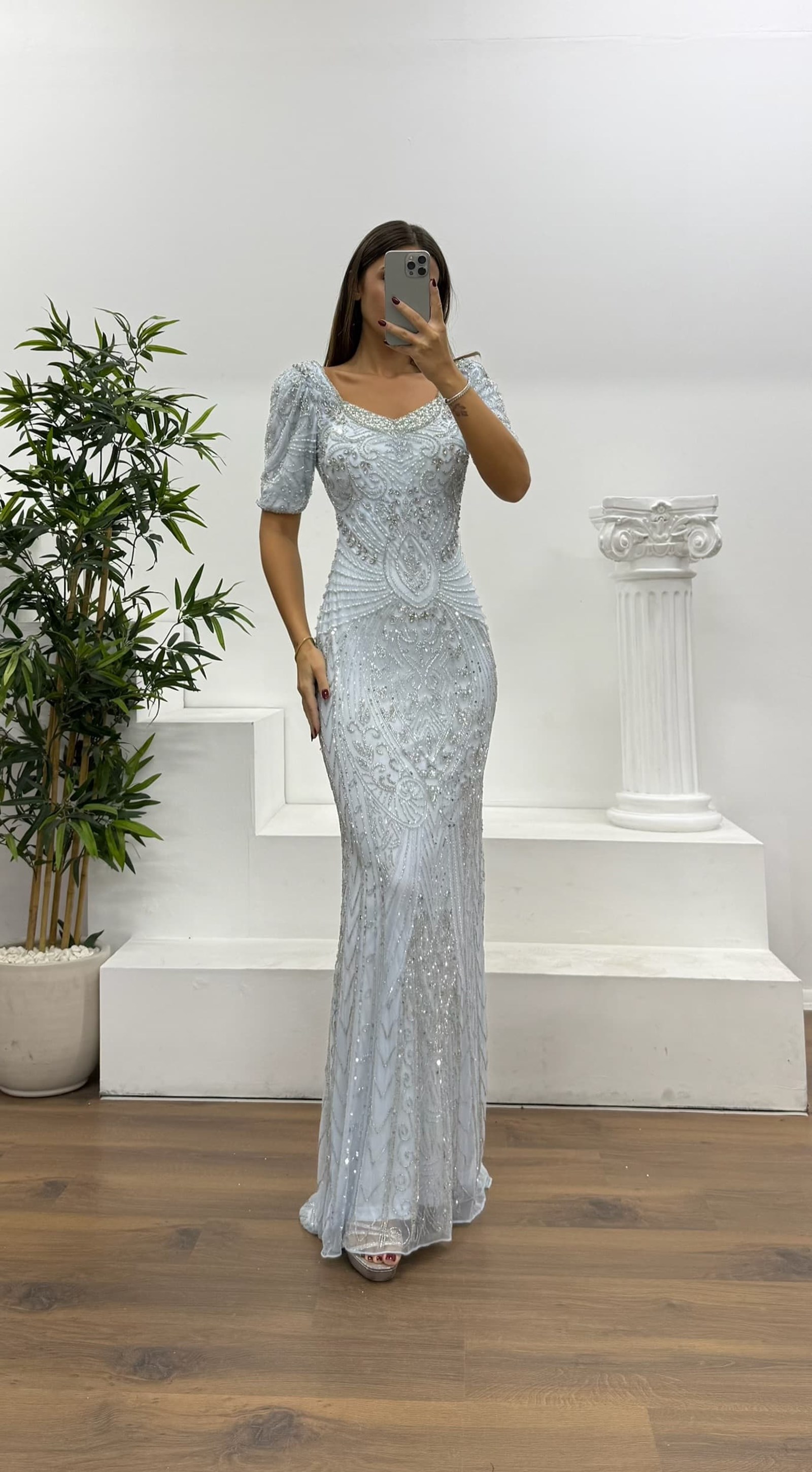 Ürün 36-46 bedene kadar uyumlu, göğüs pedli, astarlı, arka kapama fermuar, işlemeli abiye olarak tasarlanmıştır.