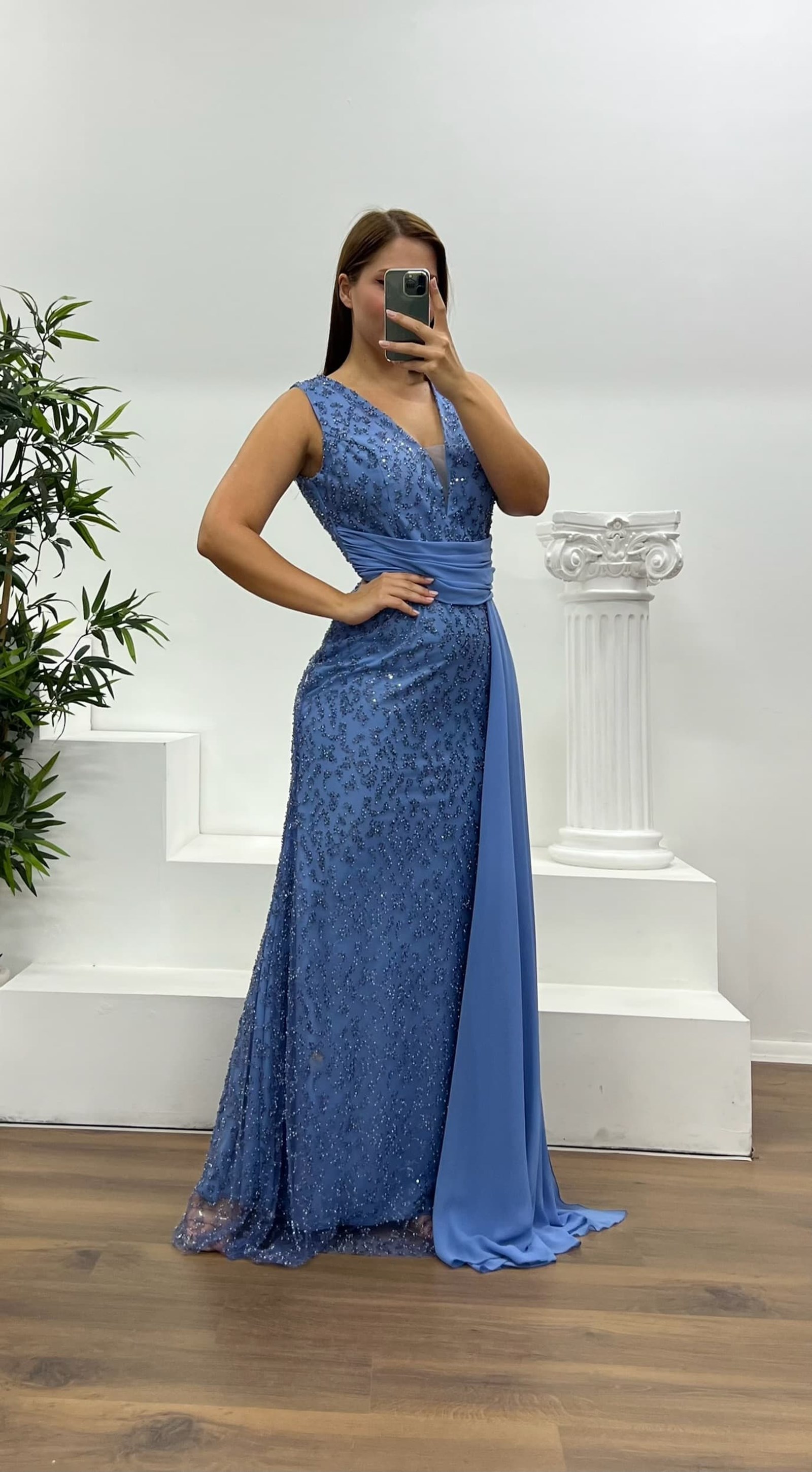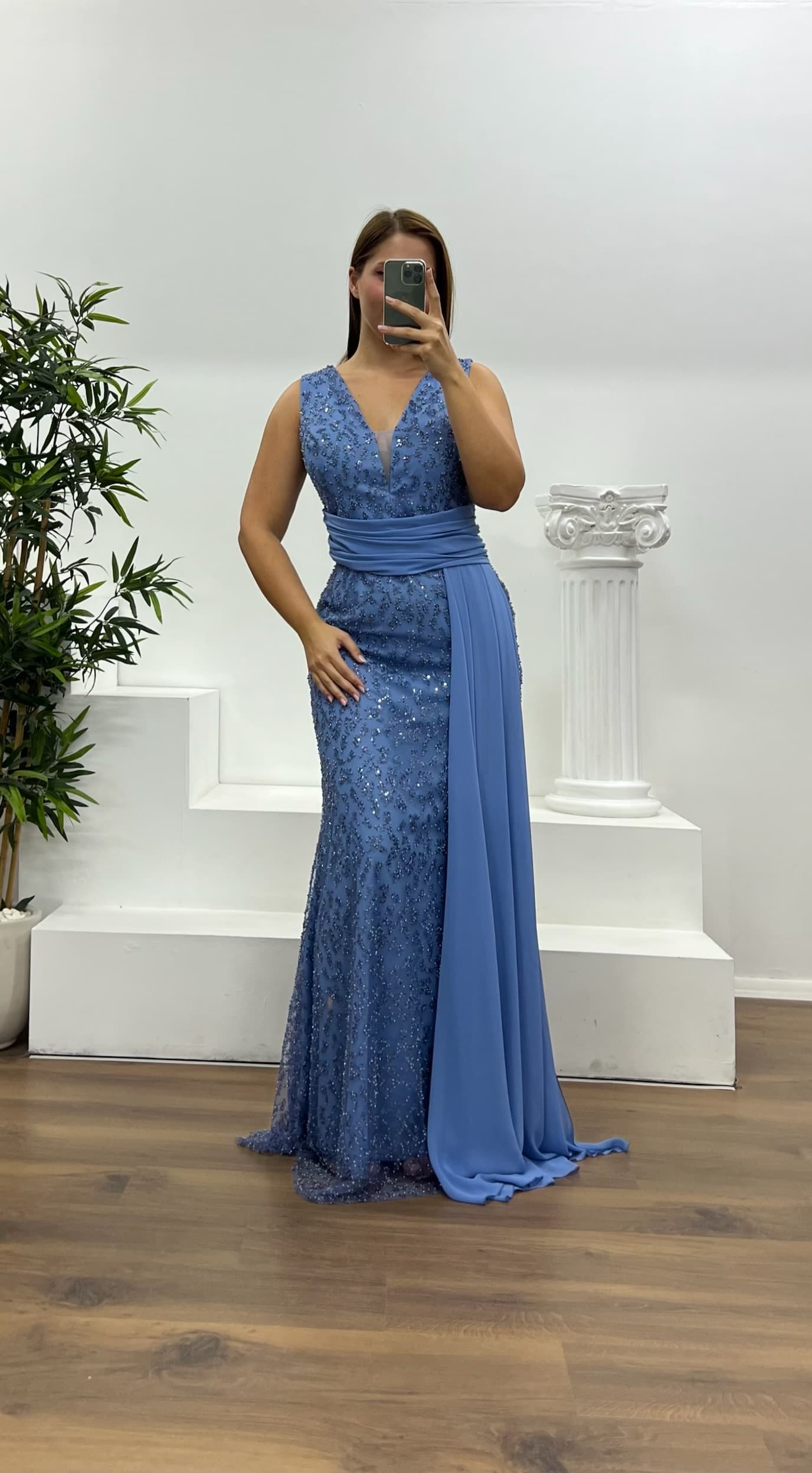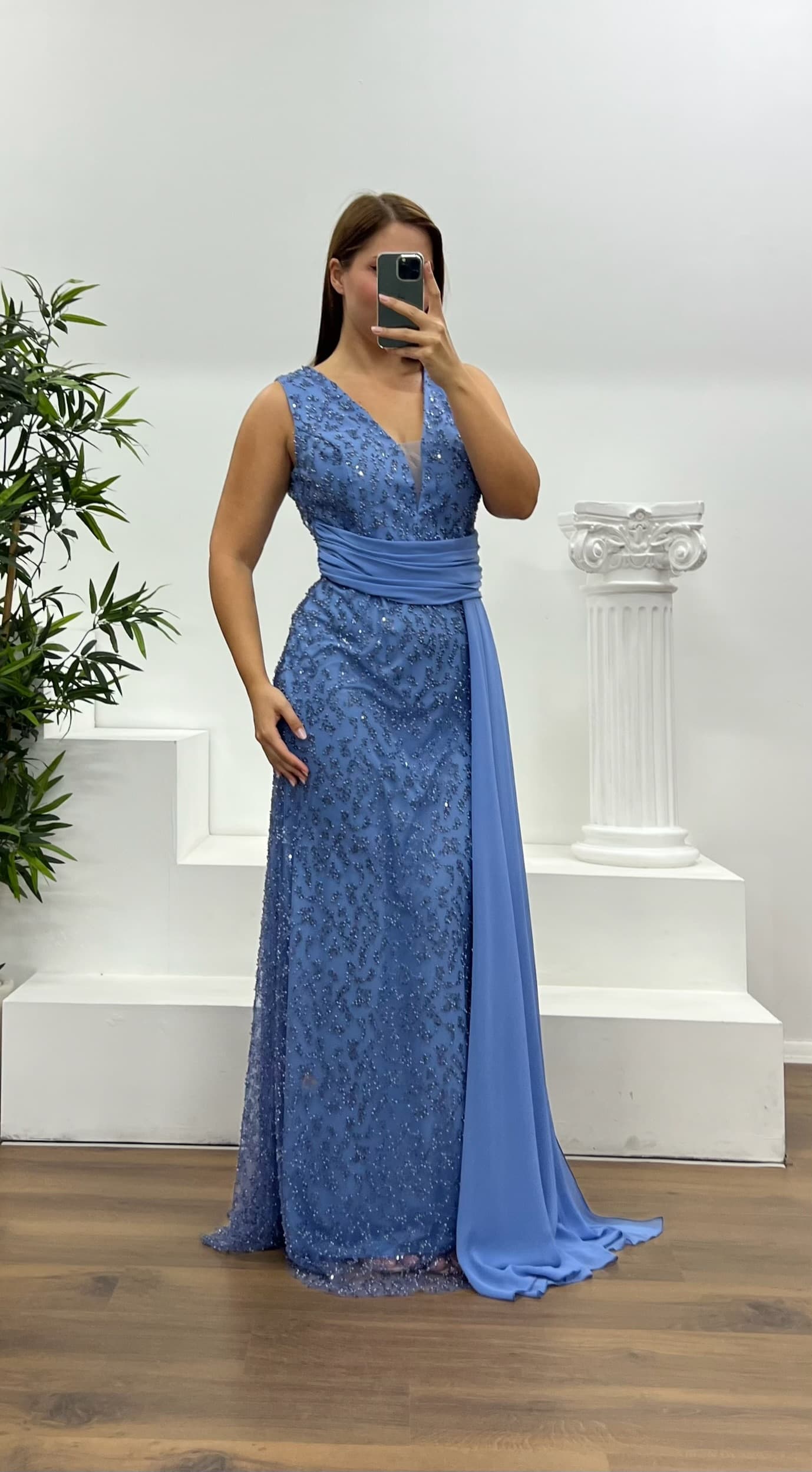 Ürün 48-52 bedene kadar uyumlu, göğüs pedli, astarlı, arka kapama fermuar, bel detay abiye olarak tasarlanmıştır.