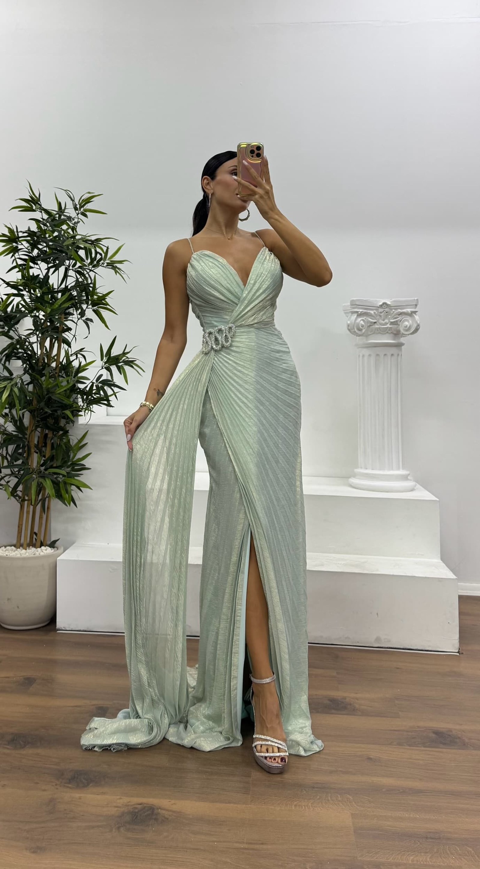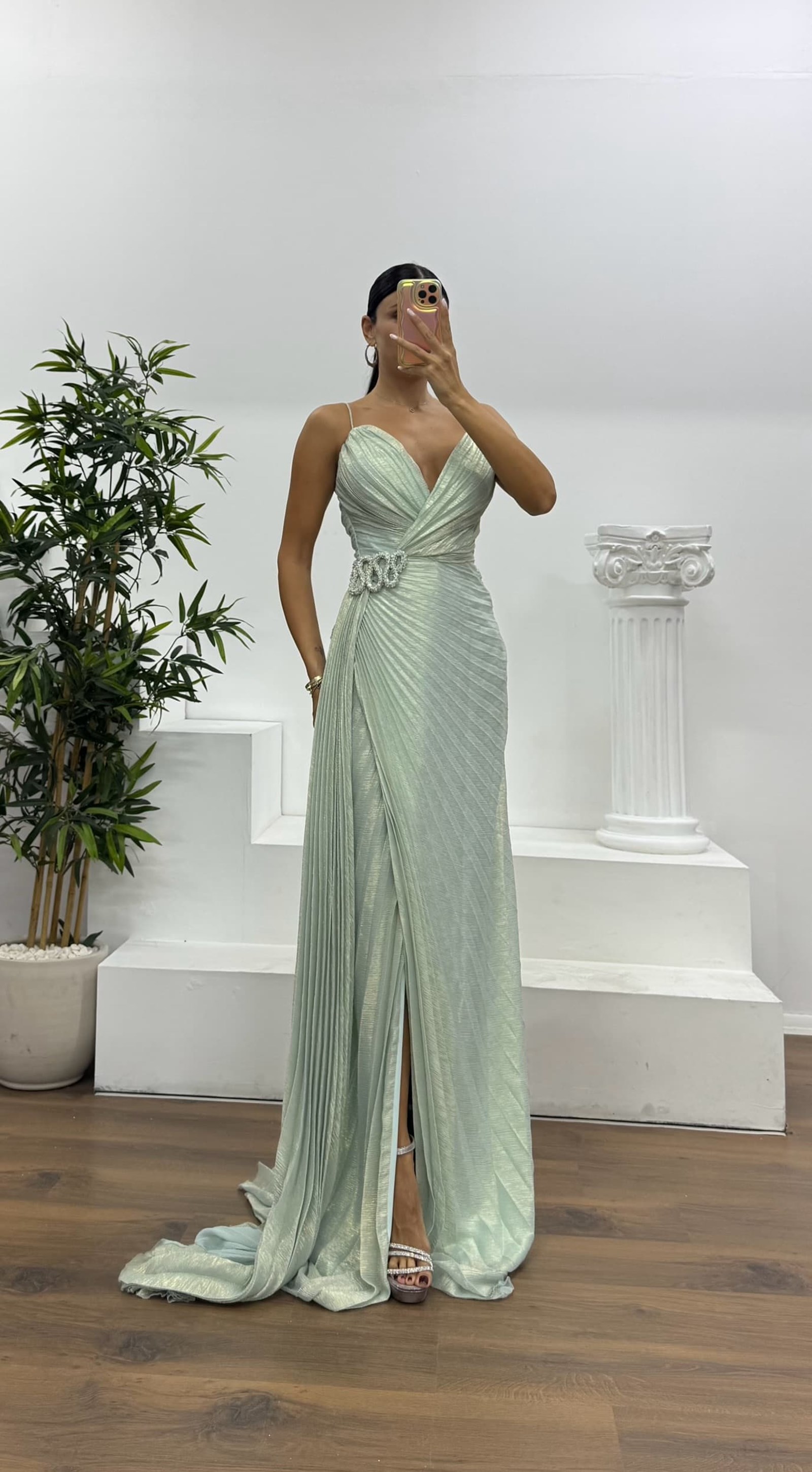 İp askılı bel detay abiye elbise