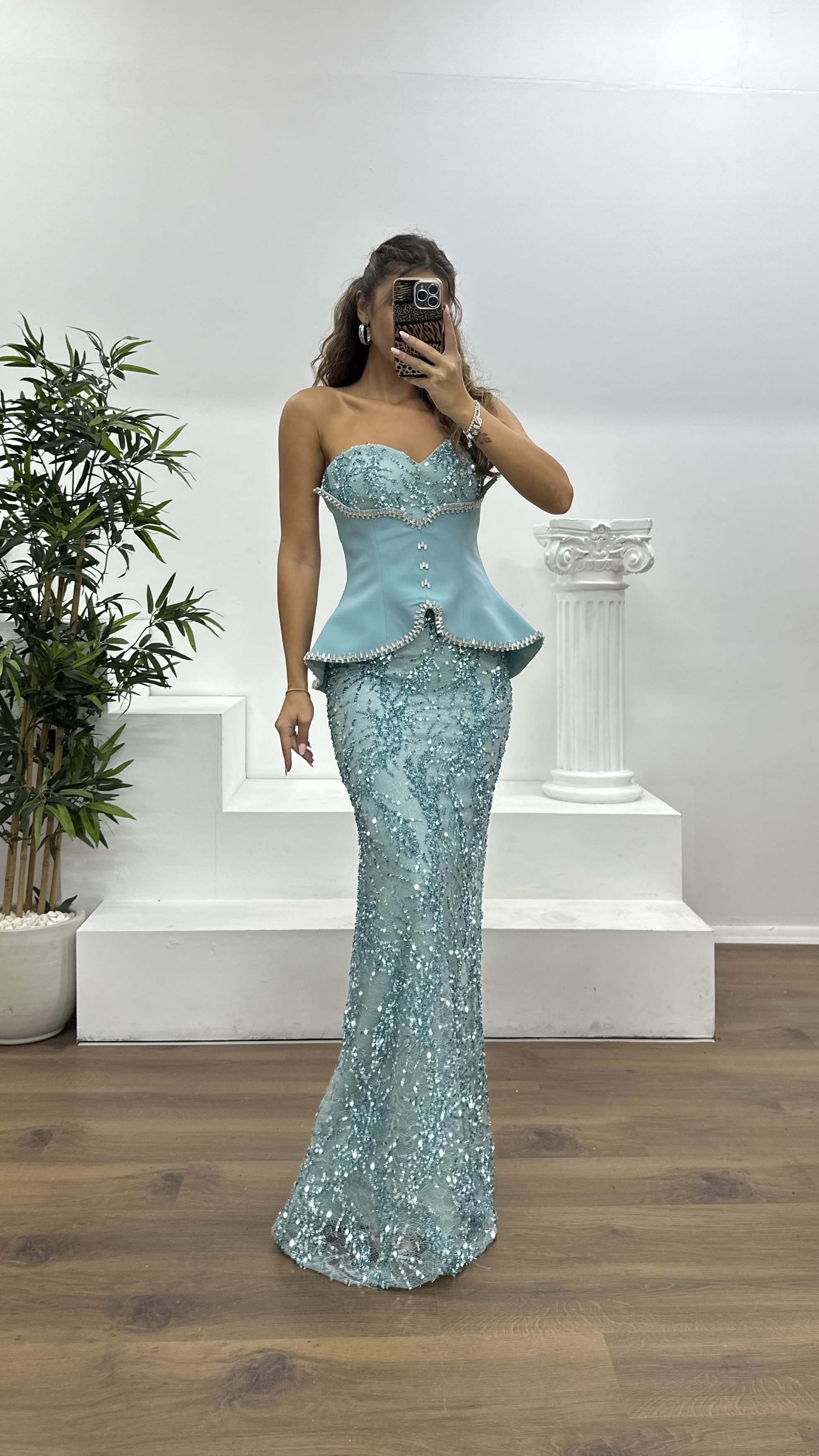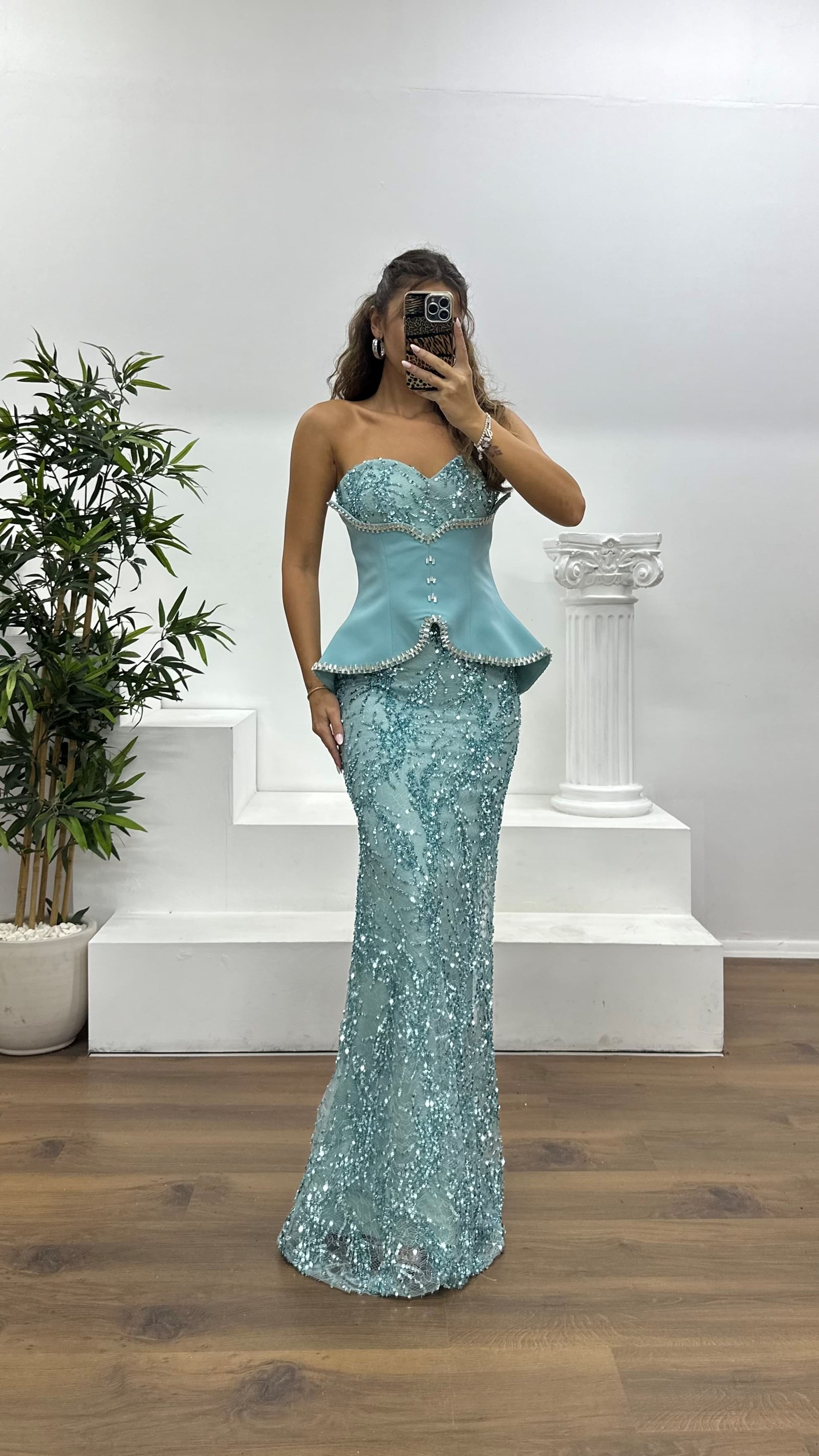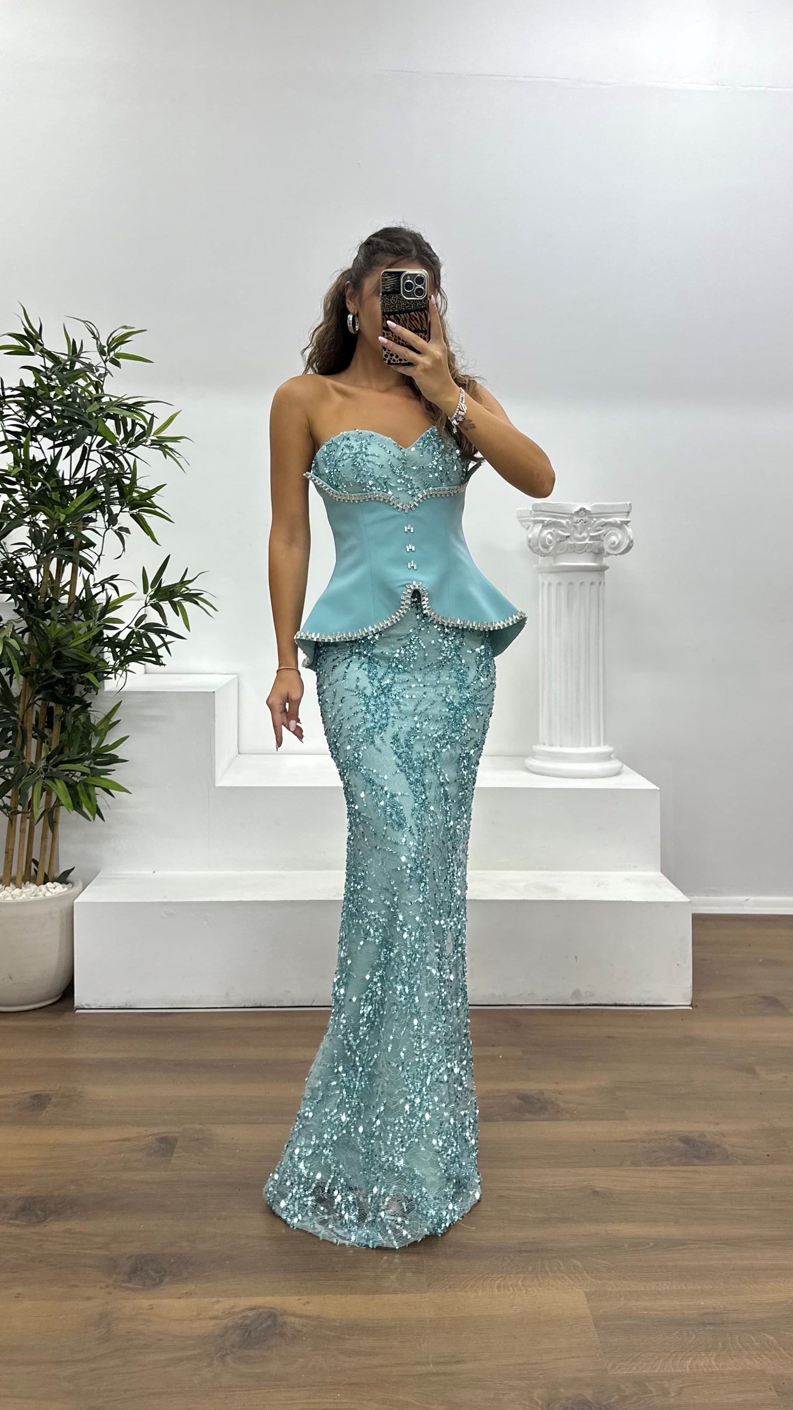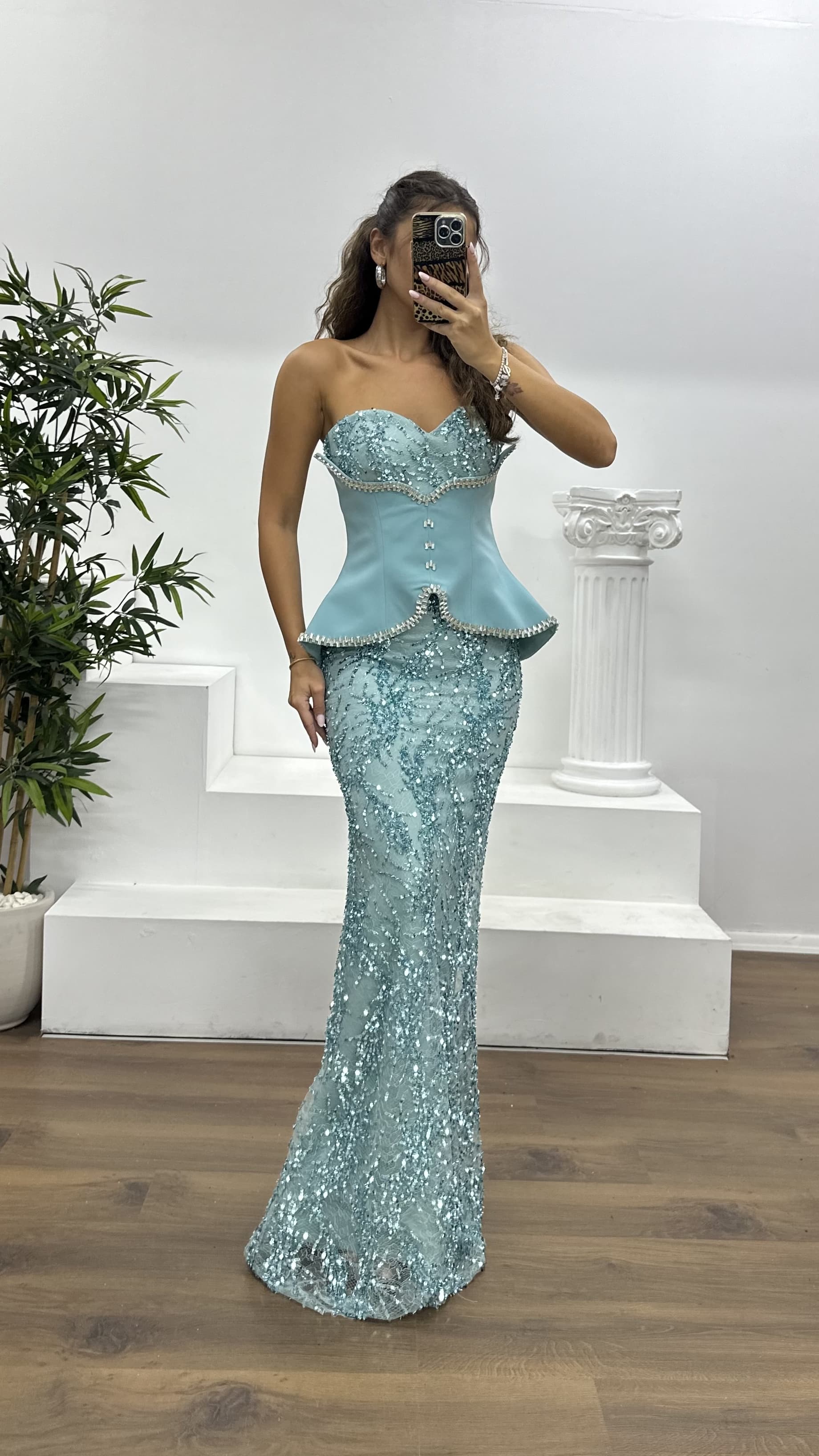 Korse detay işlemeli abiye elbise