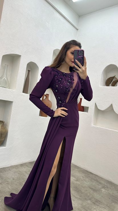 • Mint Yeşili İşlemeli  Abiye Elbise