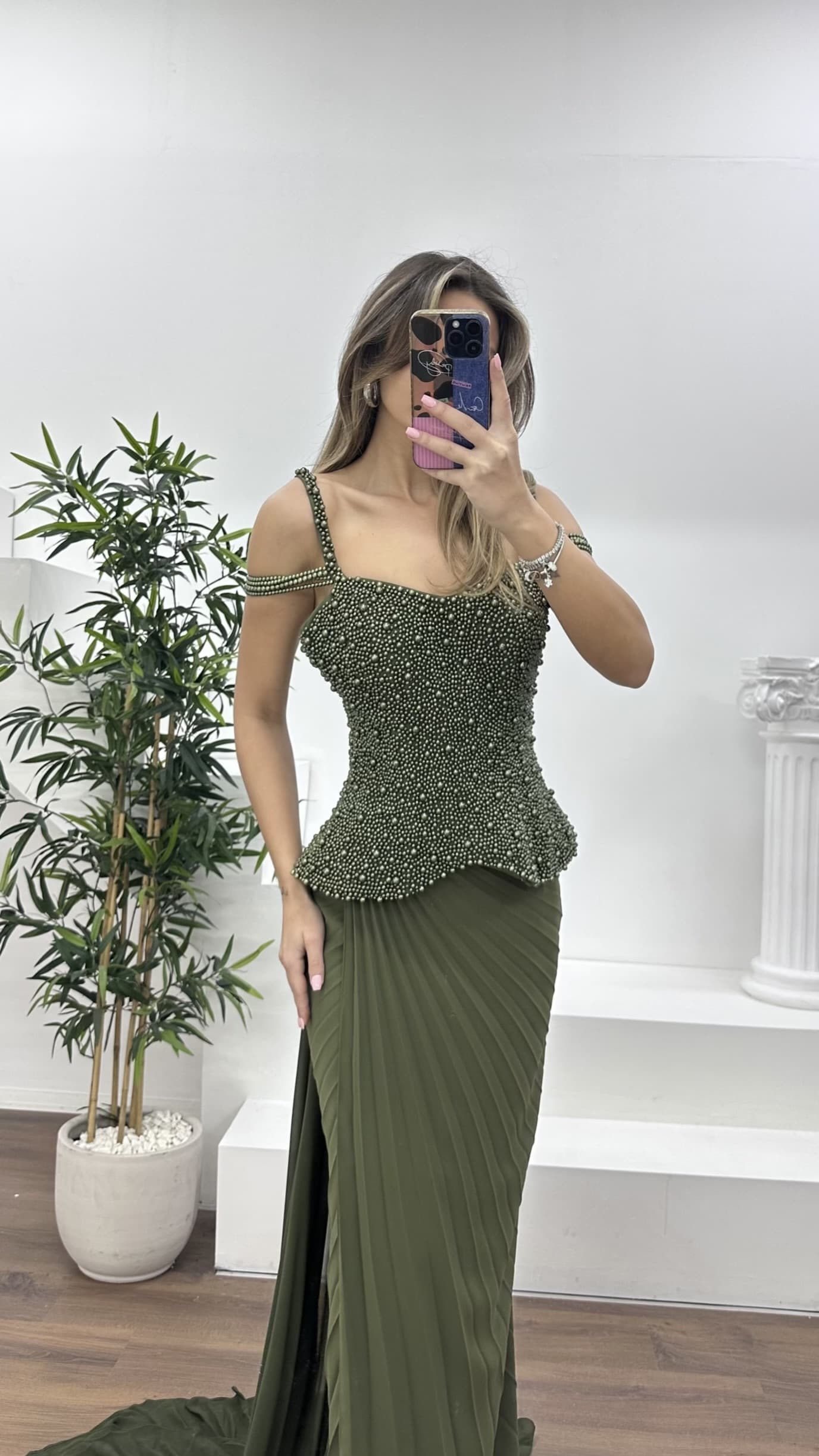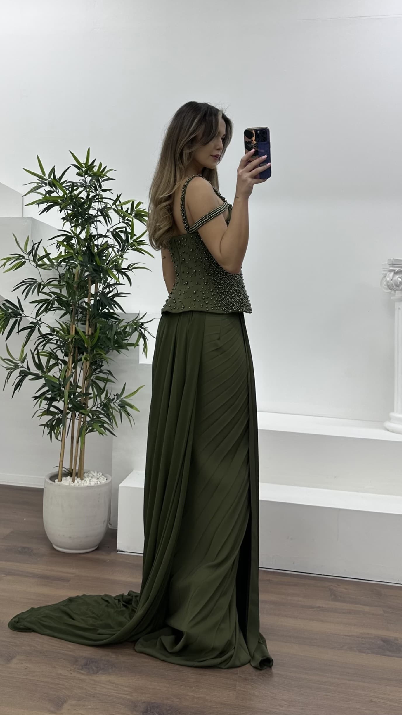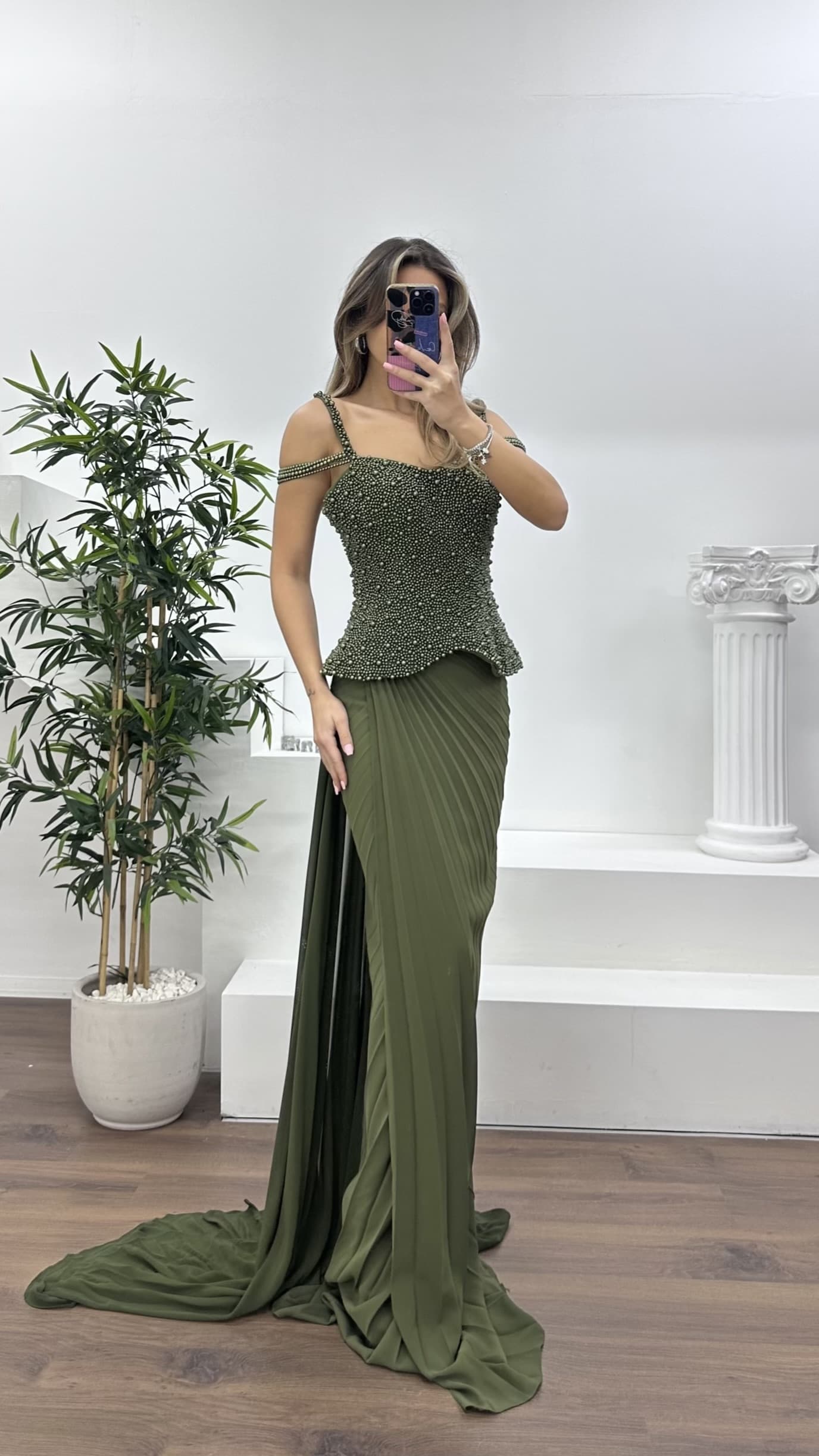 İnci detaylı zarif kesim abiye elbise