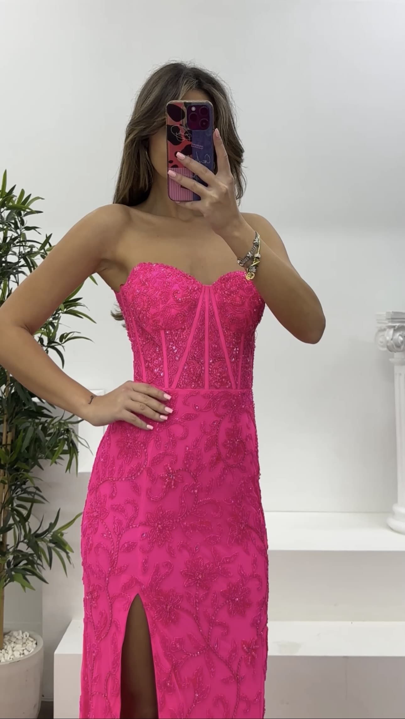 Korse detaylı kalın askılı abiye elbise
